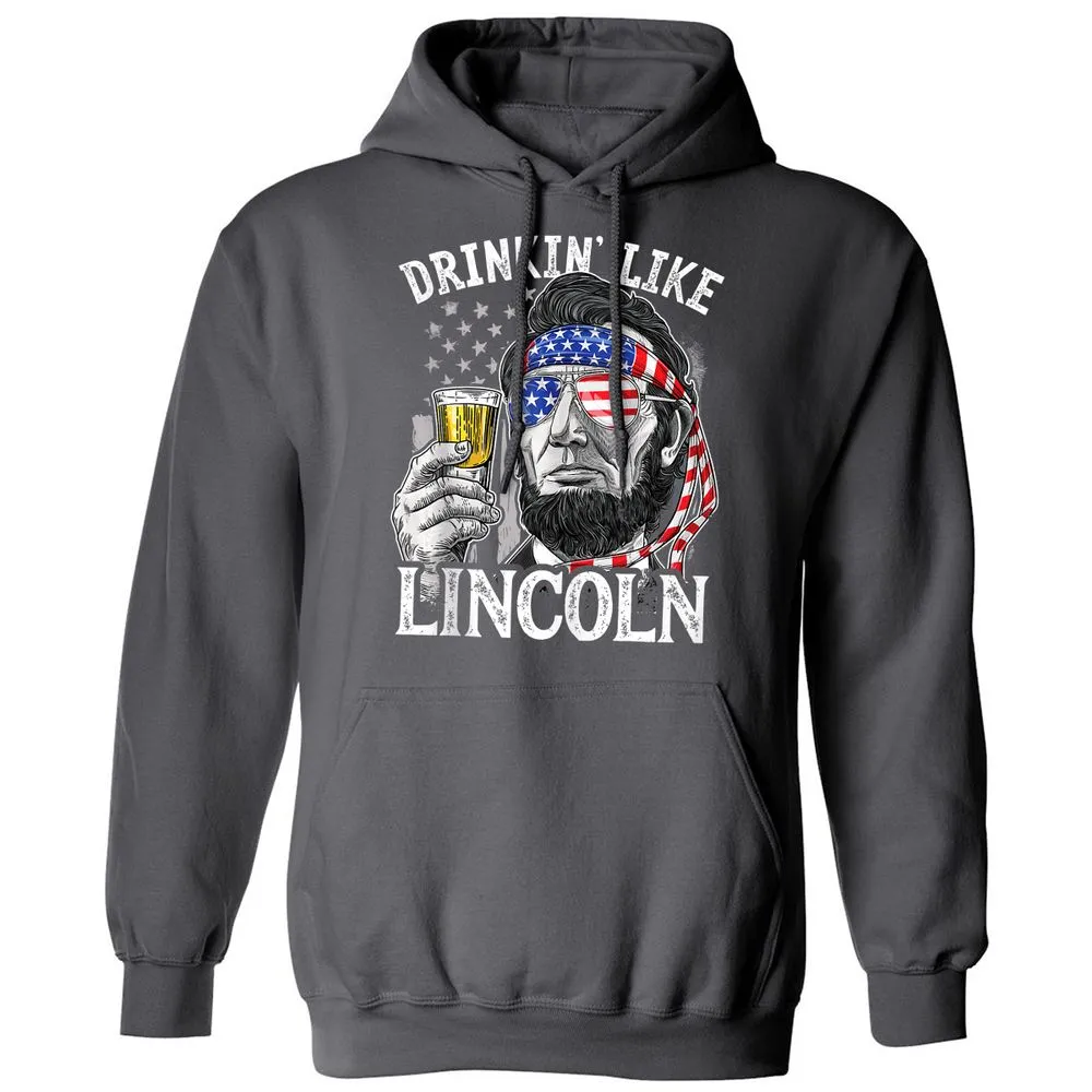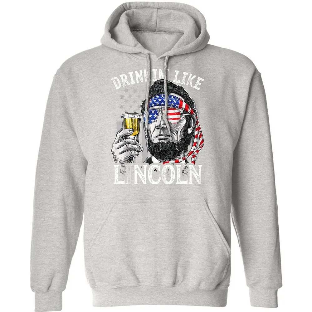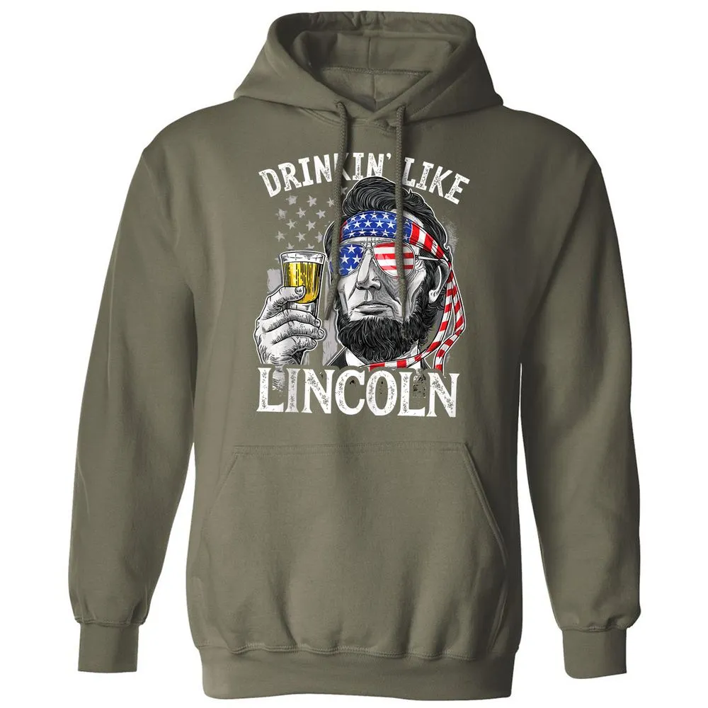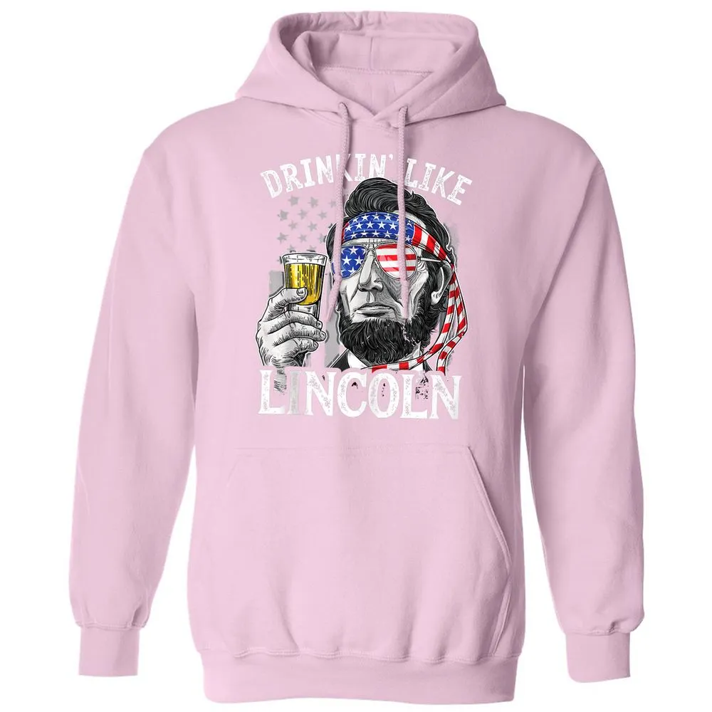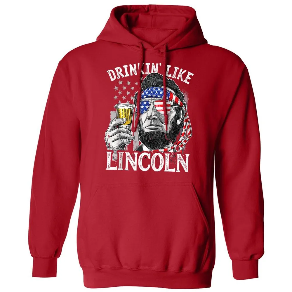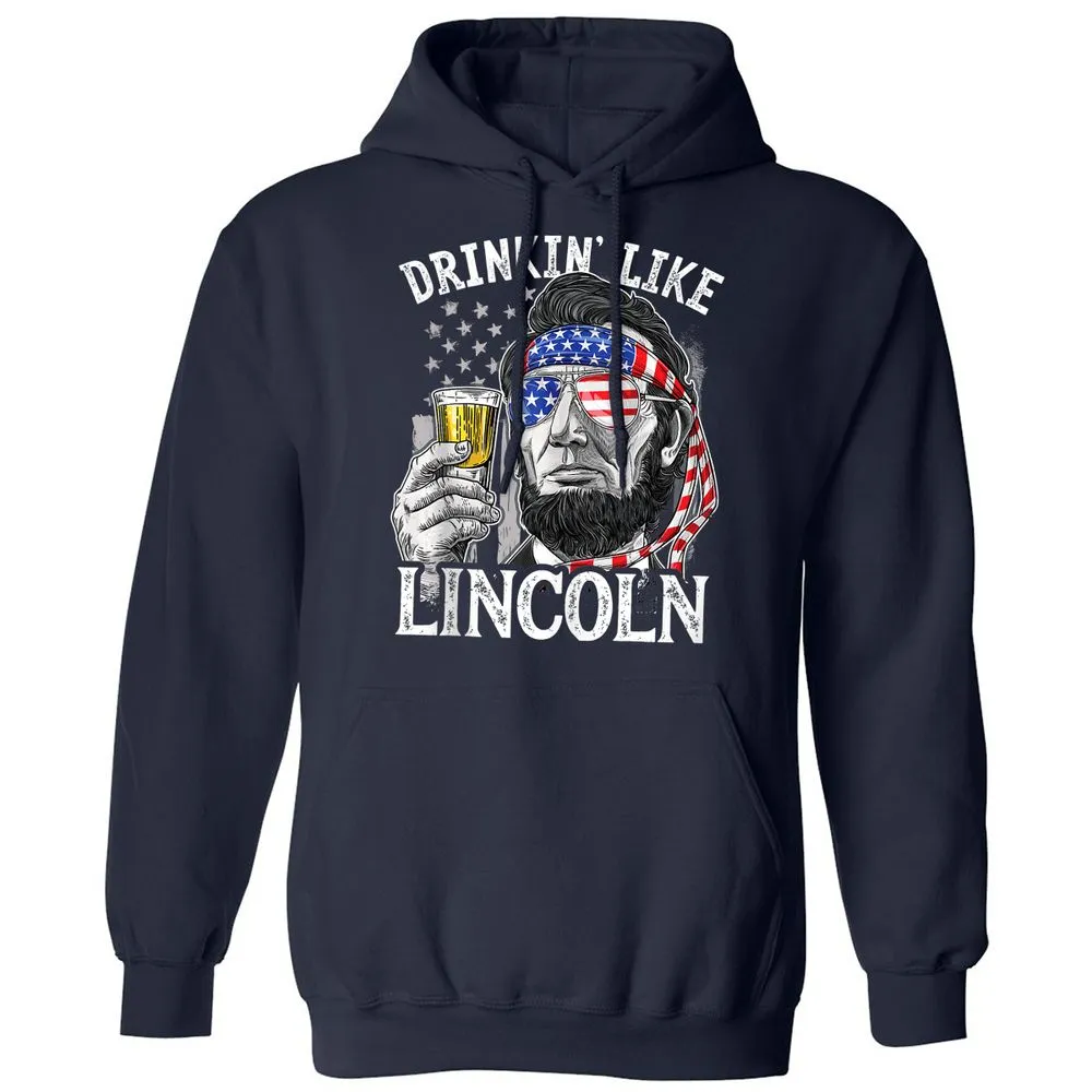 Drinking Like Lincoln 4th of July Men Abraham Merica Flag Classic Unisex Hoodie