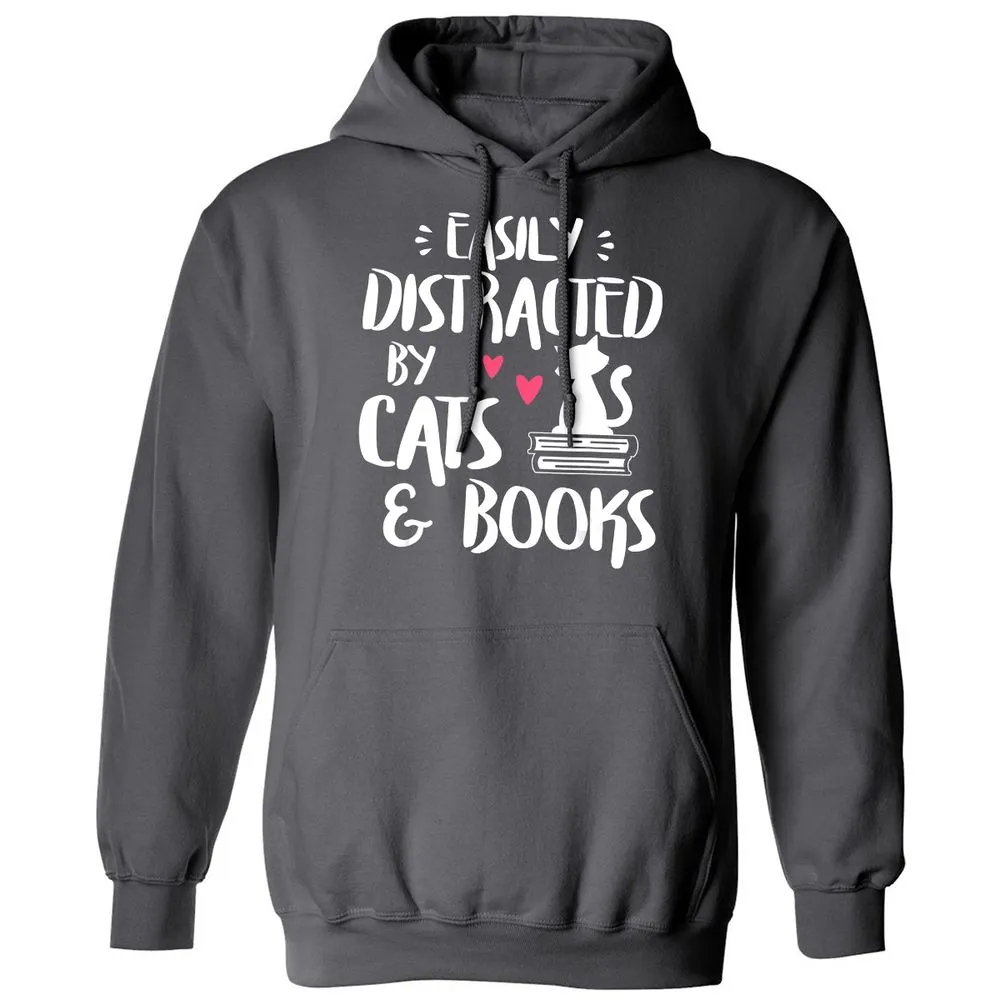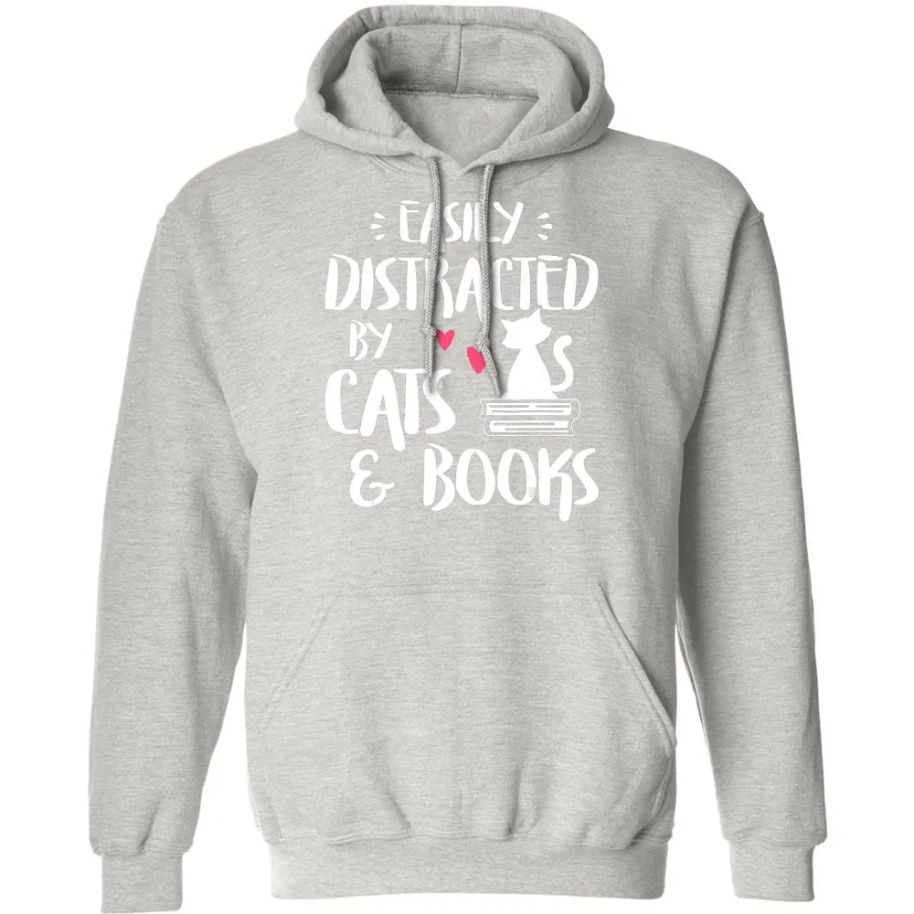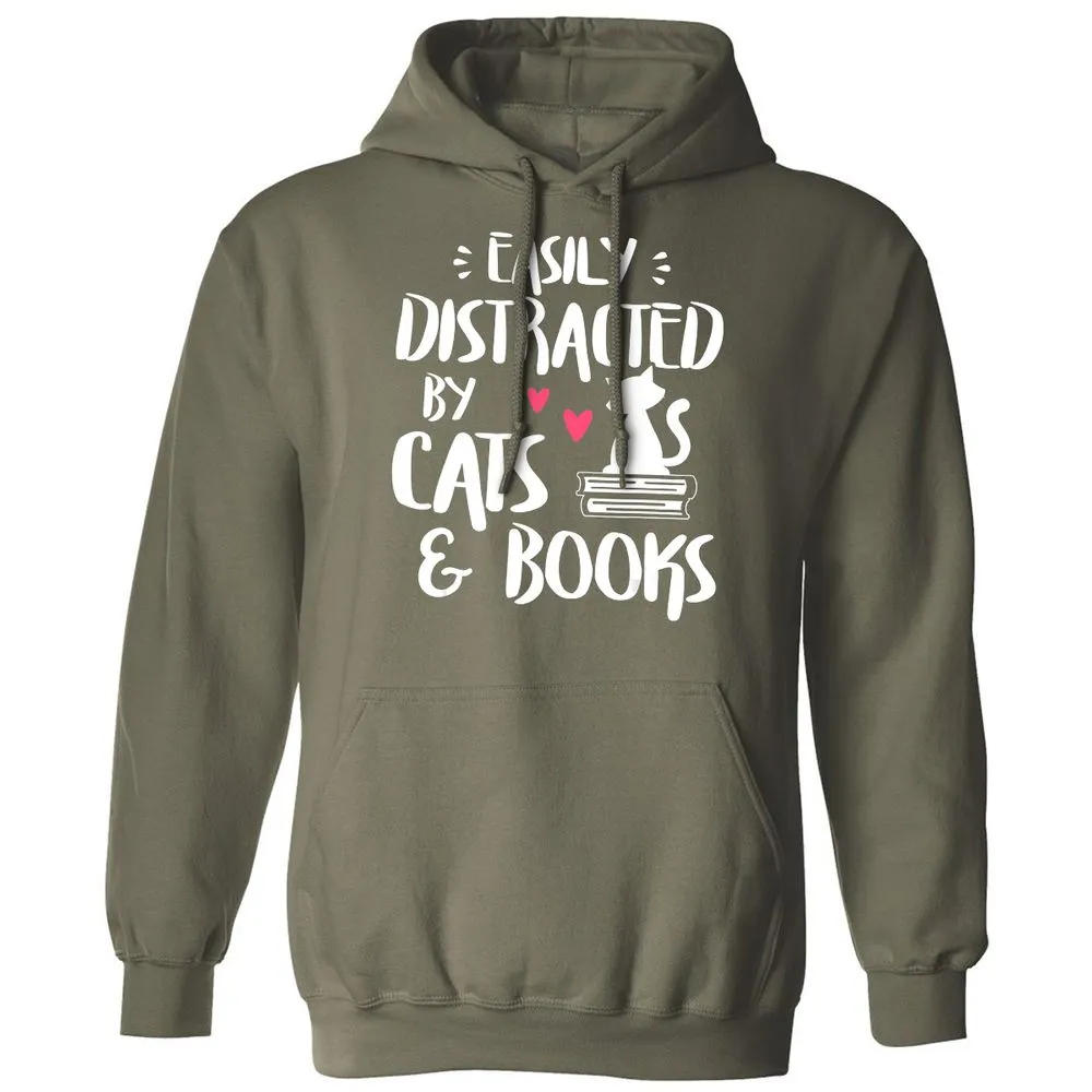 Easily Distracted by Cats and Books Cat & Book Lover Classic Unisex Hoodie