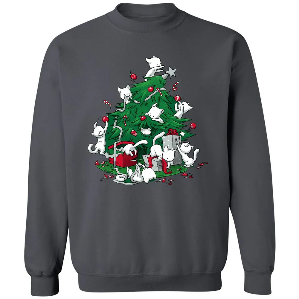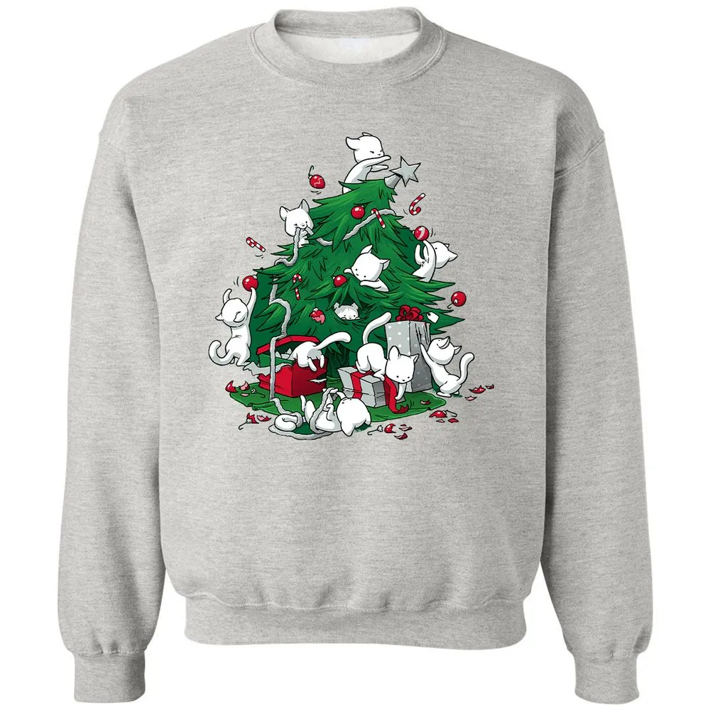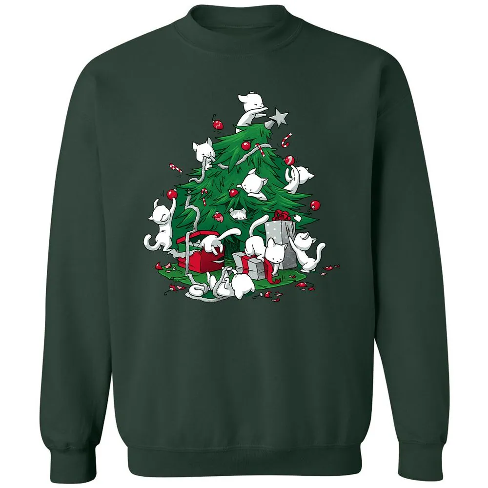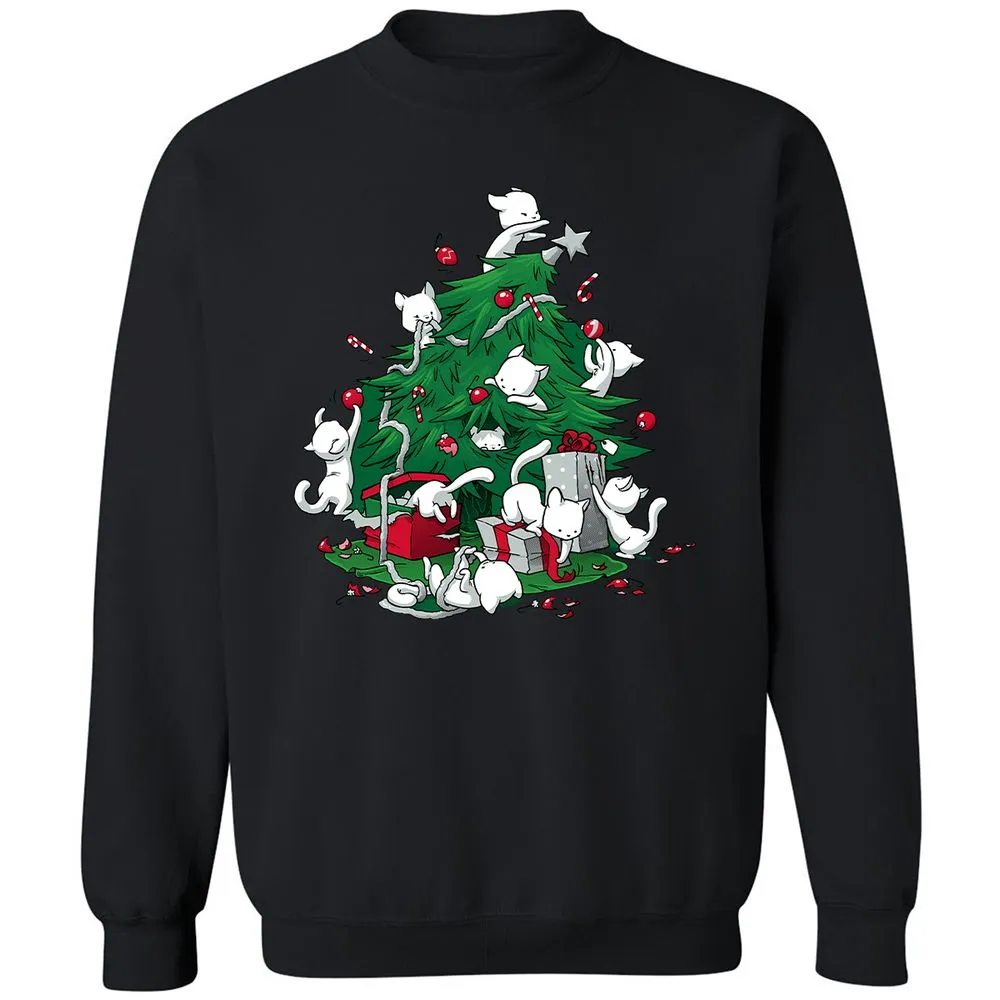 Cat and Christmas Tree Classic Unisex Sweatshirt
