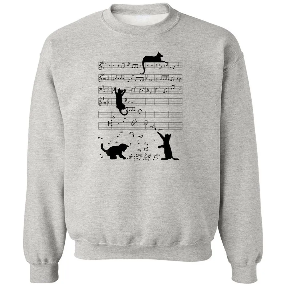 Cute Cat Kitty Playing Music Note Clef Musician Art Classic Unisex Sweatshirt
