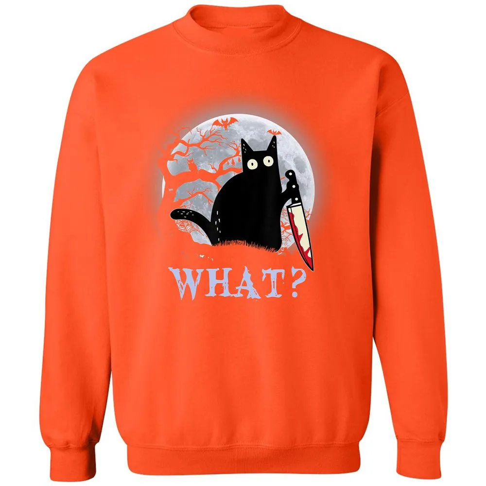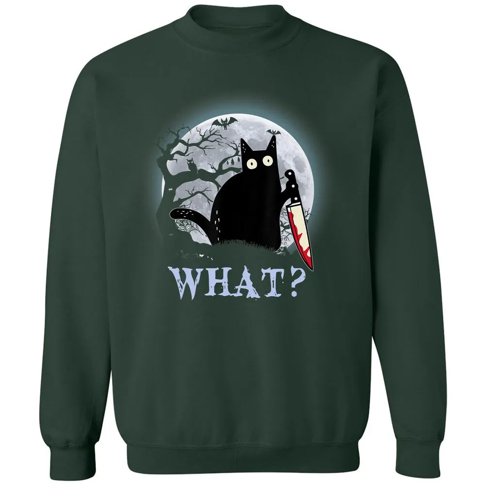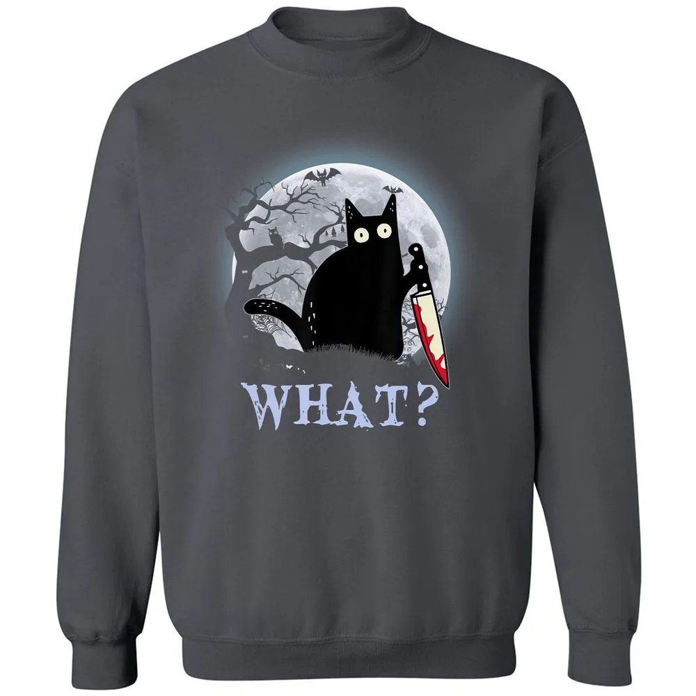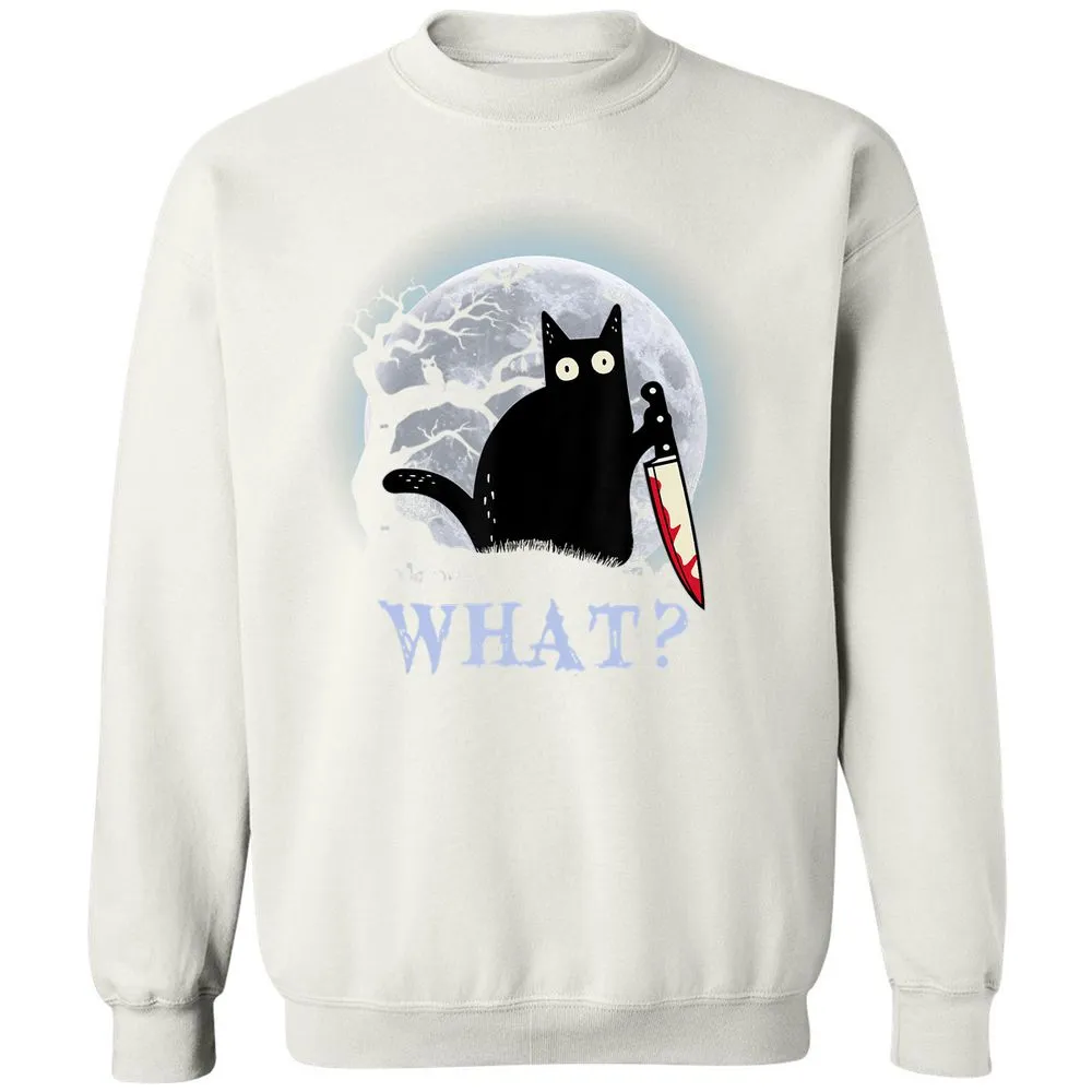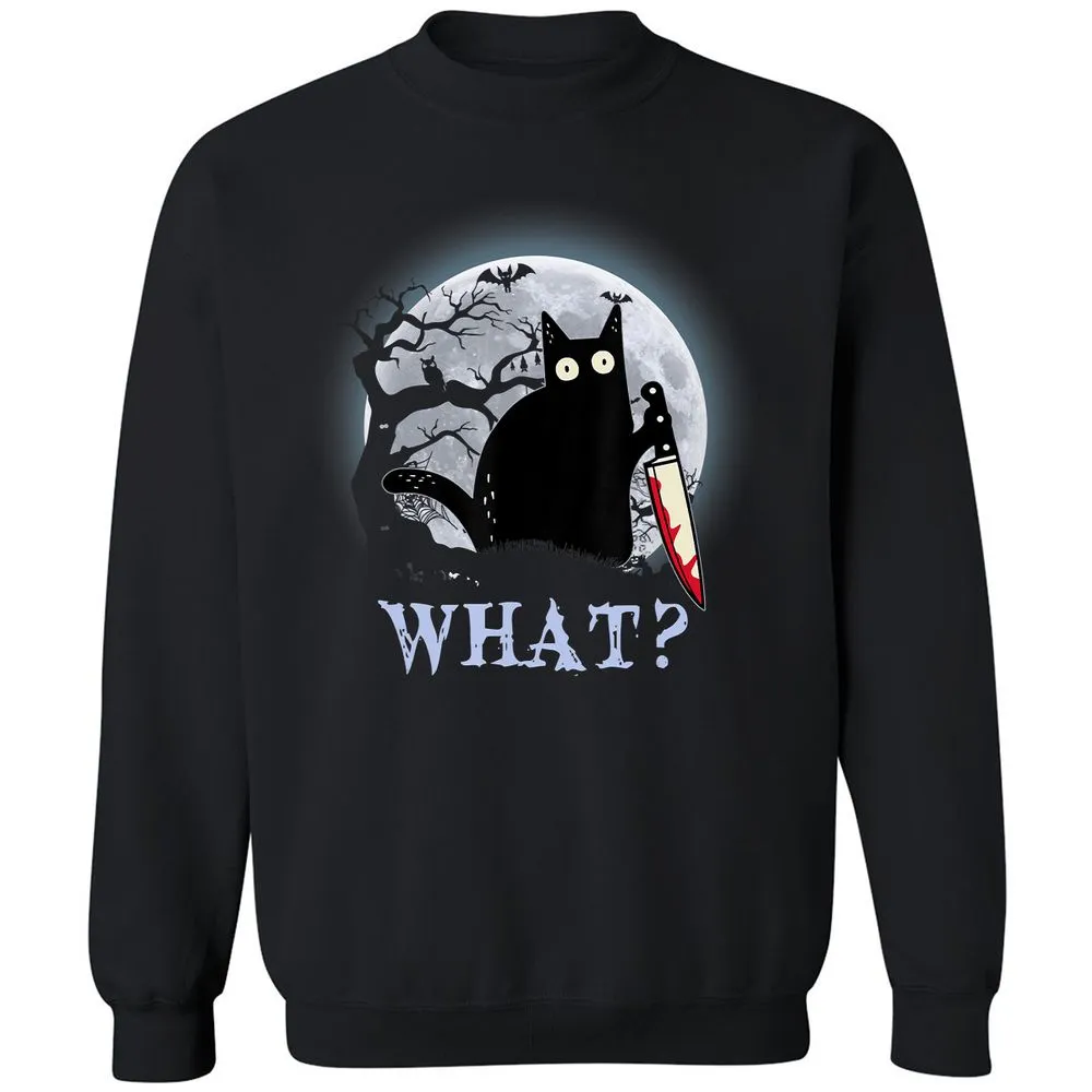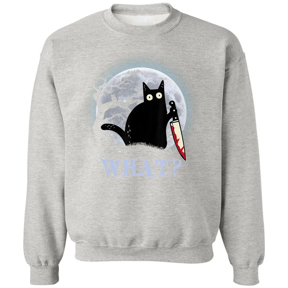 Cat What Murderous Black Cat With Knife Halloween Costume Classic Unisex Sweatshirt