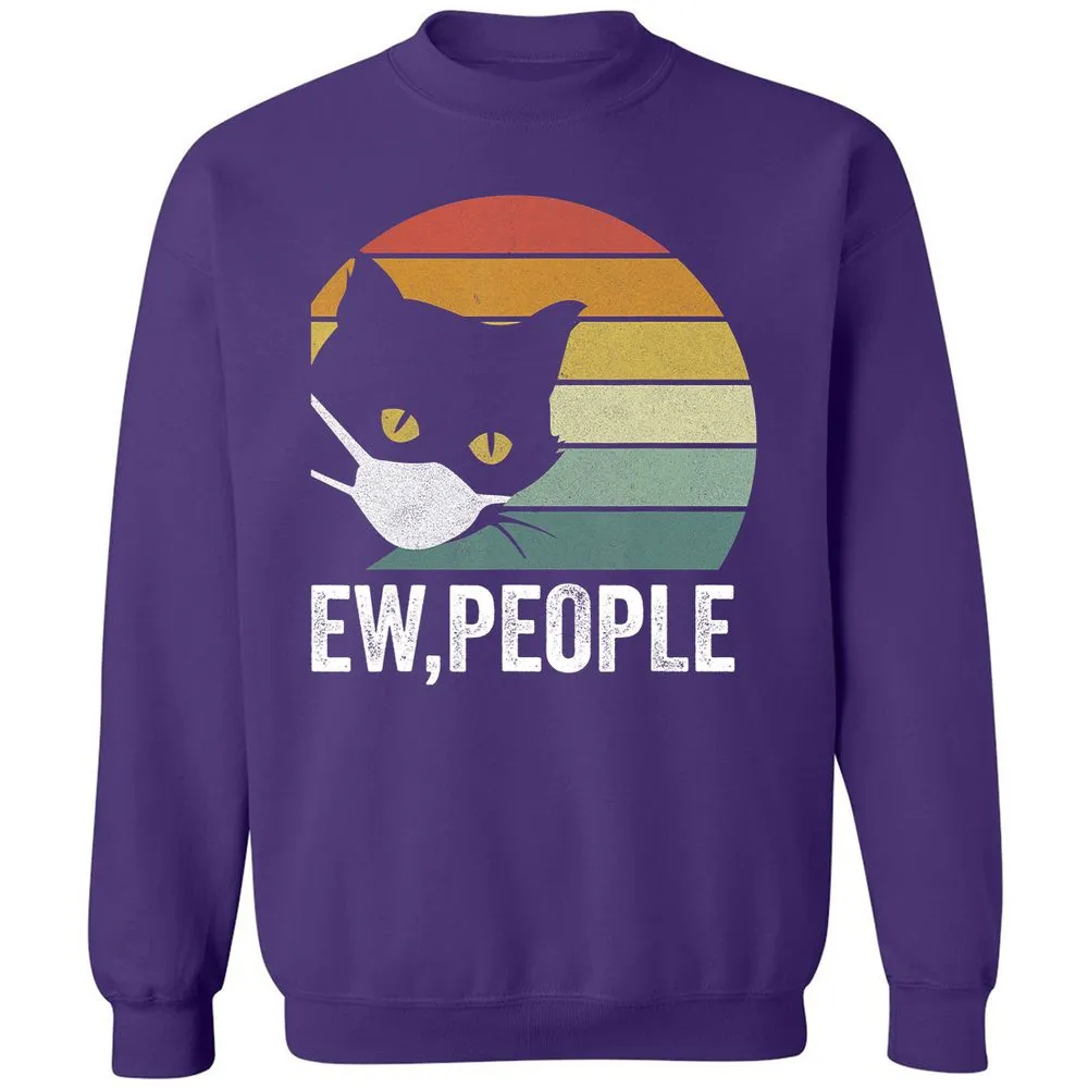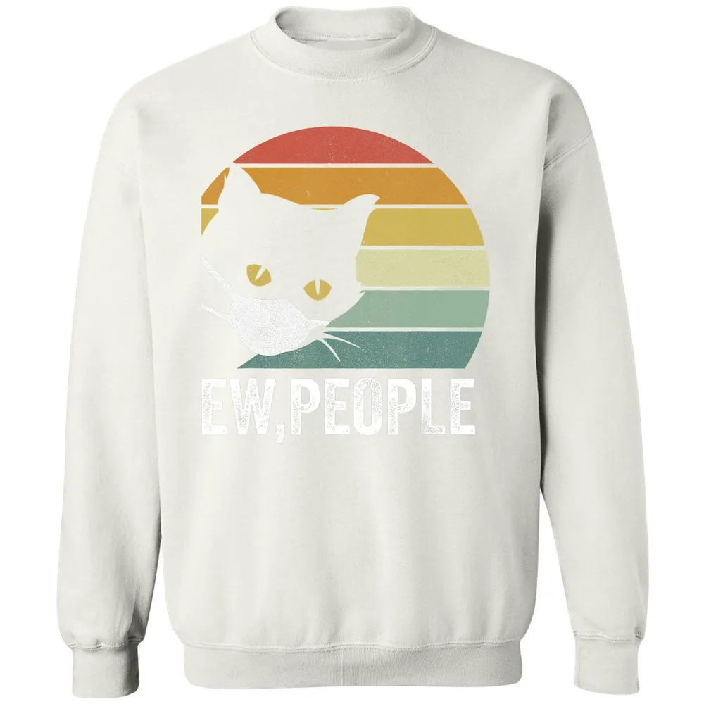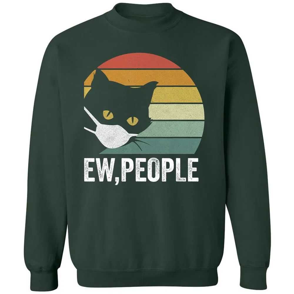 Retro Vintage Ew, people Black Cat Mask Quarantine Funny Cat Classic Unisex Sweatshirt