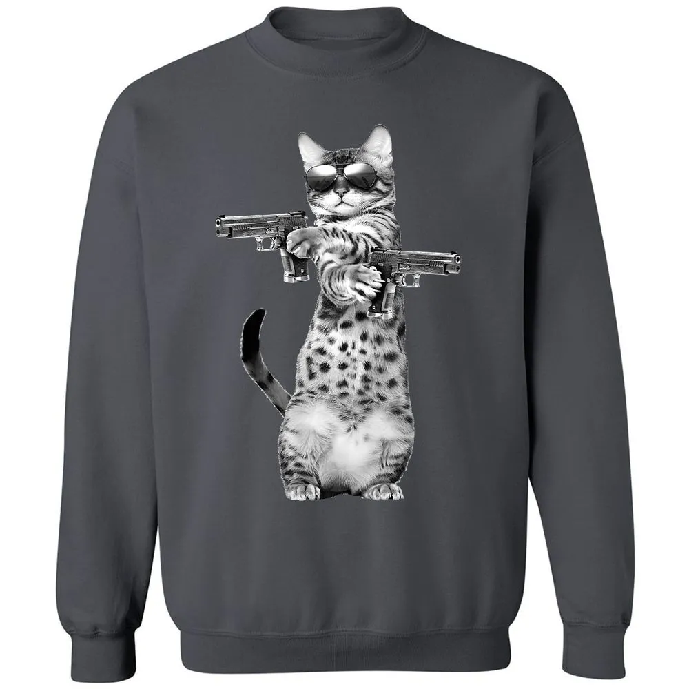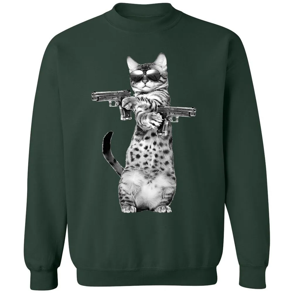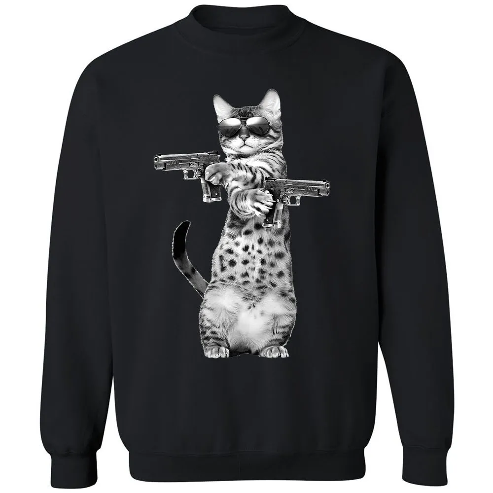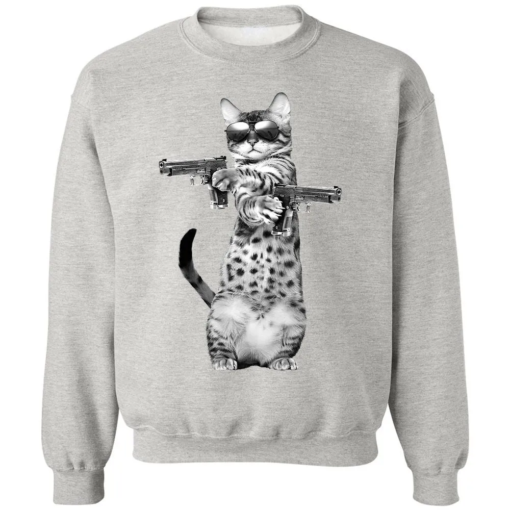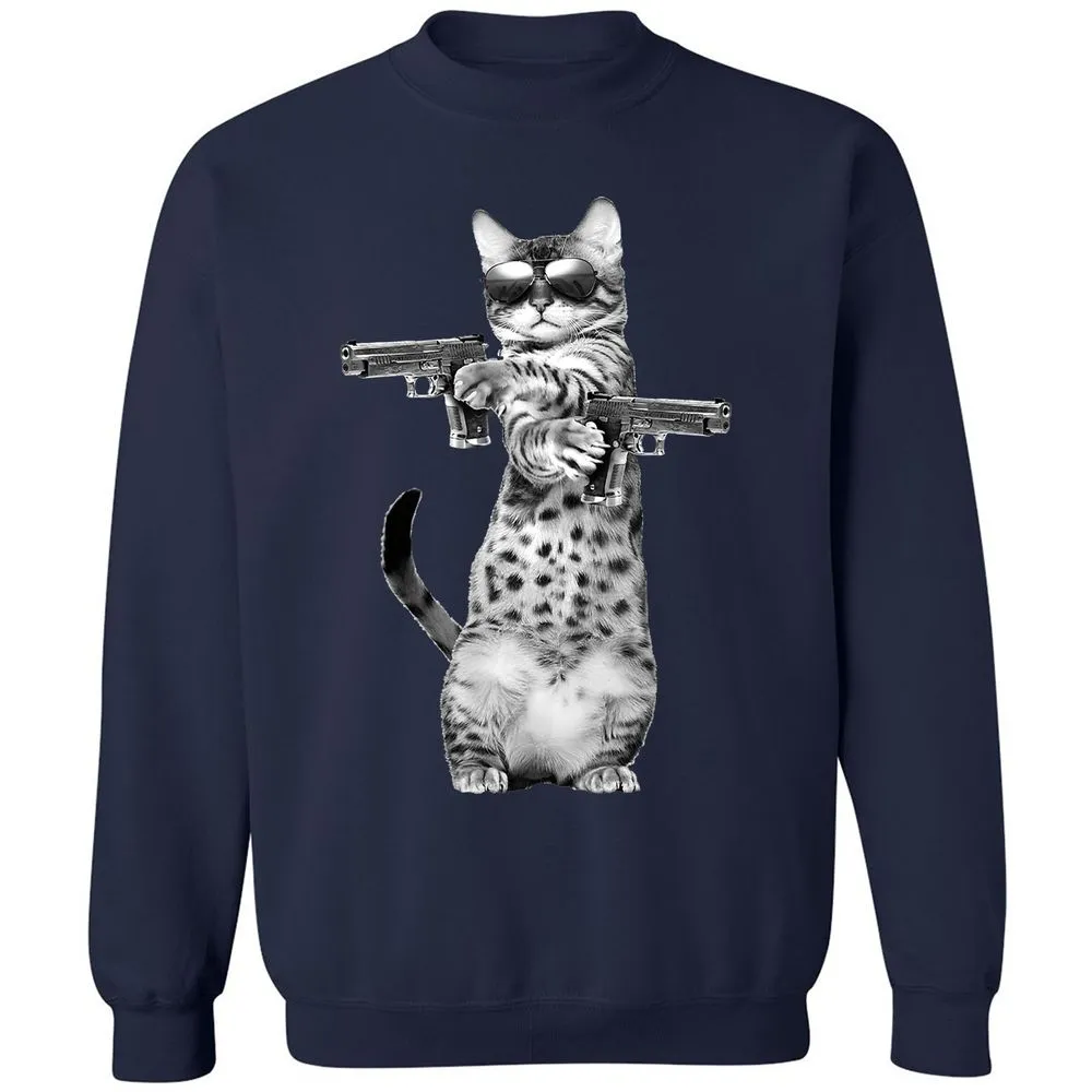 Kitty With Gun Funny Cat Classic Unisex Sweatshirt