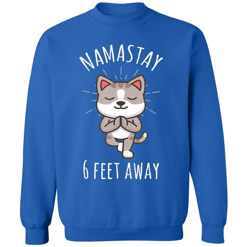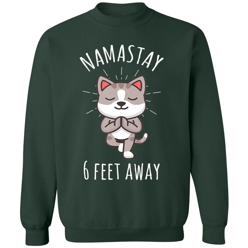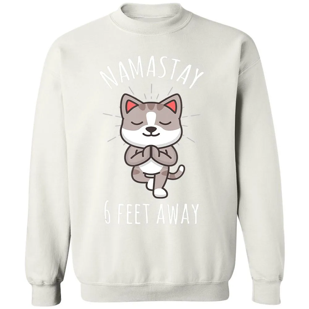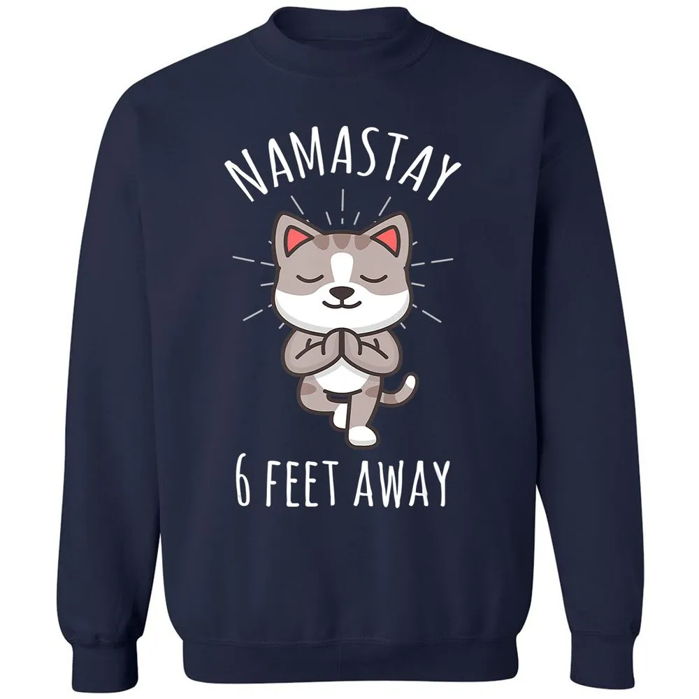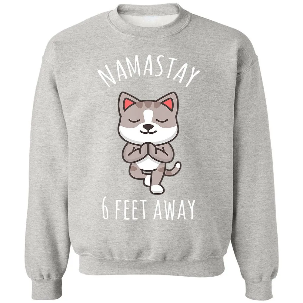 Namastay 6 Feet Away Funny Cute Cat Social Distancing Classic Unisex Sweatshirt