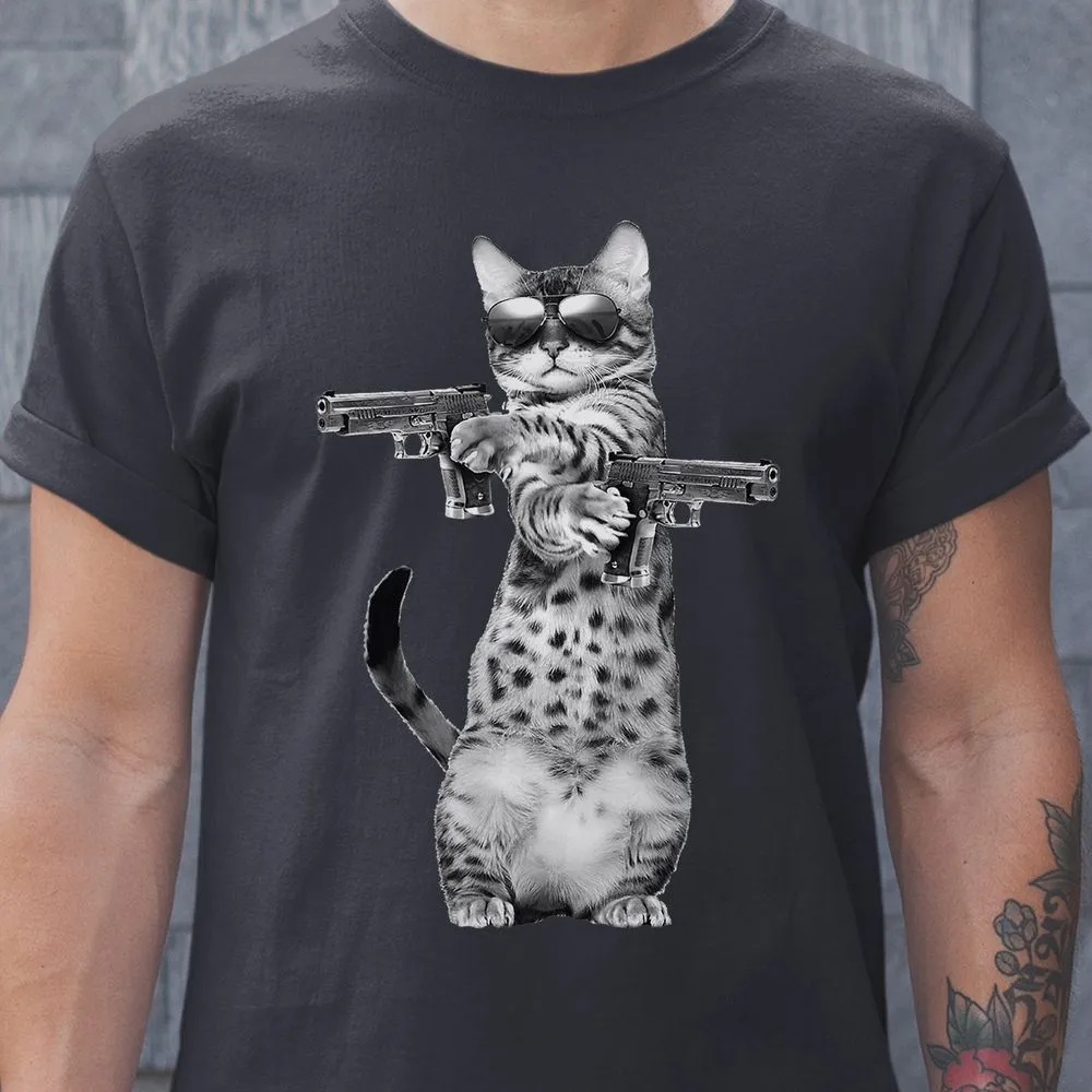 Kitty With Gun Funny Cat Classic Unisex T-Shirt