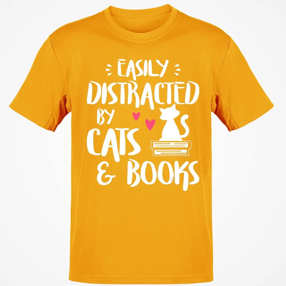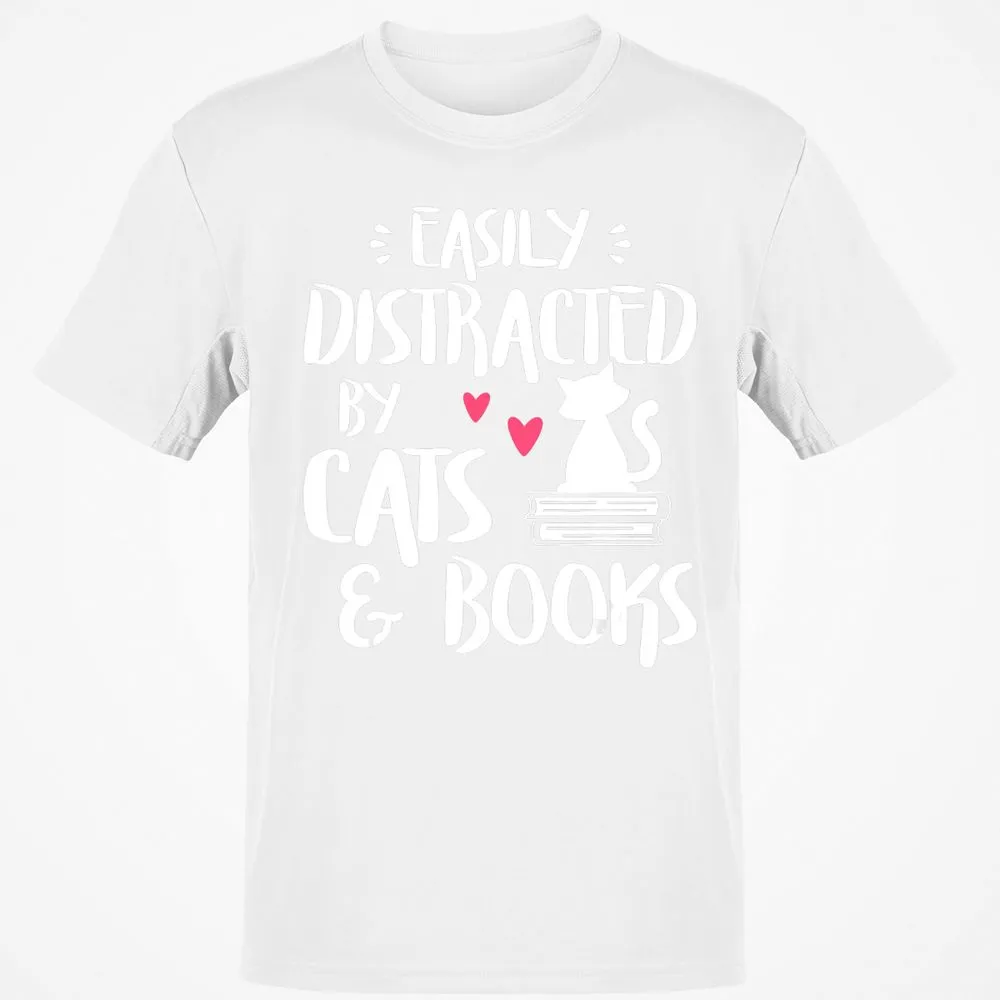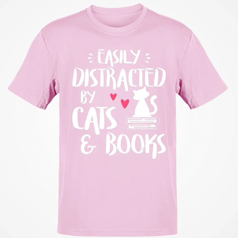 Easily Distracted by Cats and Books Cat & Book Lover Classic Unisex T-Shirt