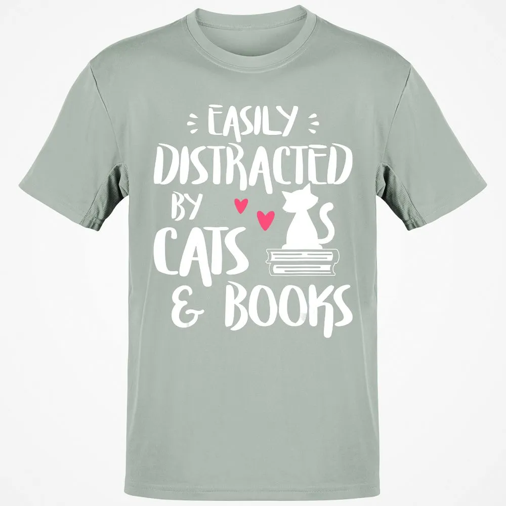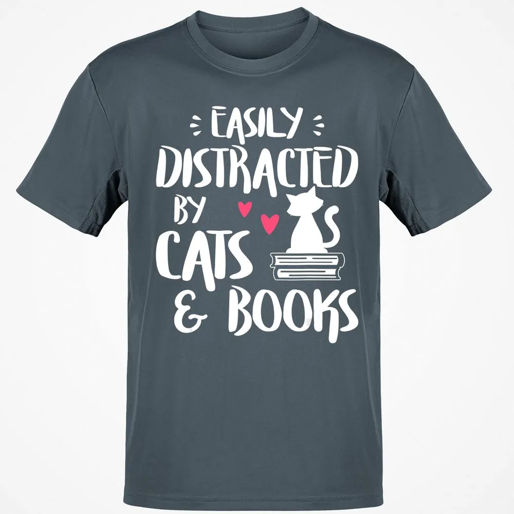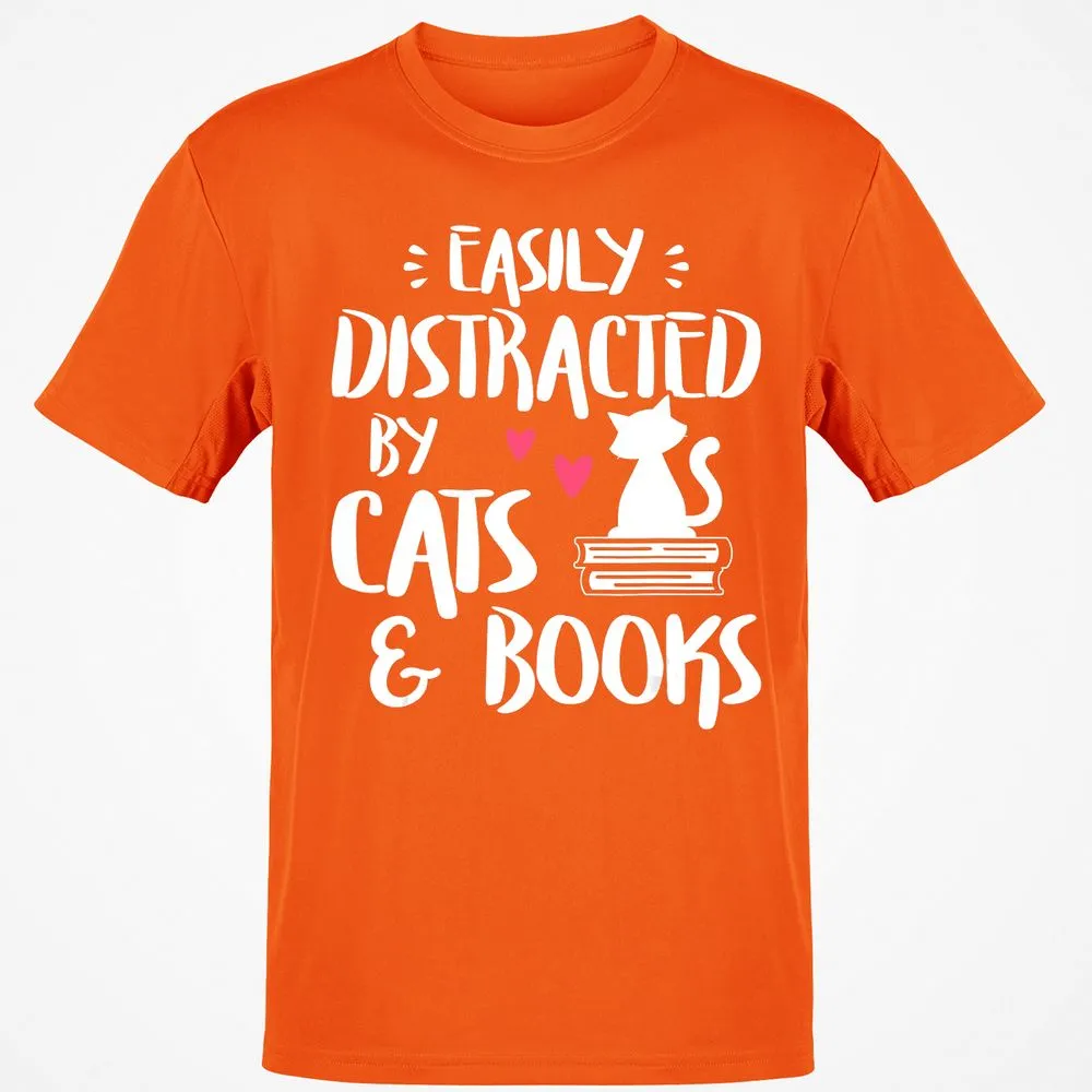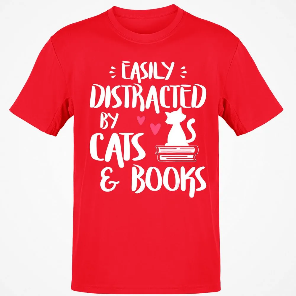Easily Distracted by Cats and Books Cat & Book Lover Classic Unisex T-Shirt