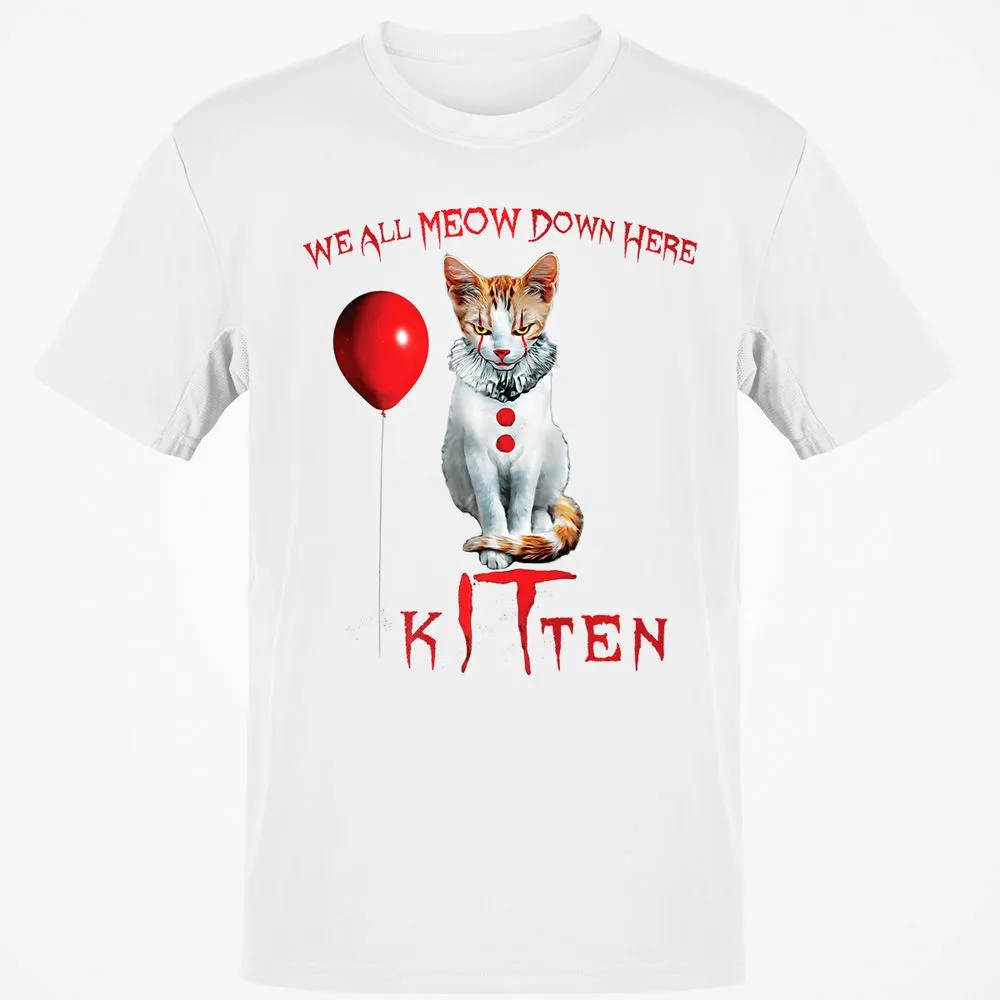 We All MEOW Down Here Clown Cat Kitten Premium Classic Unisex T-Shirt