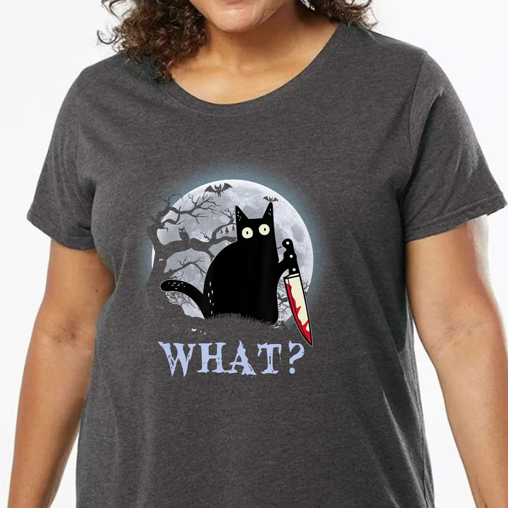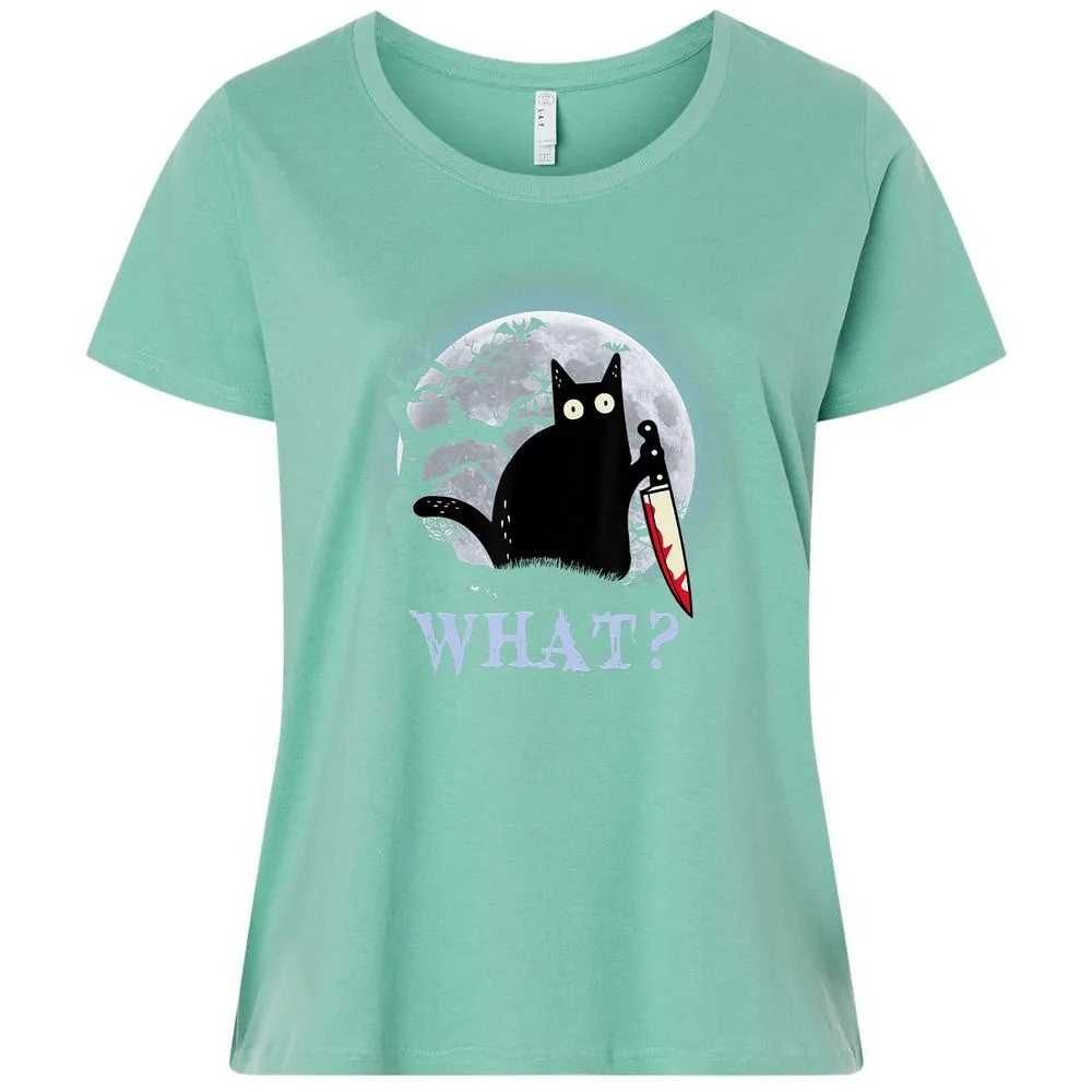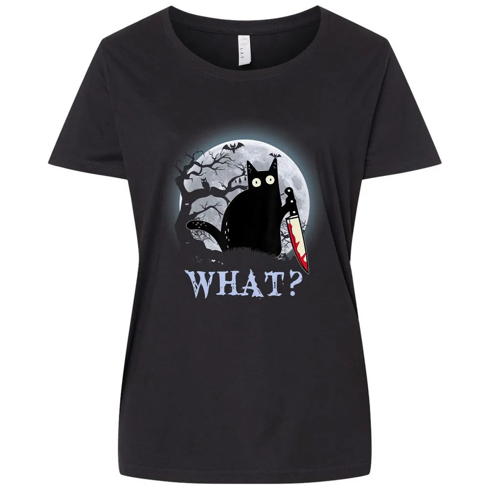 Cat What Murderous Black Cat With Knife Halloween Costume Ladies Curvy Jersey