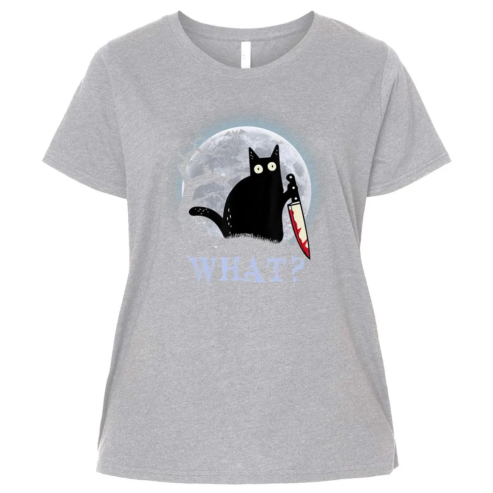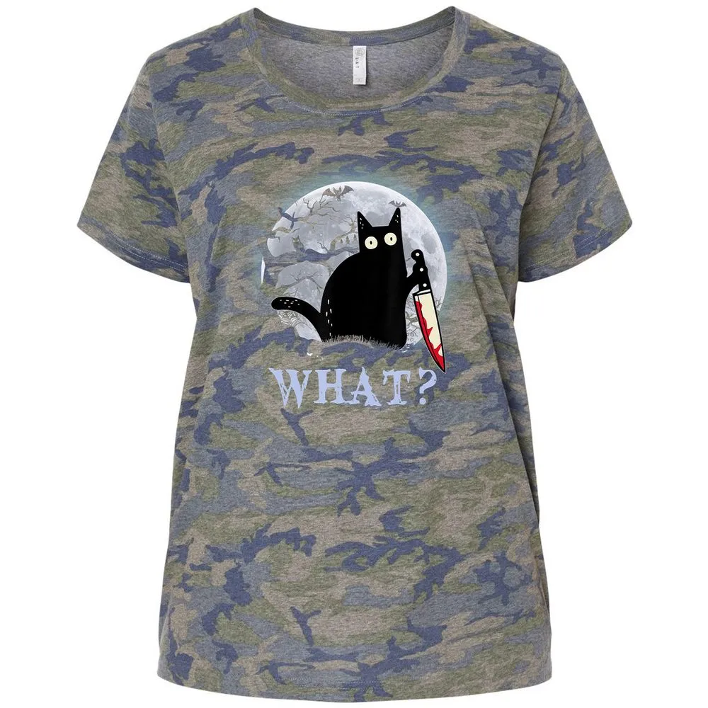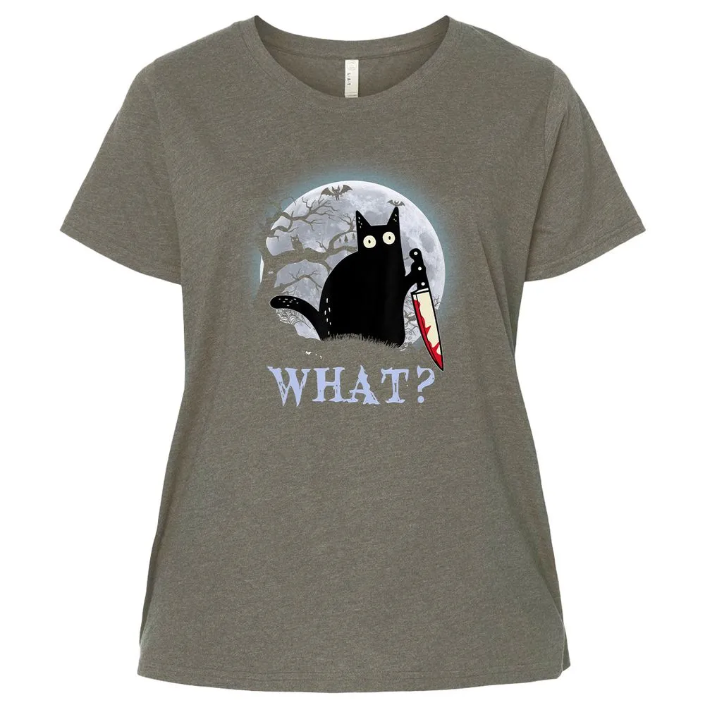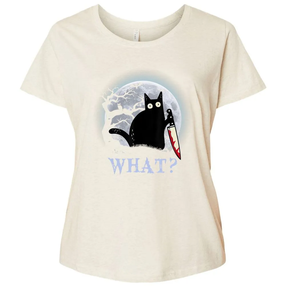 Cat What Murderous Black Cat With Knife Halloween Costume Ladies Curvy Jersey