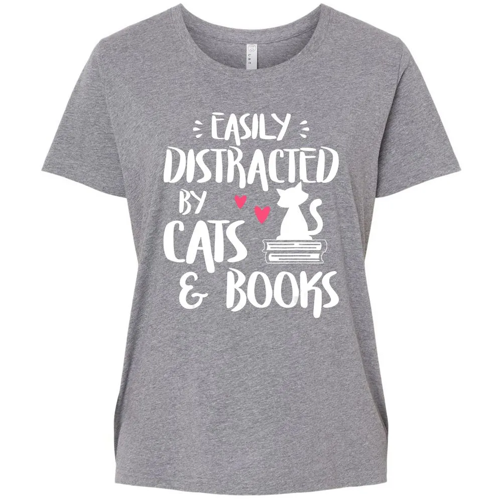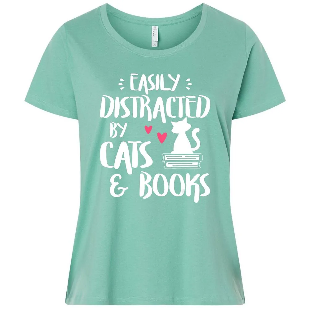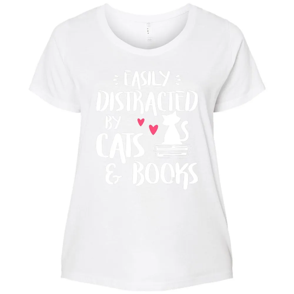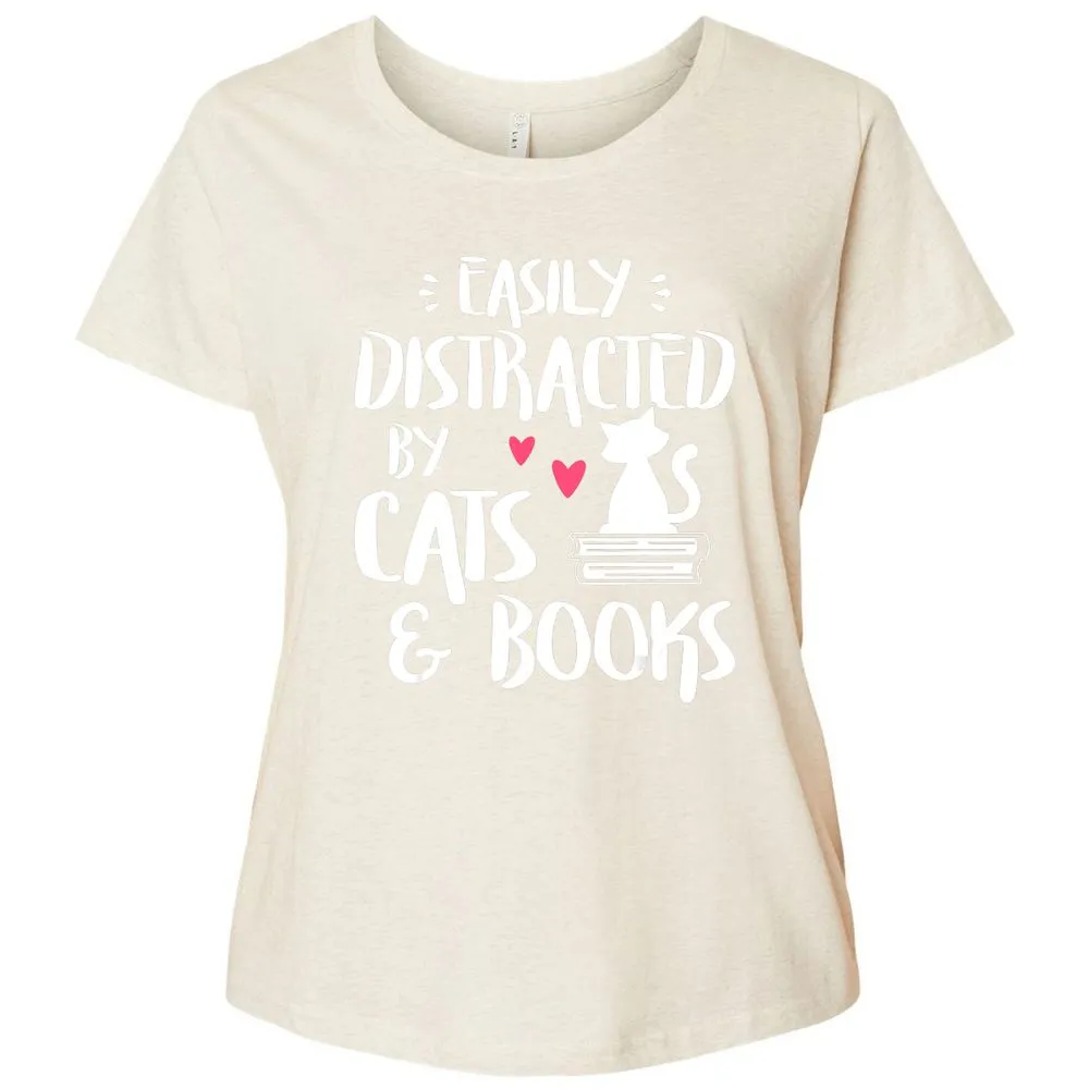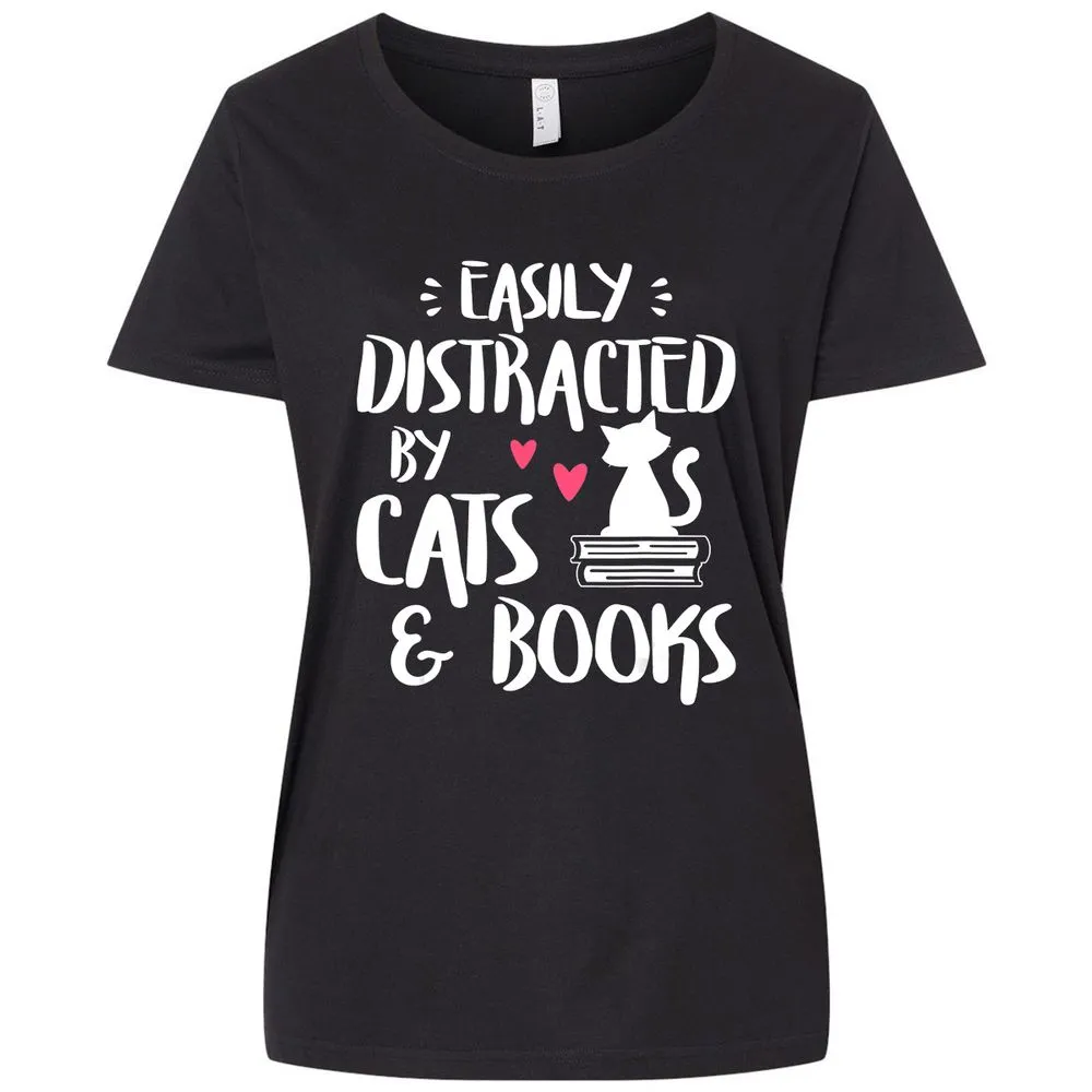 Easily Distracted by Cats and Books Cat & Book Lover Ladies Curvy Jersey