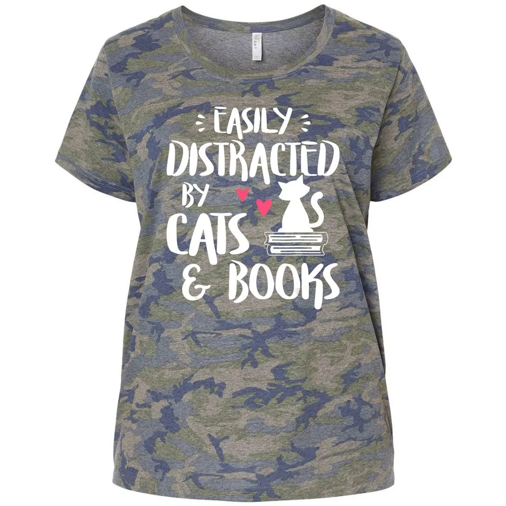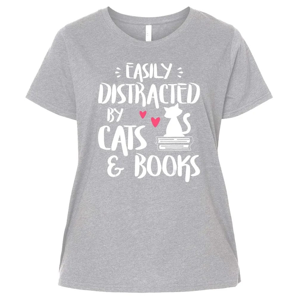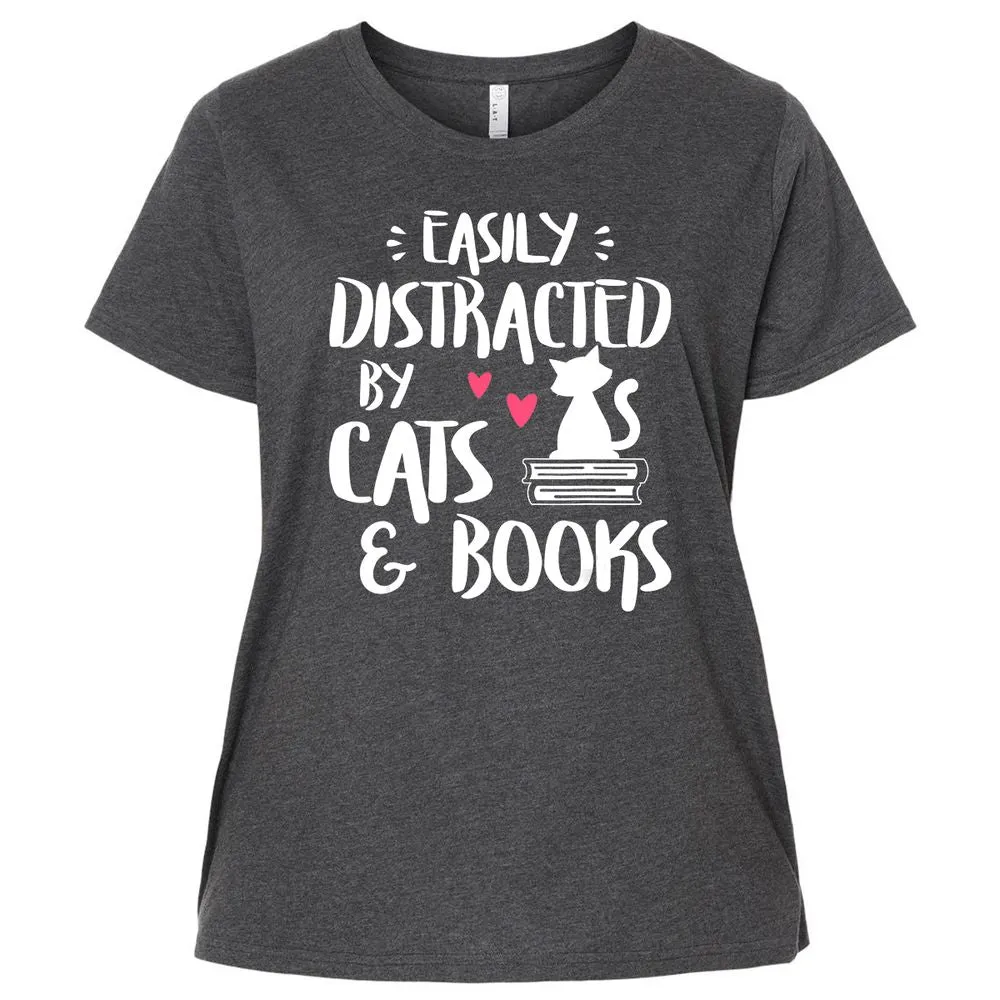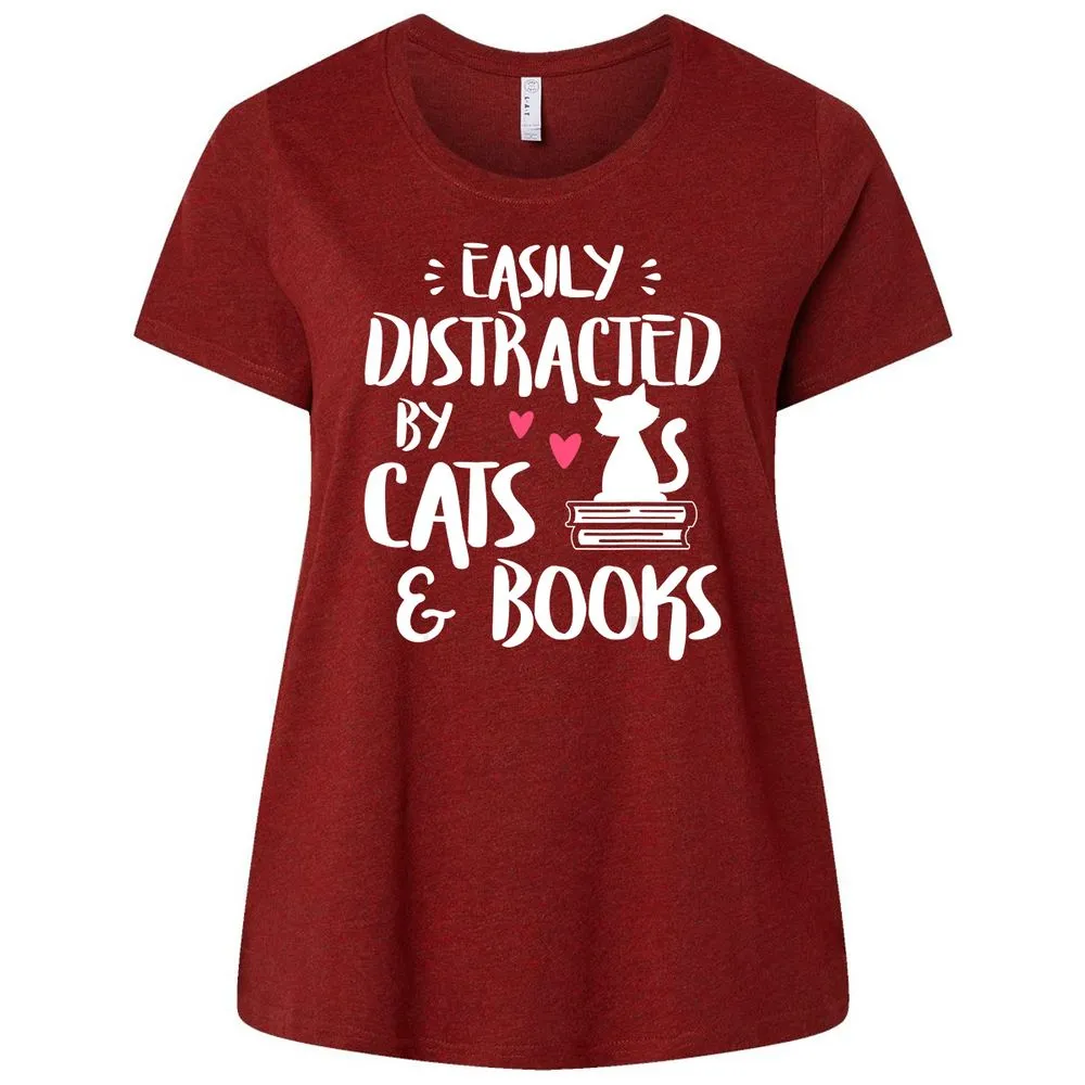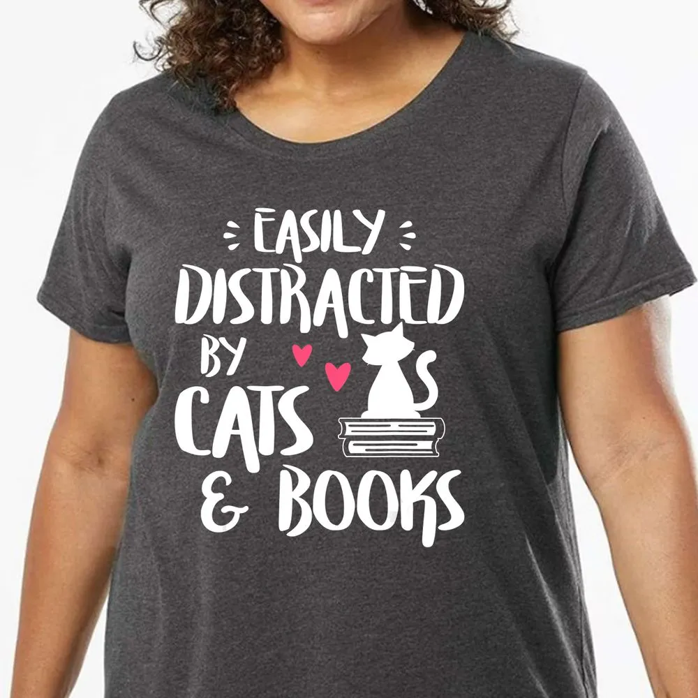 Easily Distracted by Cats and Books Cat & Book Lover Ladies Curvy Jersey