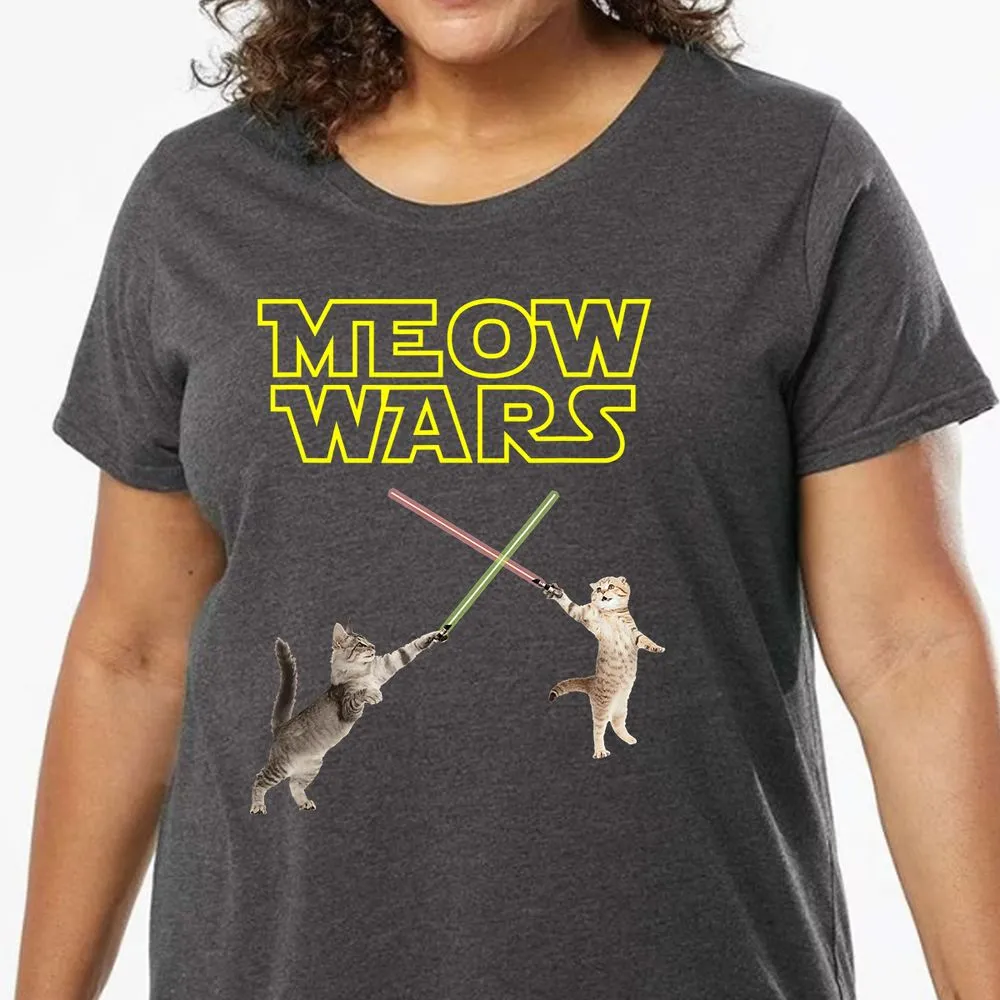 Meow Wars funny Cat lover pop art Ladies Curvy Jersey