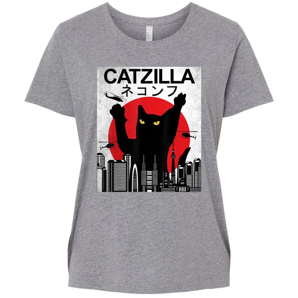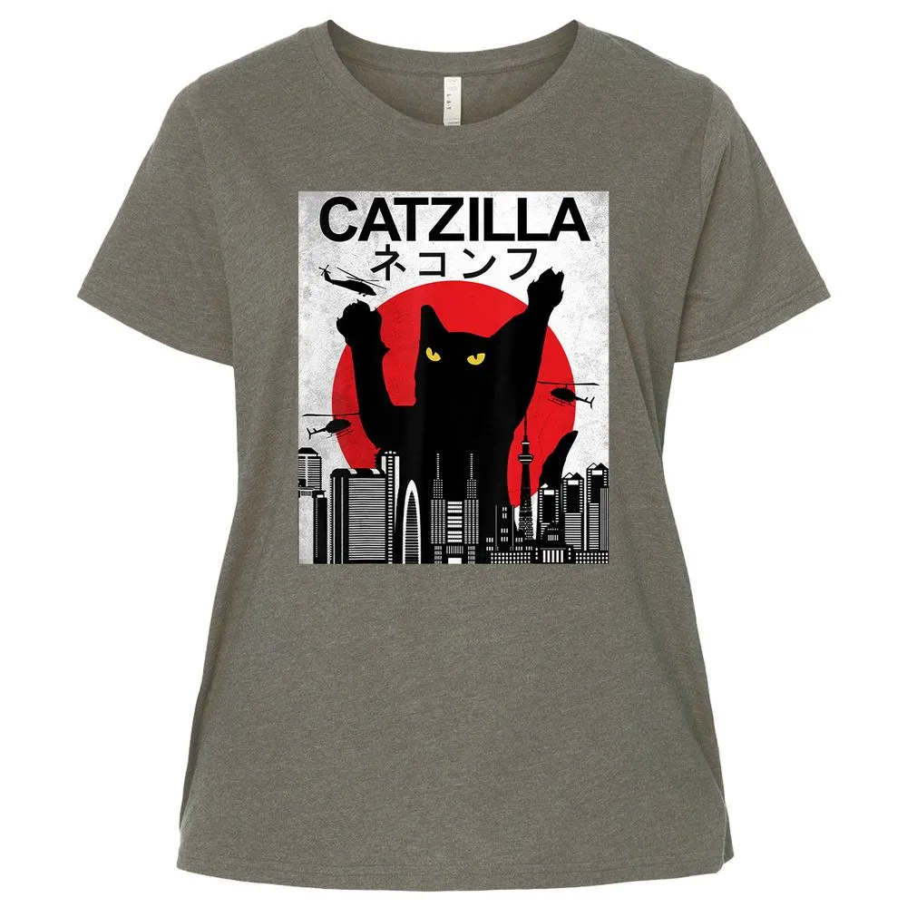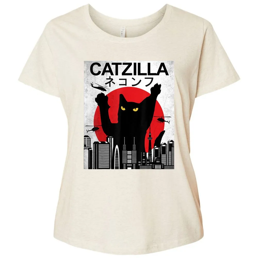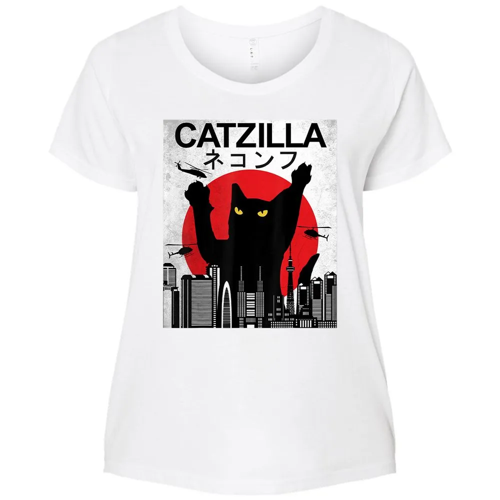 Vintage Catzilla Japanese Cat Style Retro Sunset Kitten Ladies Curvy Jersey