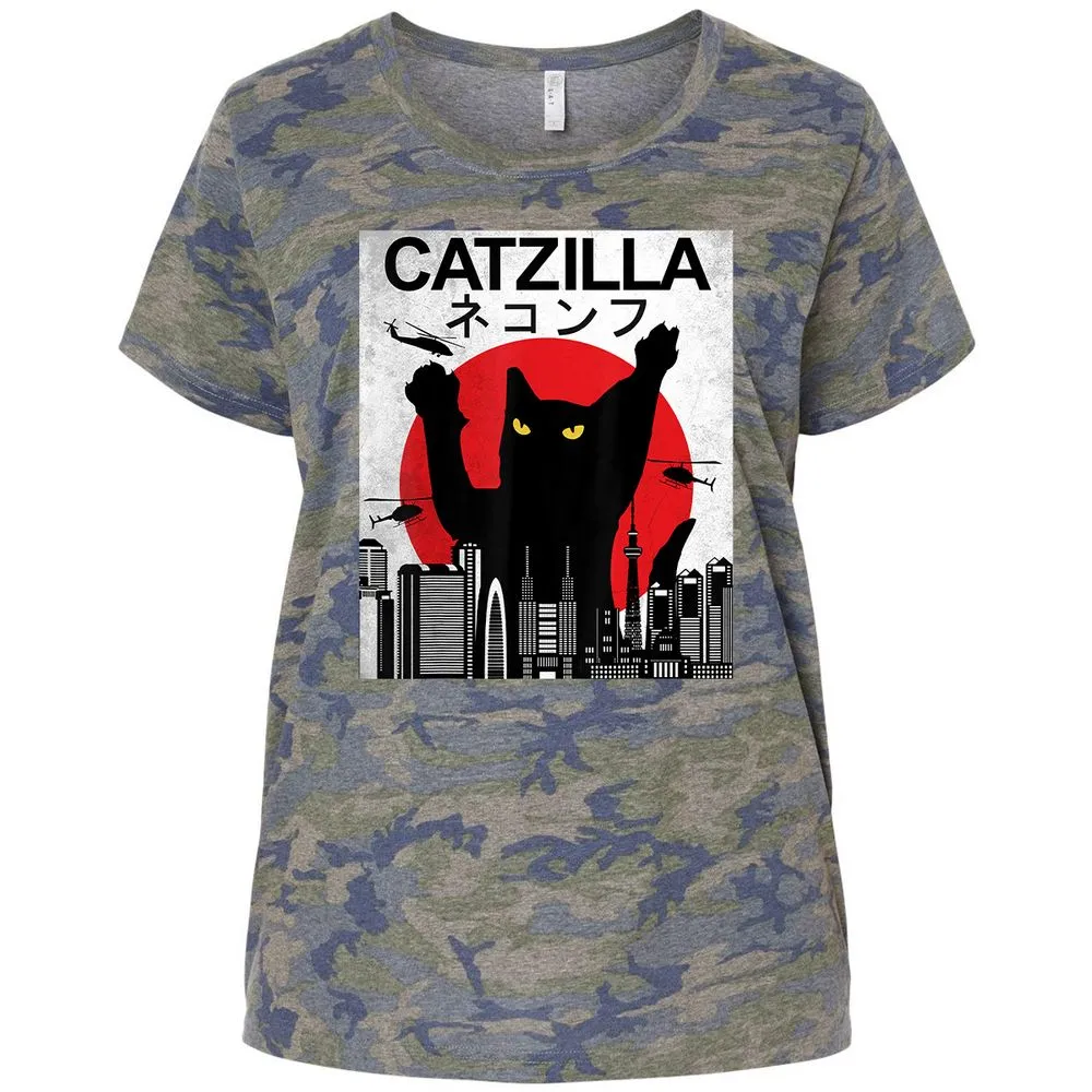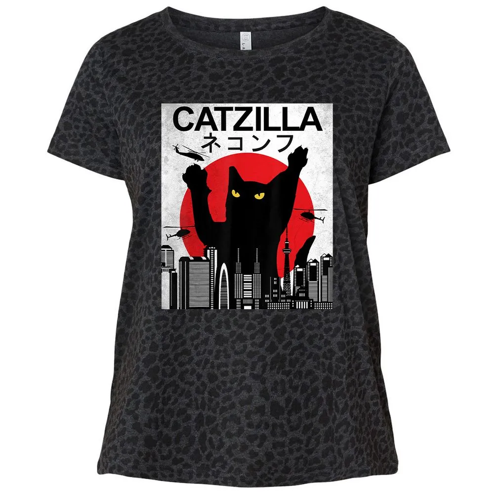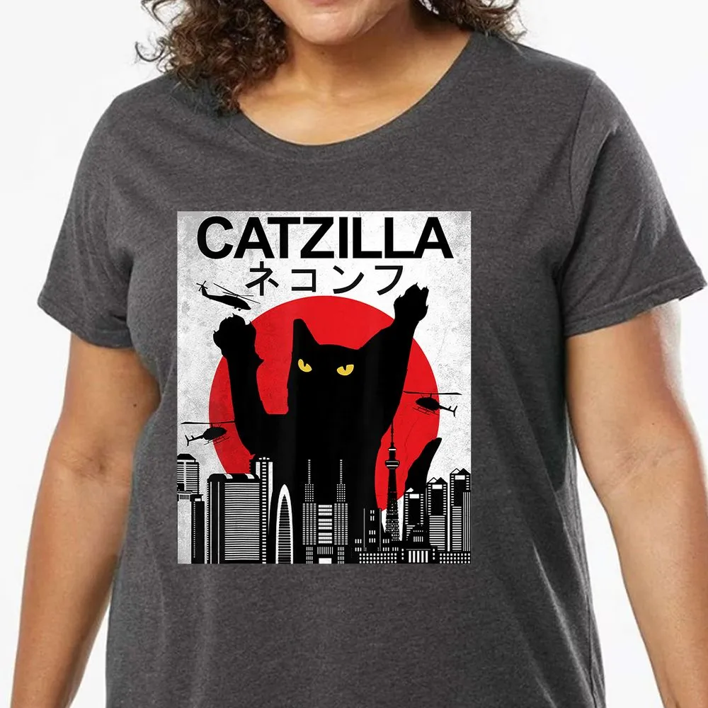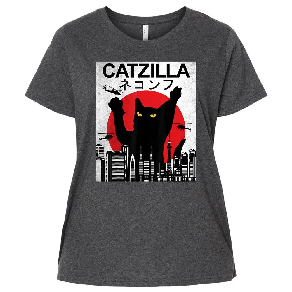 Vintage Catzilla Japanese Cat Style Retro Sunset Kitten Ladies Curvy Jersey