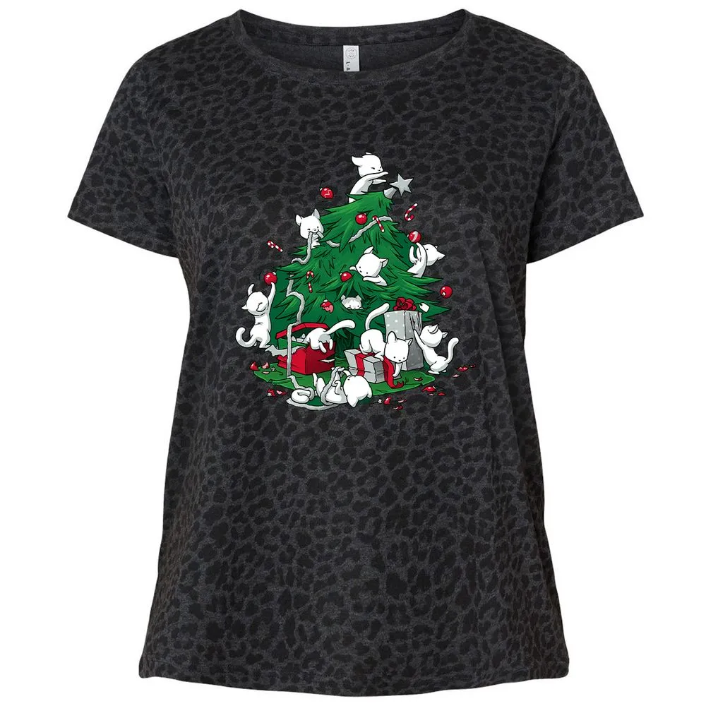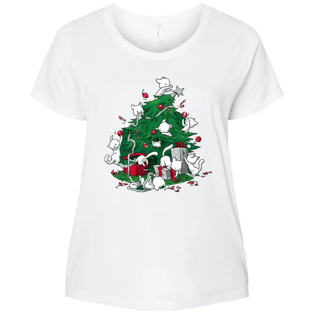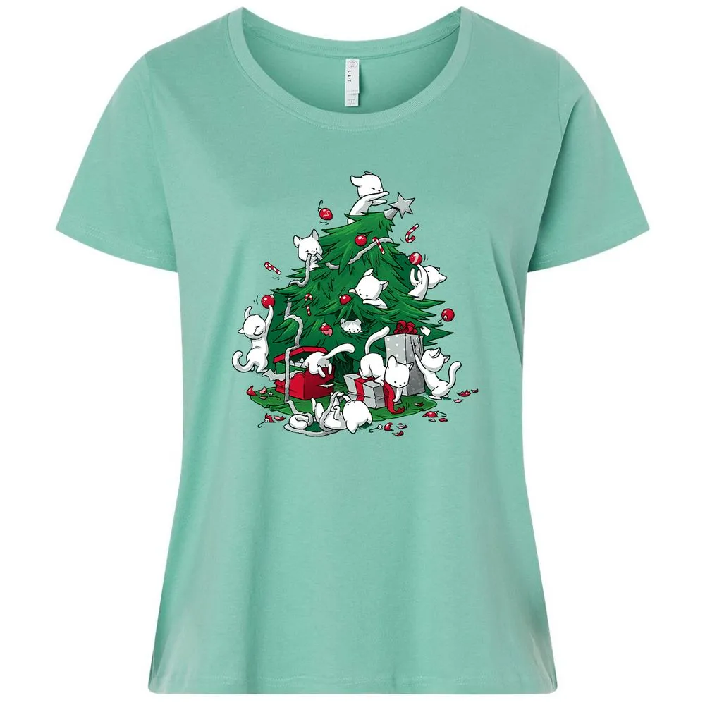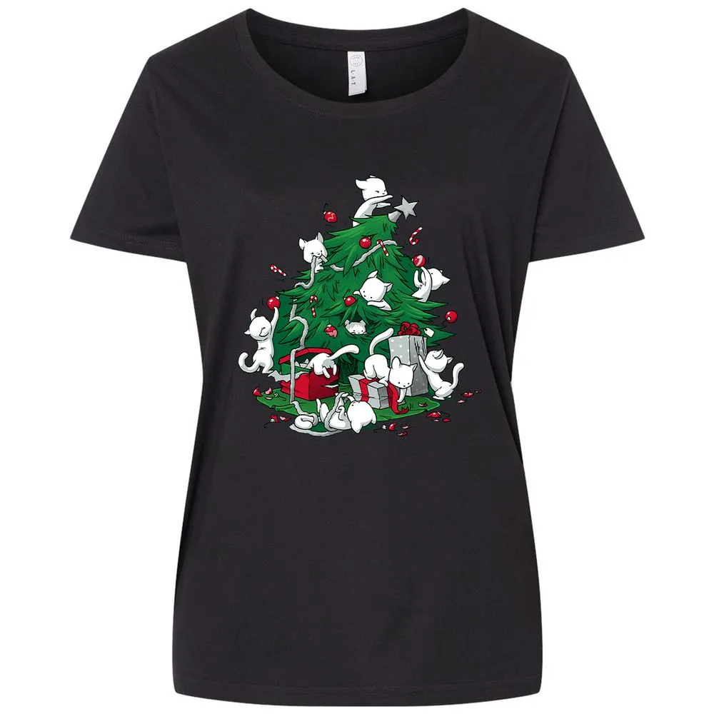 Cat and Christmas Tree Ladies Curvy Jersey