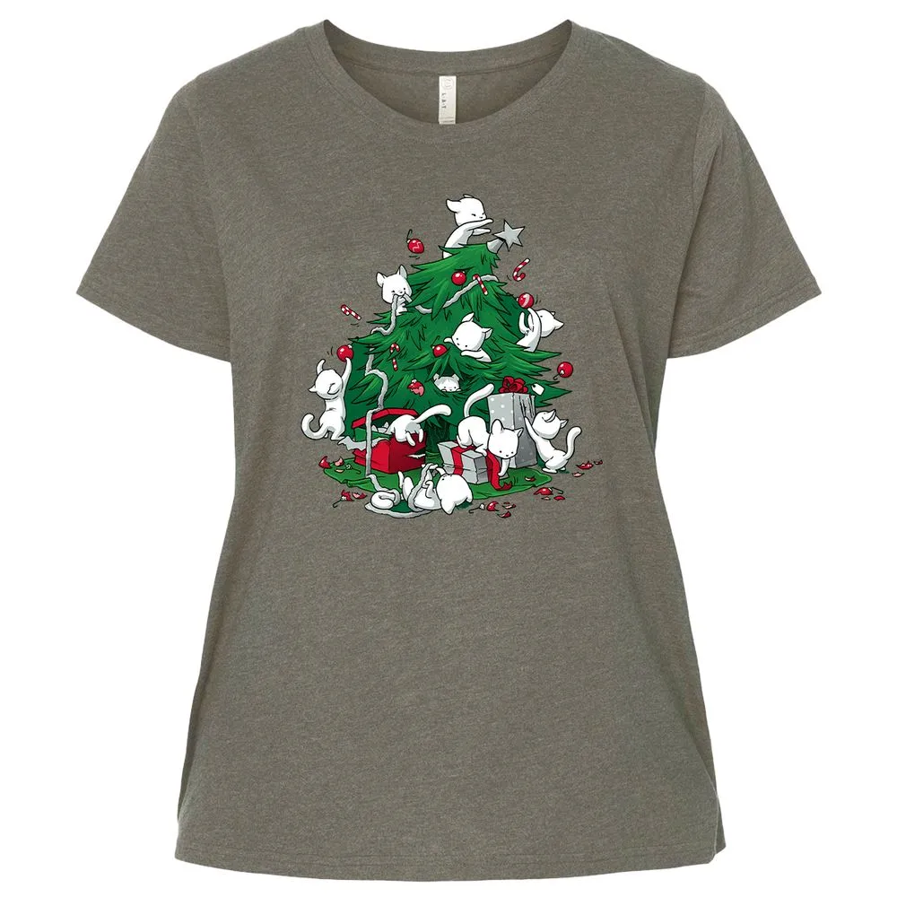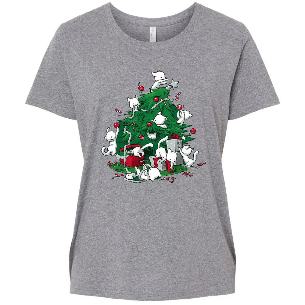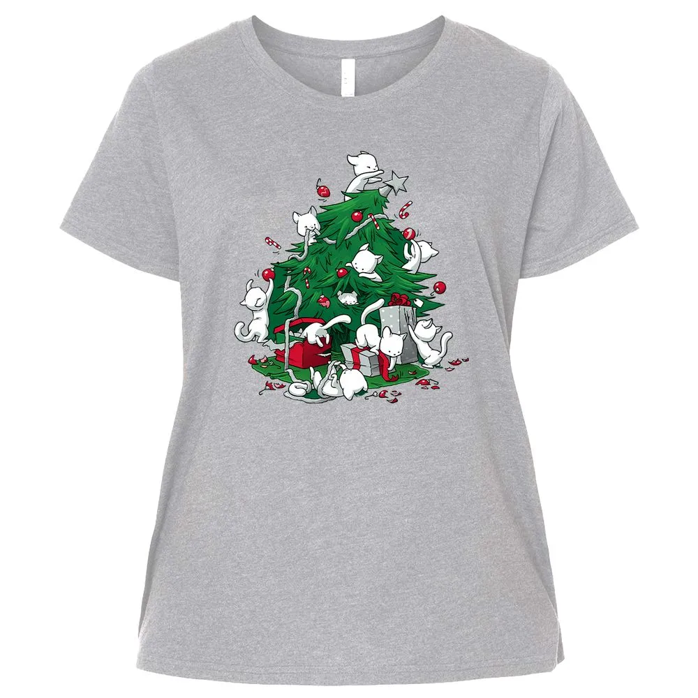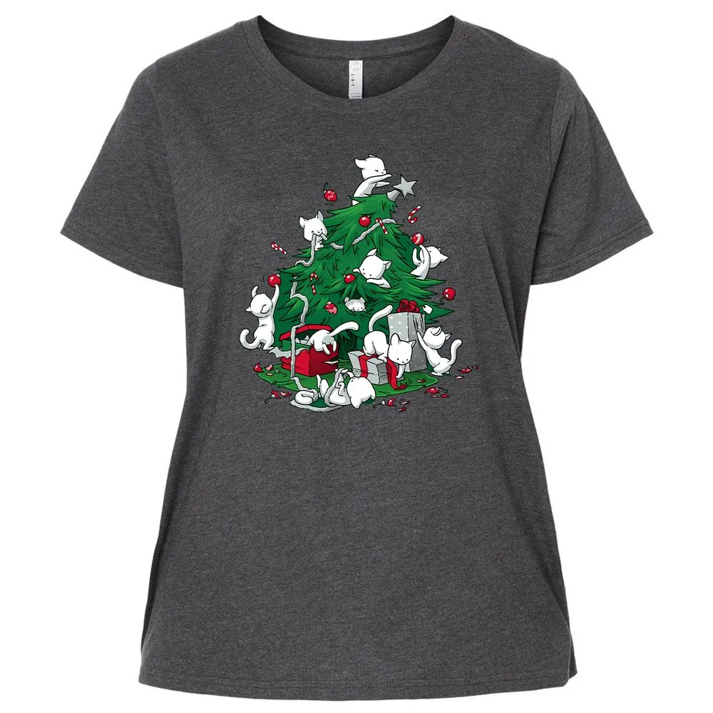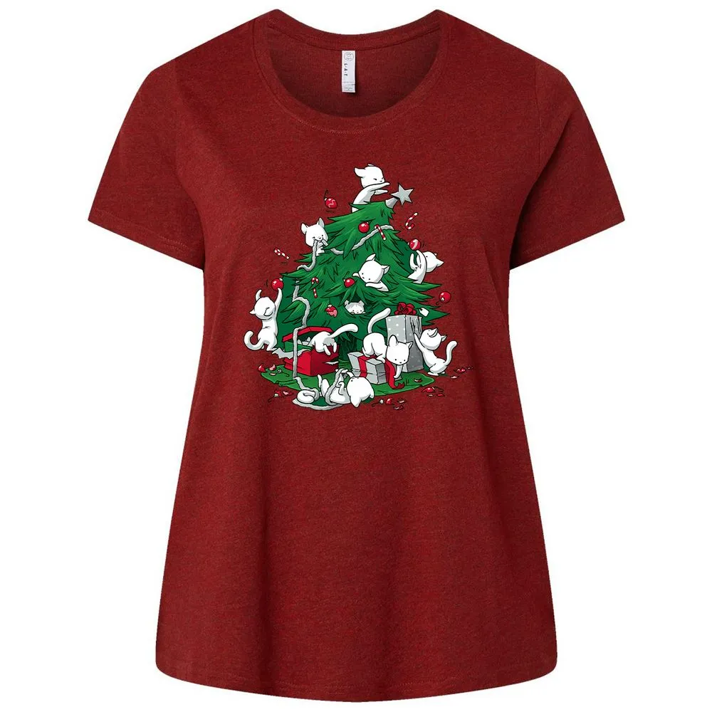 Cat and Christmas Tree Ladies Curvy Jersey