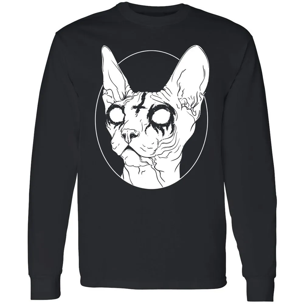 Black Metal Sphynx Cat I Goth and Death Metal Long Sleeve T-Shirt