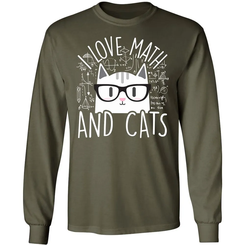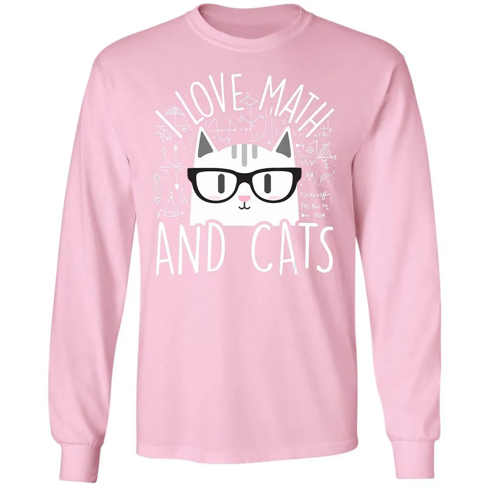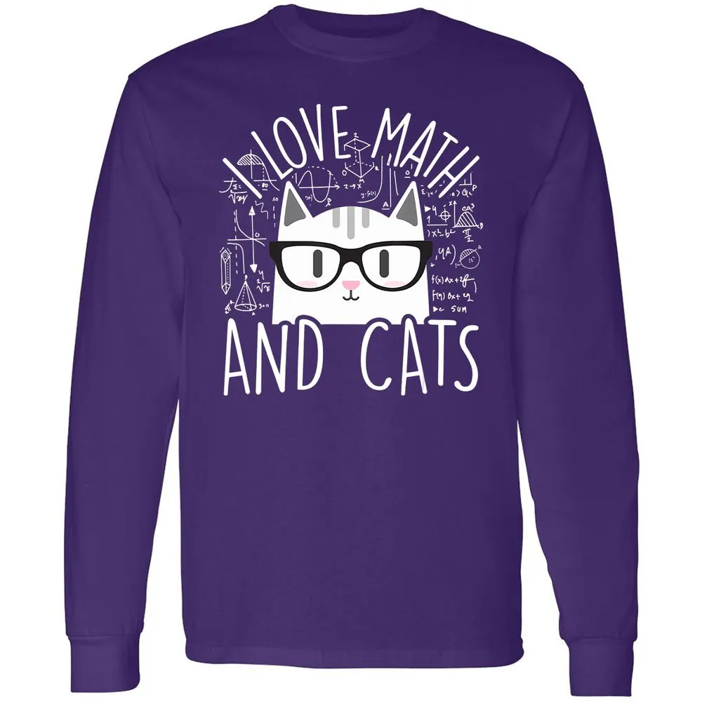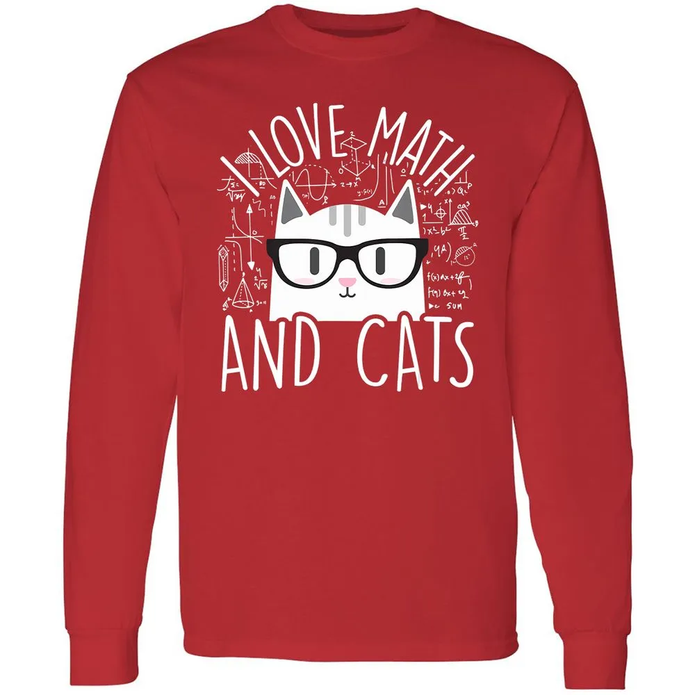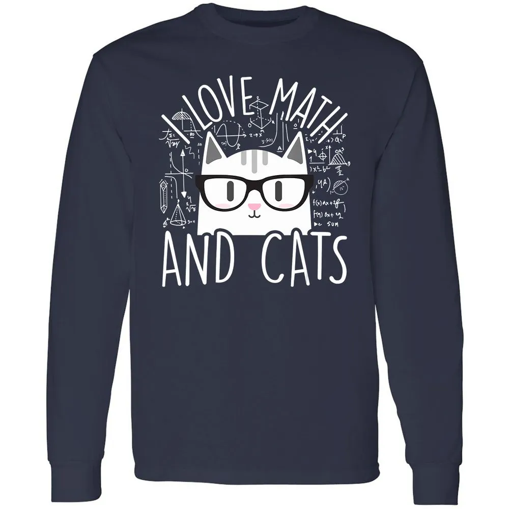 I Love Math And Cats Funny Cat Lover Gift Long Sleeve T-Shirt