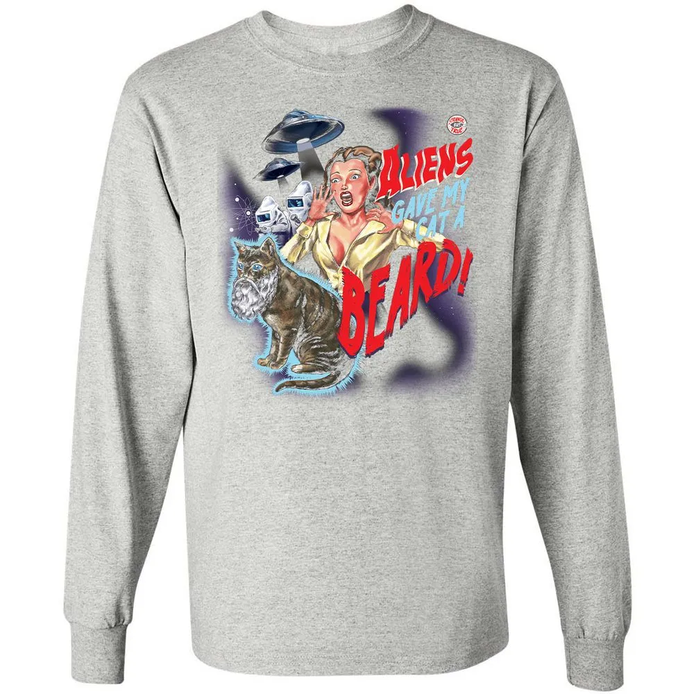 Aliens gave my cat a beard! Long Sleeve T-Shirt