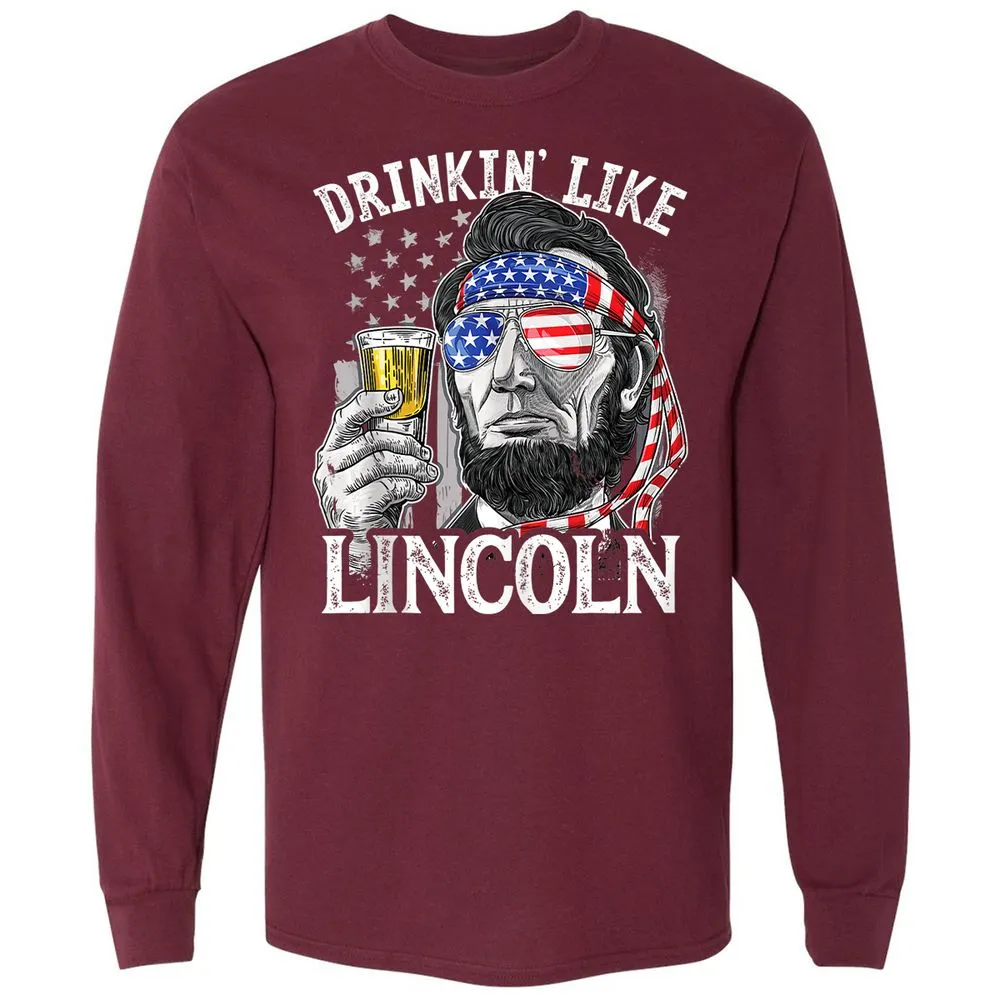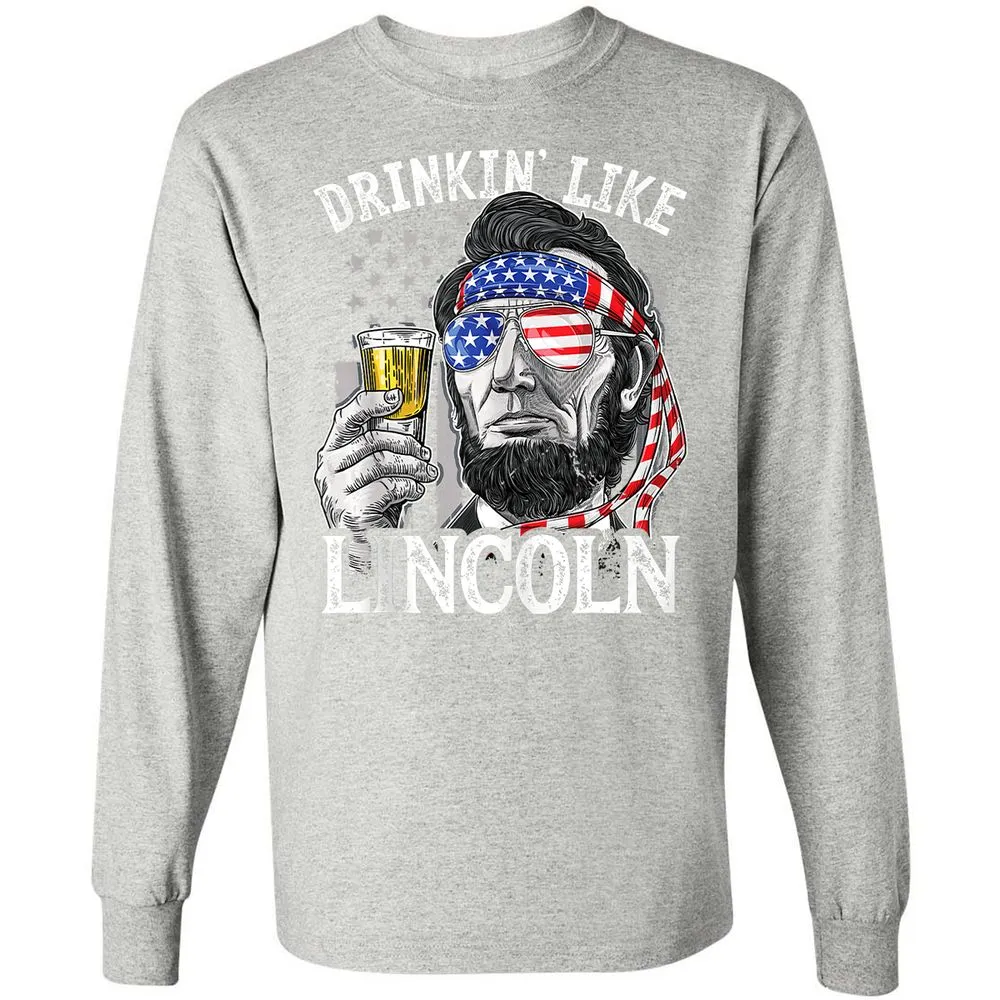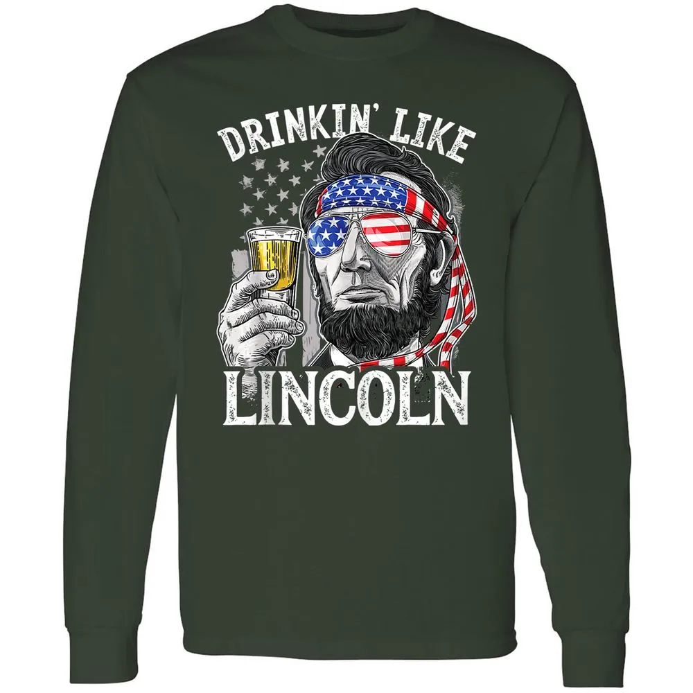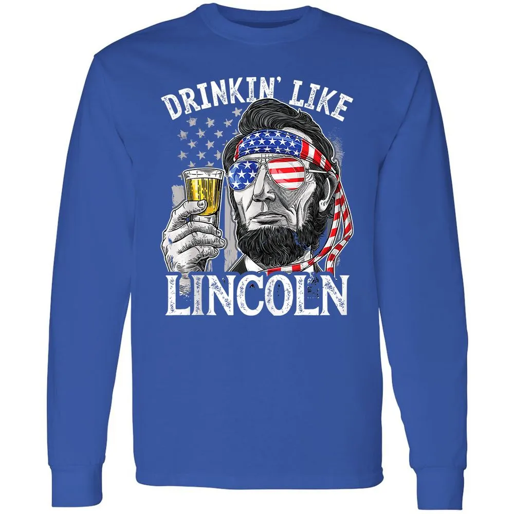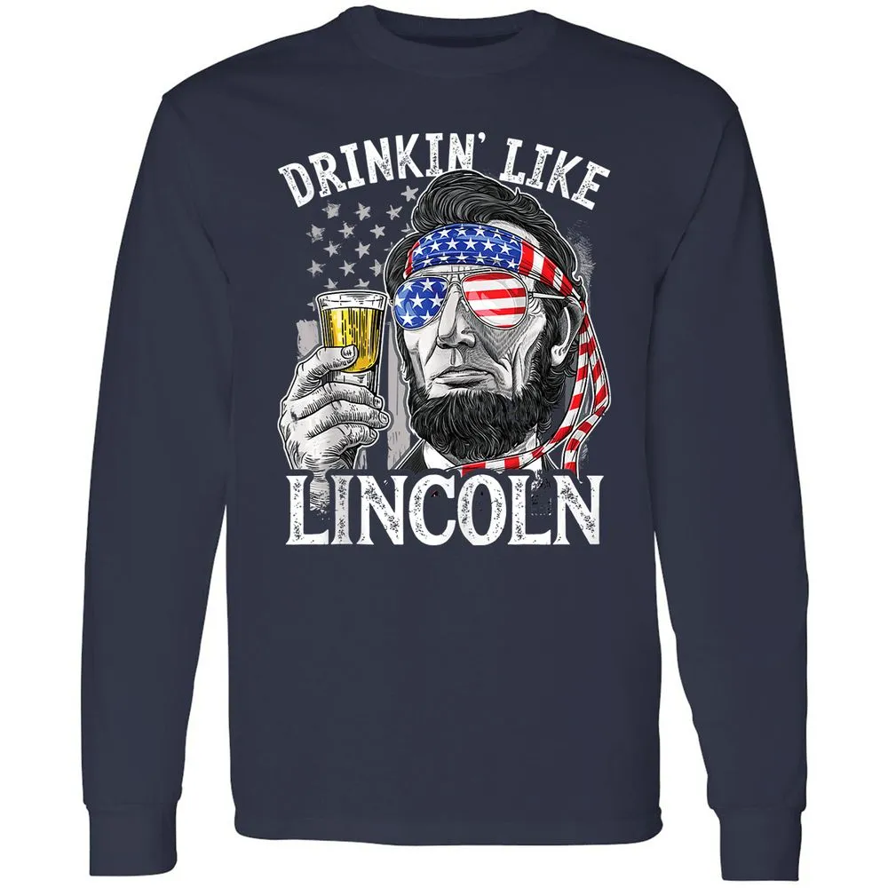 Drinking Like Lincoln 4th of July Men Abraham Merica Flag Long Sleeve T-Shirt