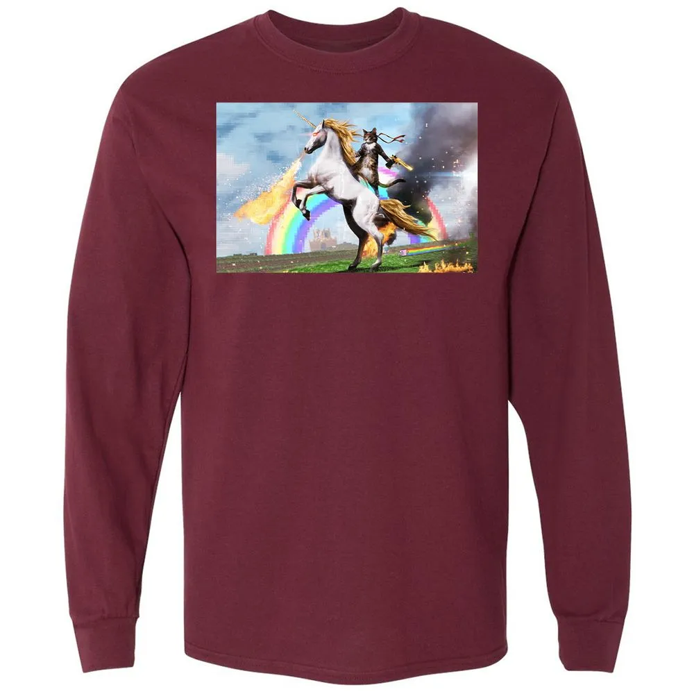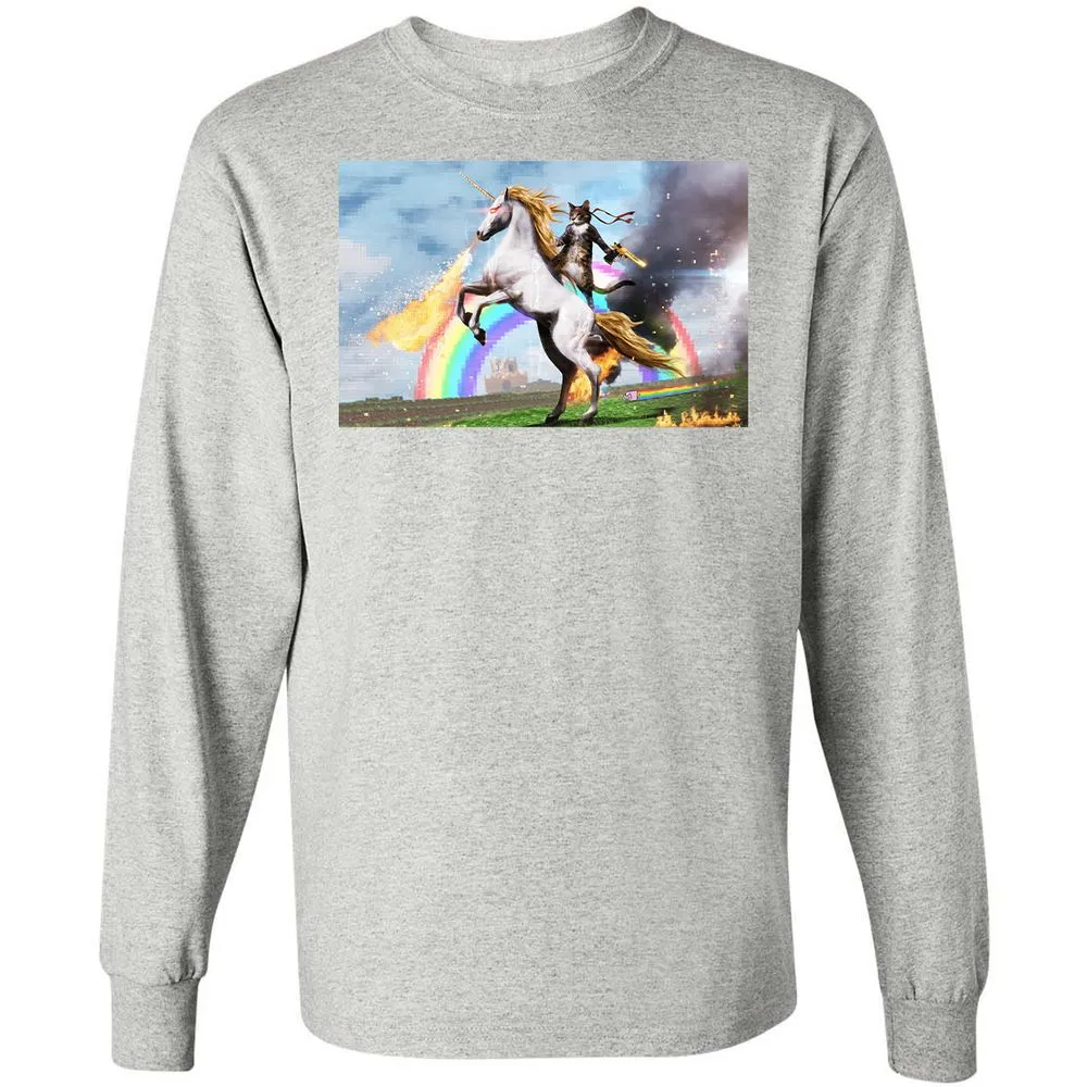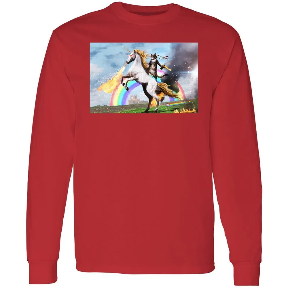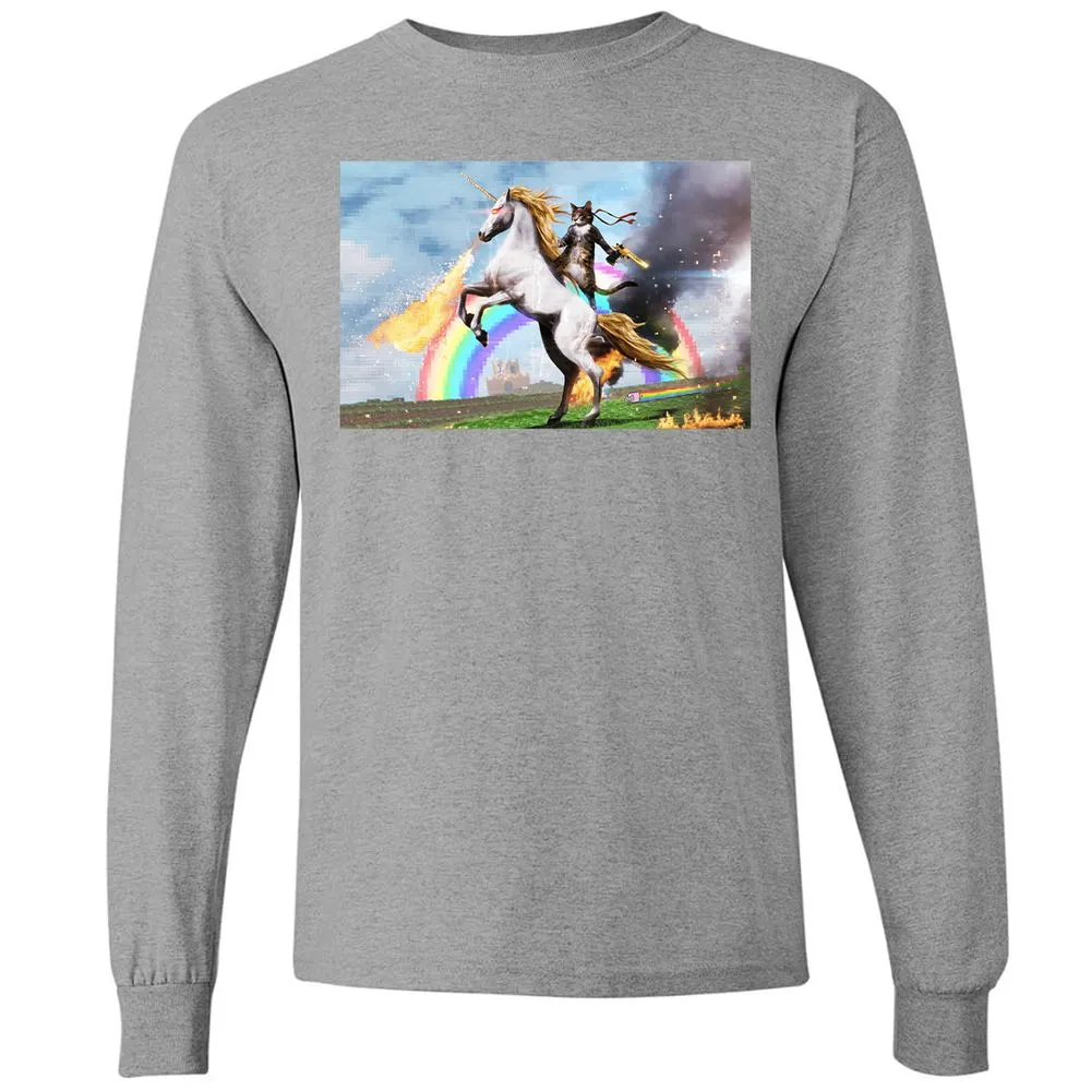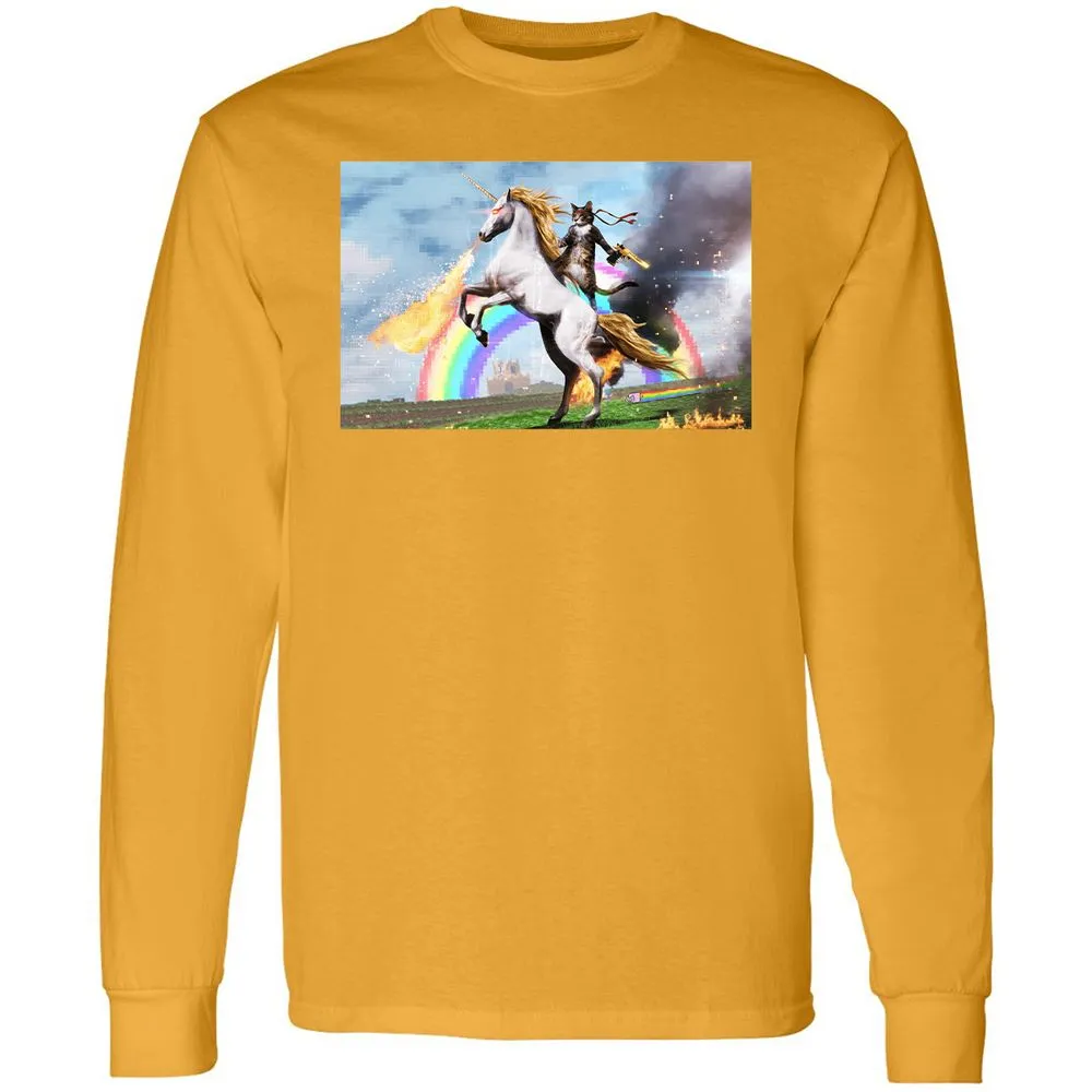 Cat Riding Fire Breathing Unicorn Meme Long Sleeve T-Shirt