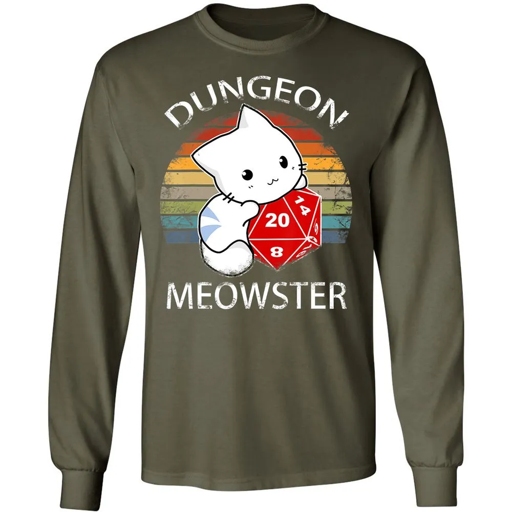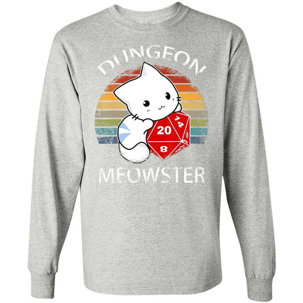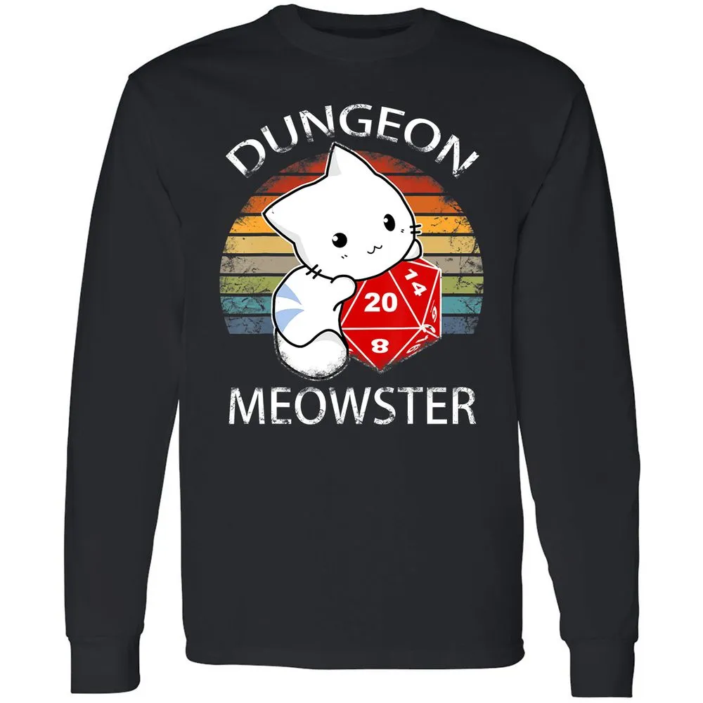Dungeon Meowster Funny Nerdy Gamer Cat D20 RPG Long Sleeve T-Shirt