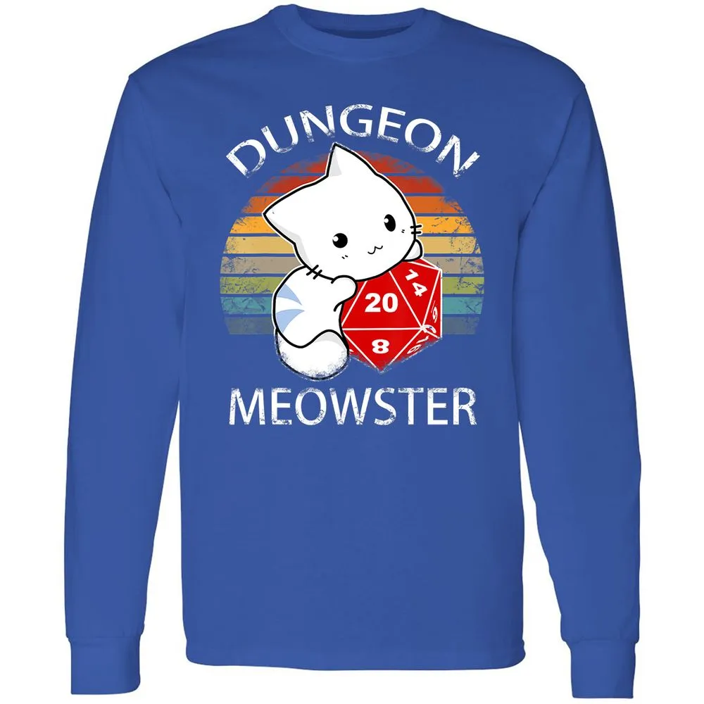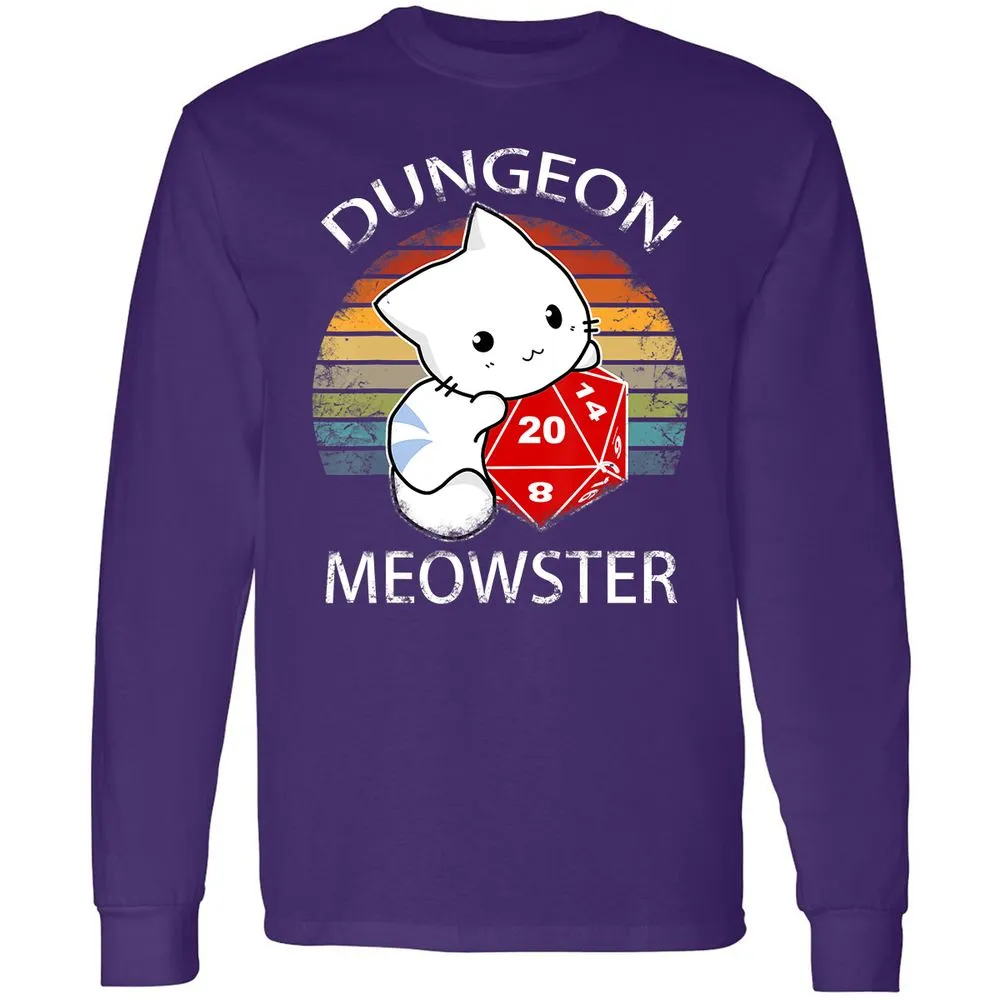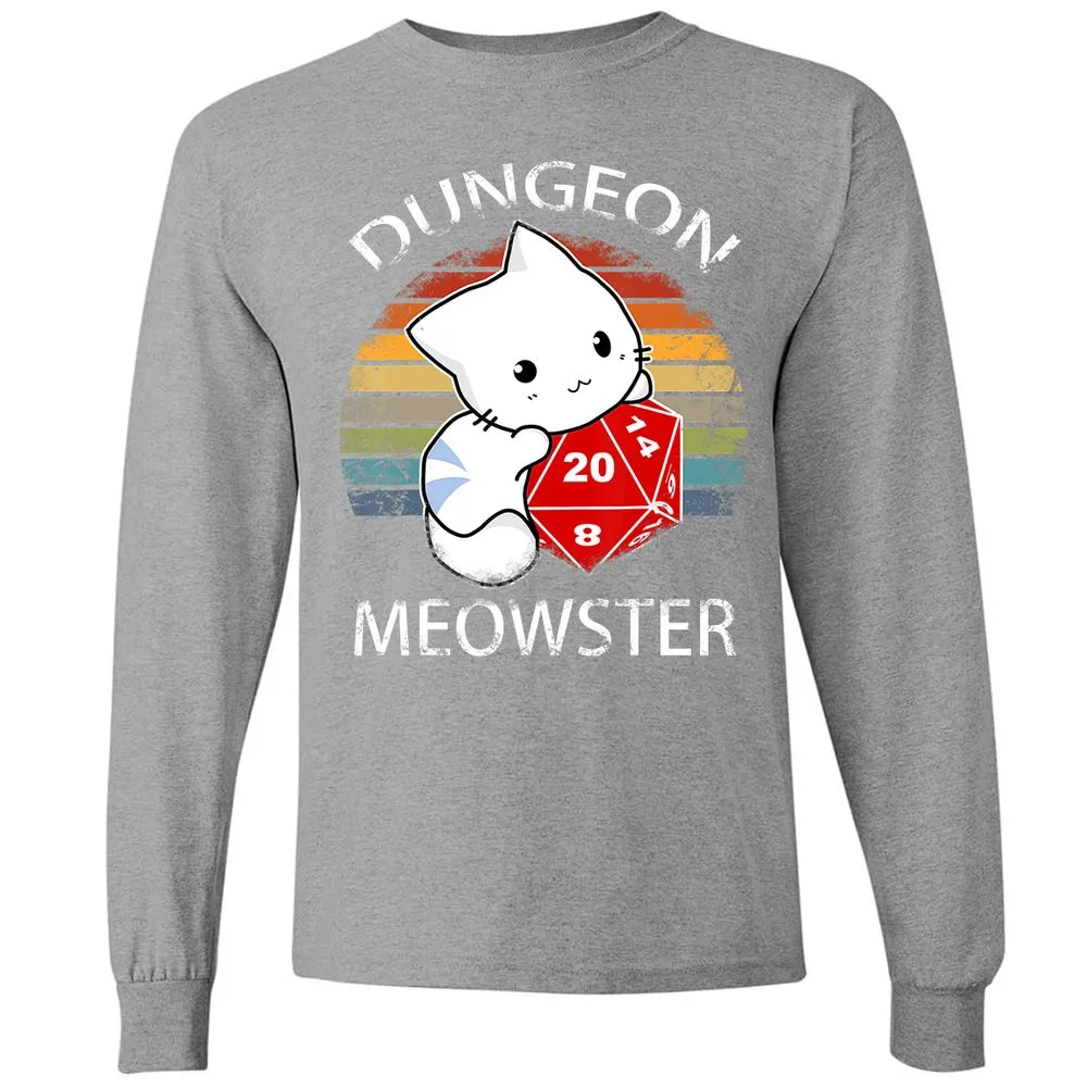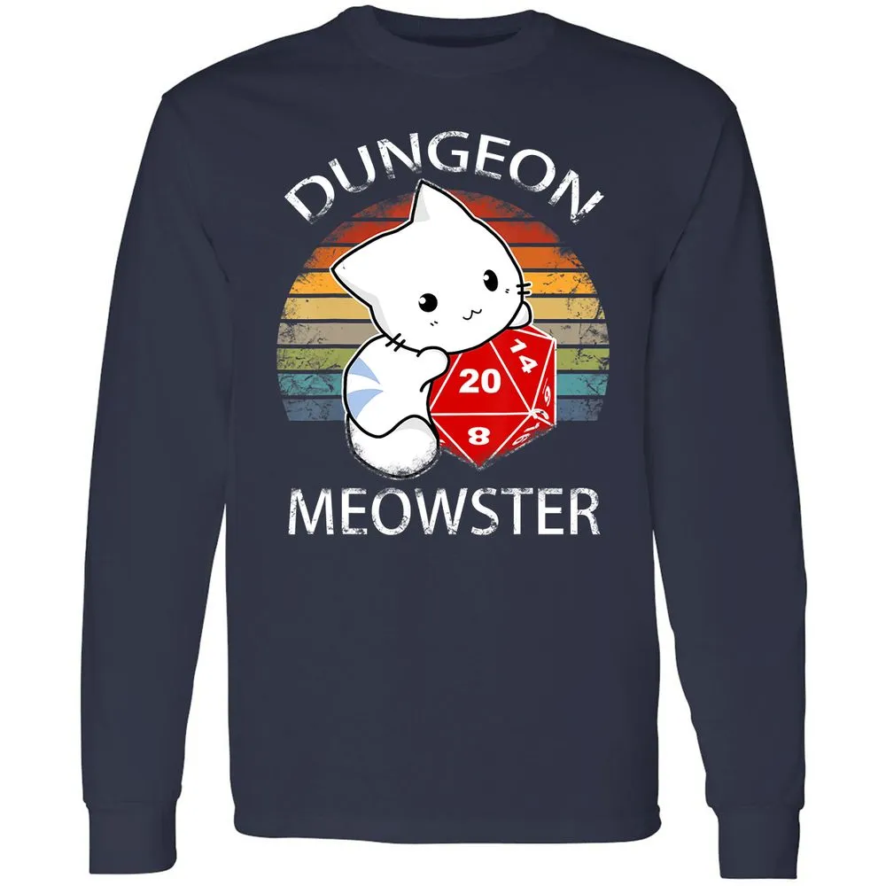 Dungeon Meowster Funny Nerdy Gamer Cat D20 RPG Long Sleeve T-Shirt