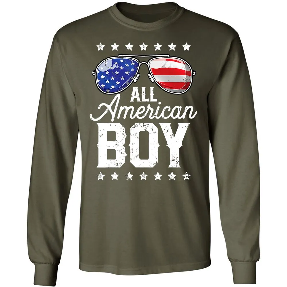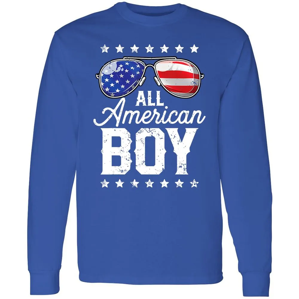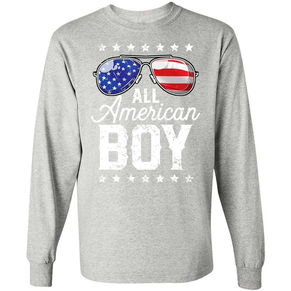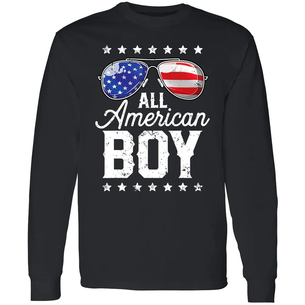 All American Boy 4th of July Boys Kids Sunglasses Long Sleeve T-Shirt