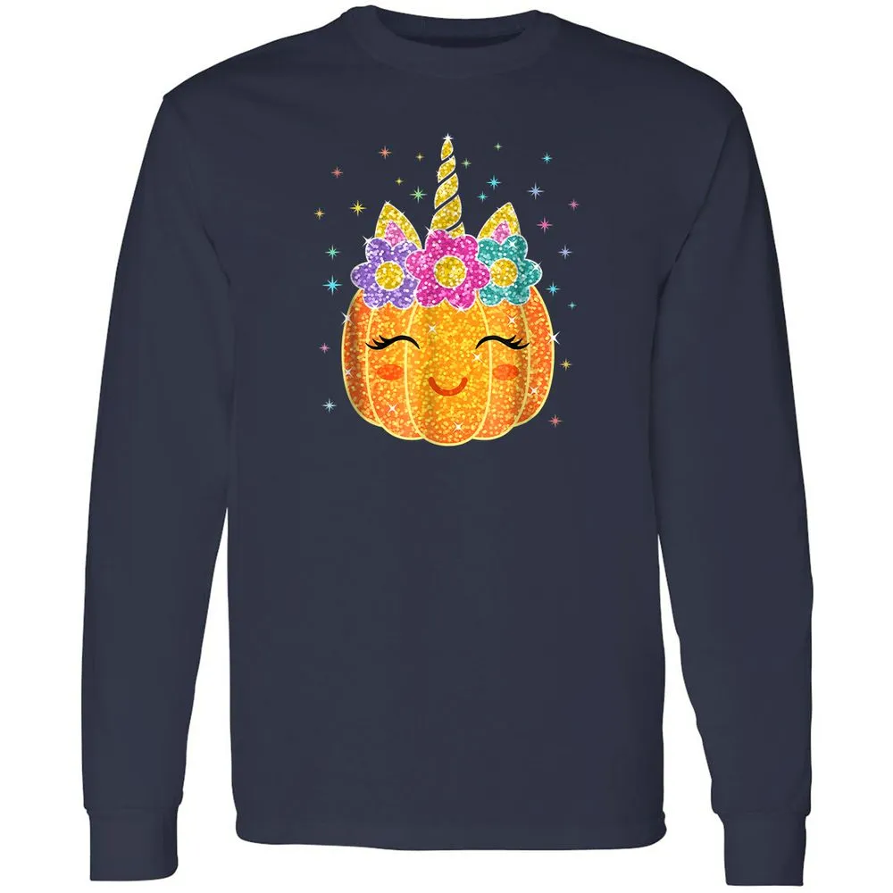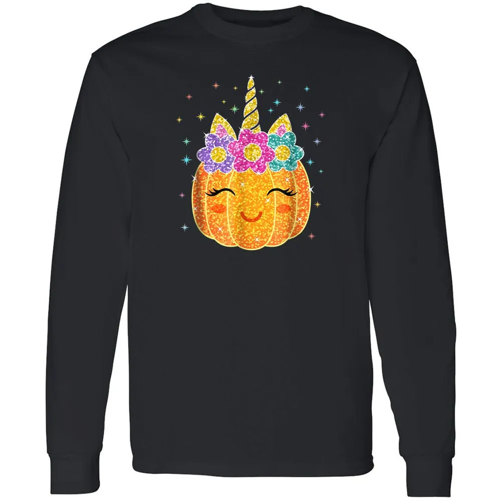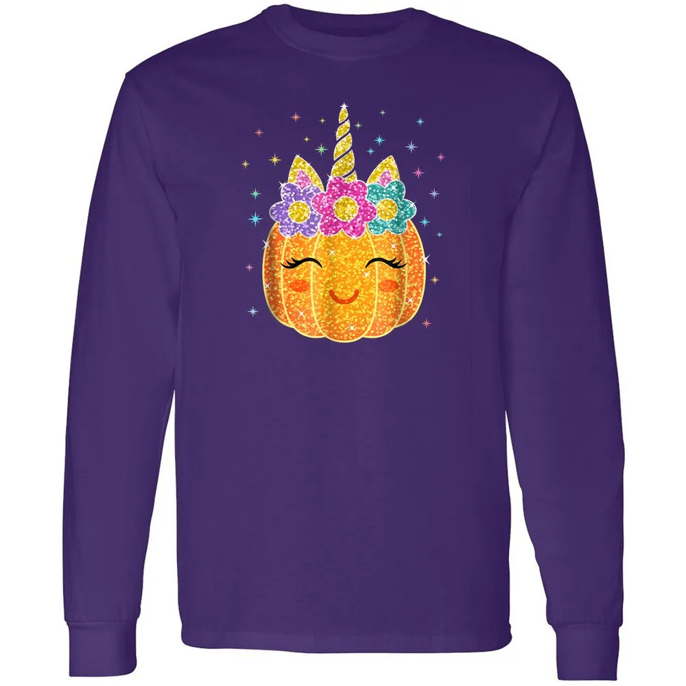 Cute Unicorn Pumpkin Halloween Thanksgiving Long Sleeve T-Shirt