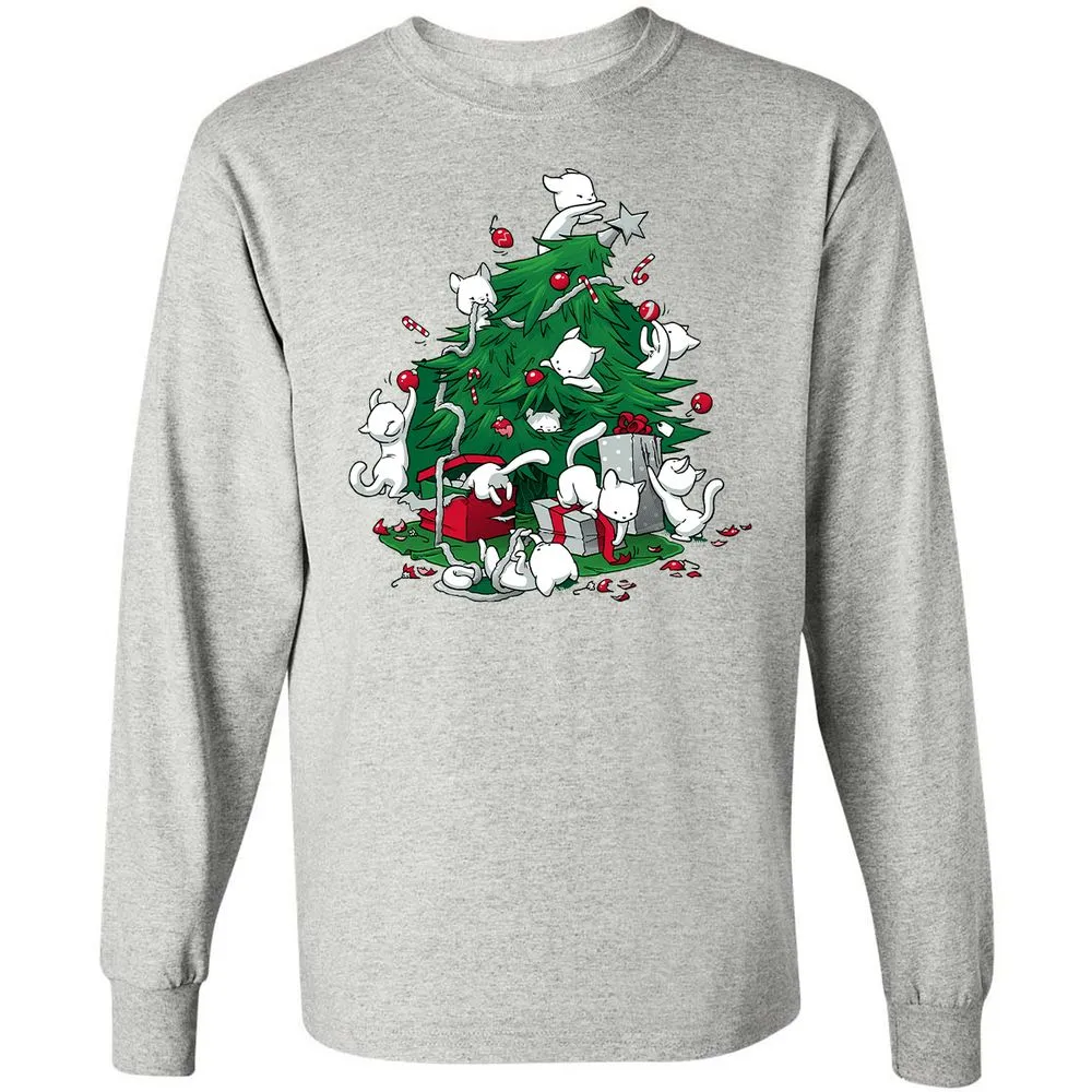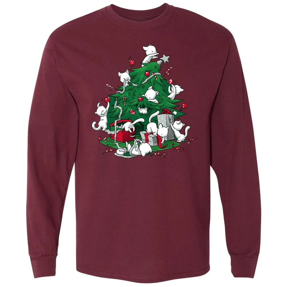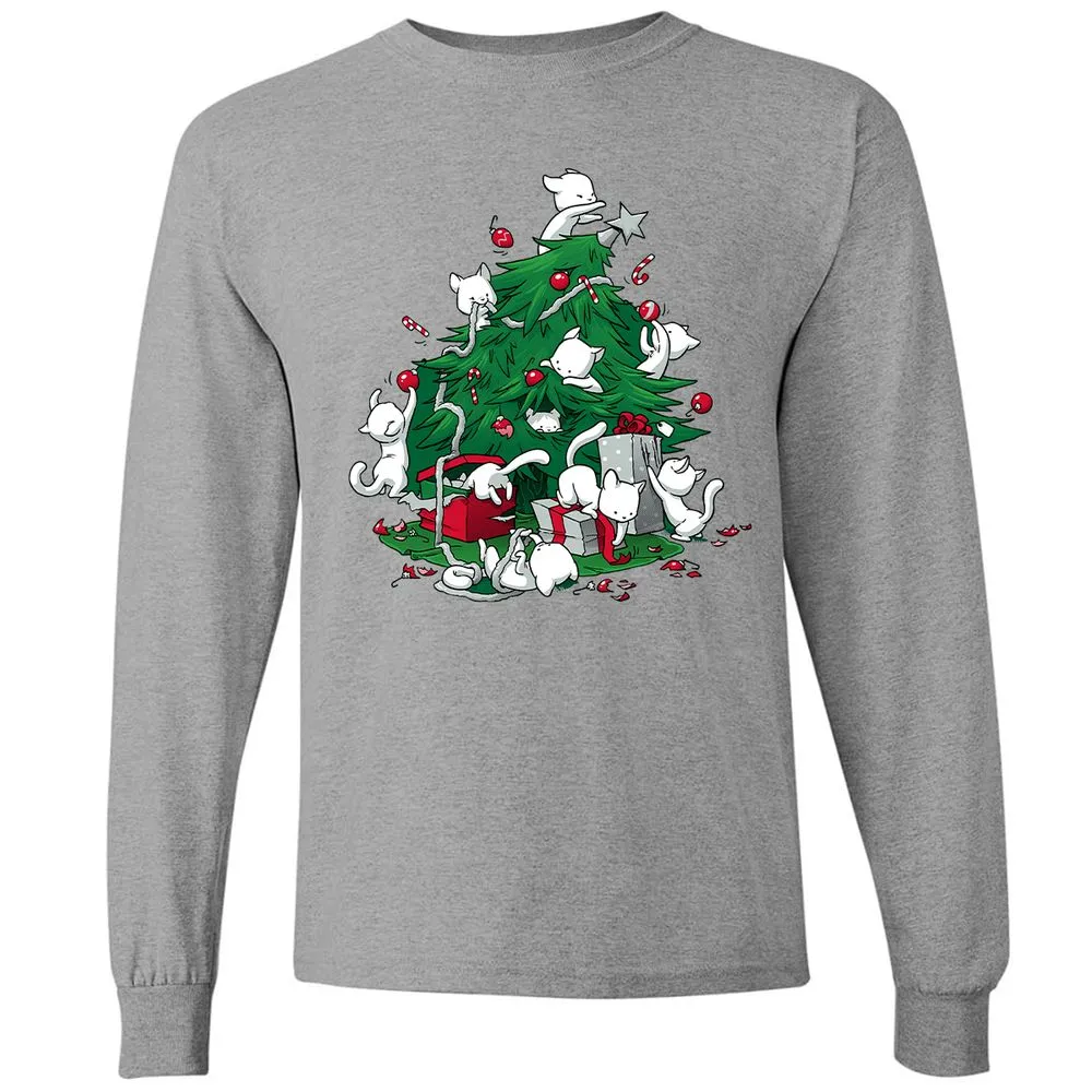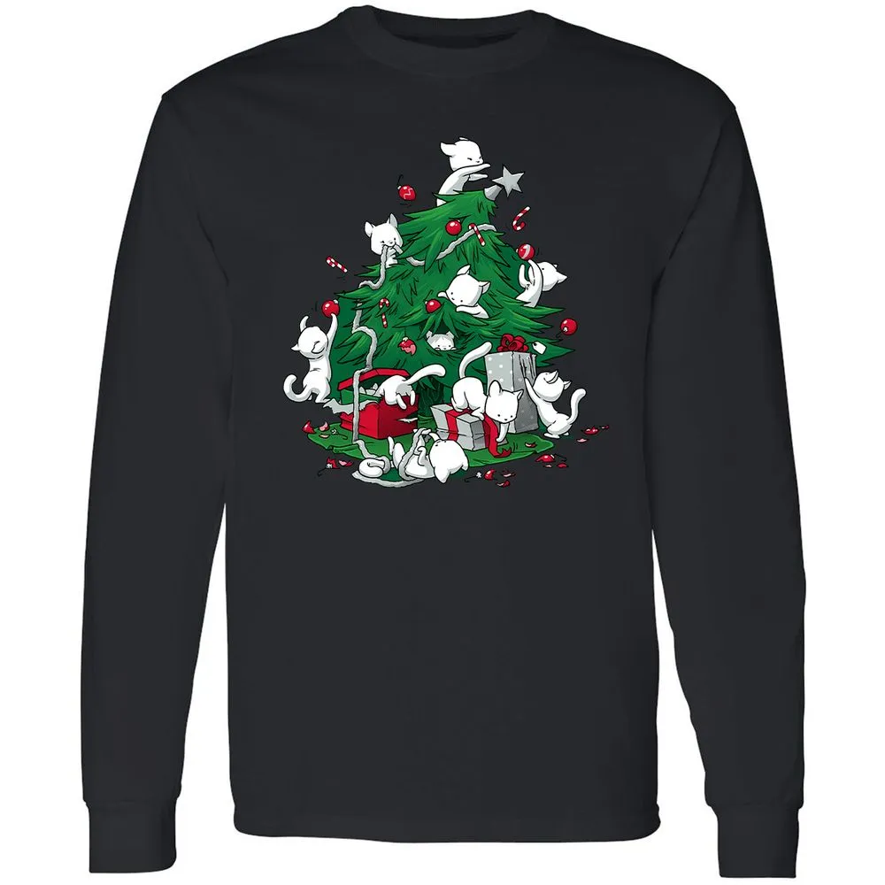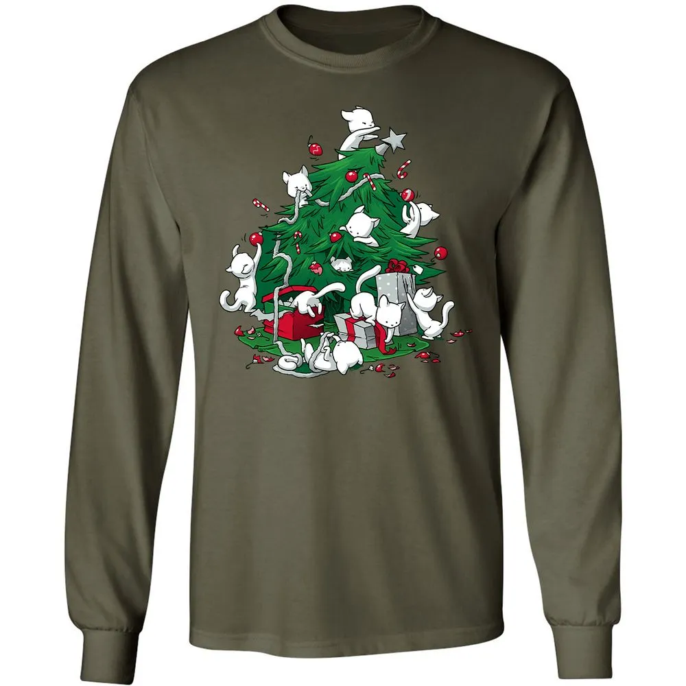 Cat and Christmas Tree Long Sleeve T-Shirt