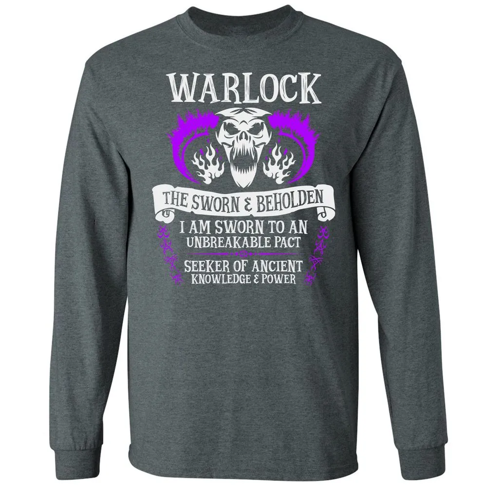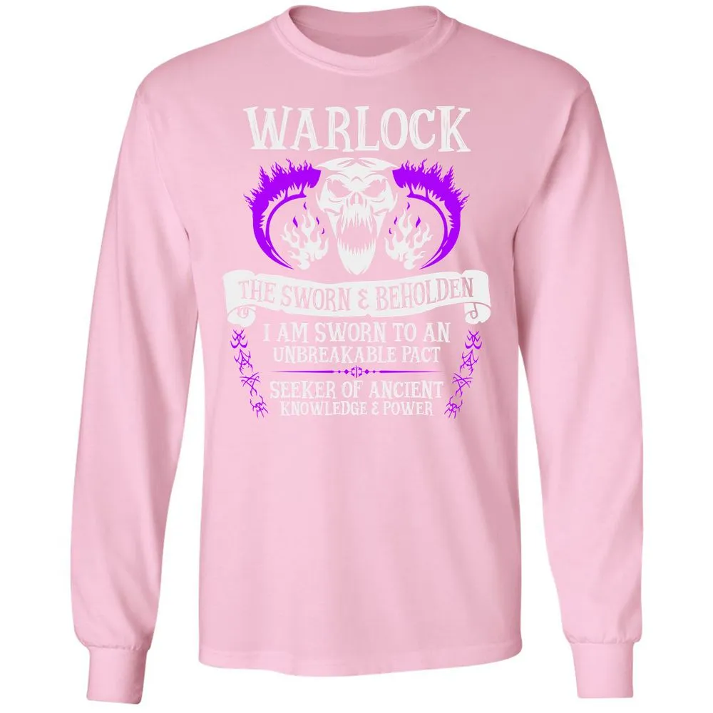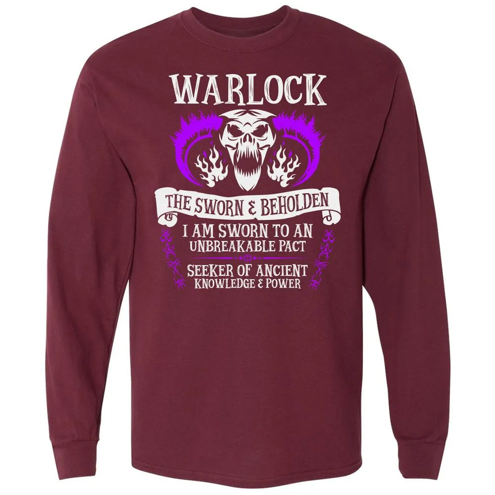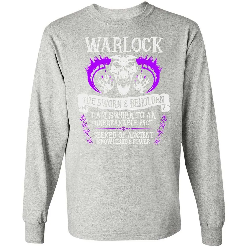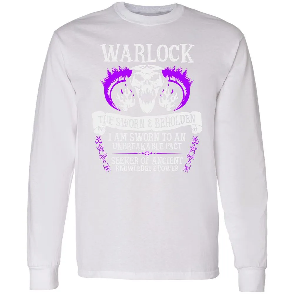 WARLOCK, THE SWORN AND BEHOLDEN (White Text) Long Sleeve T-Shirt
