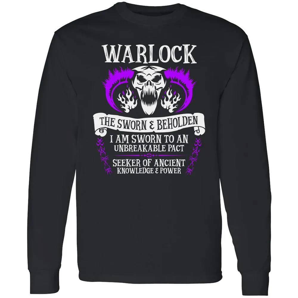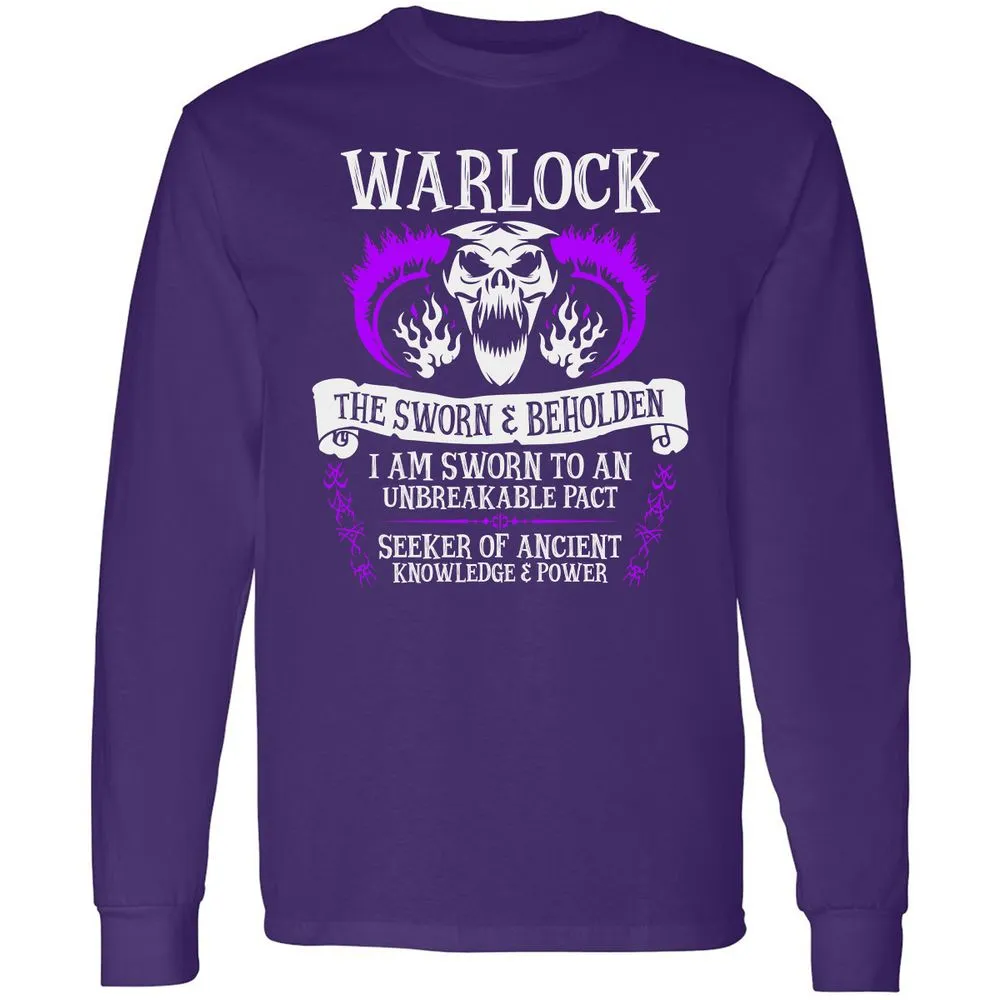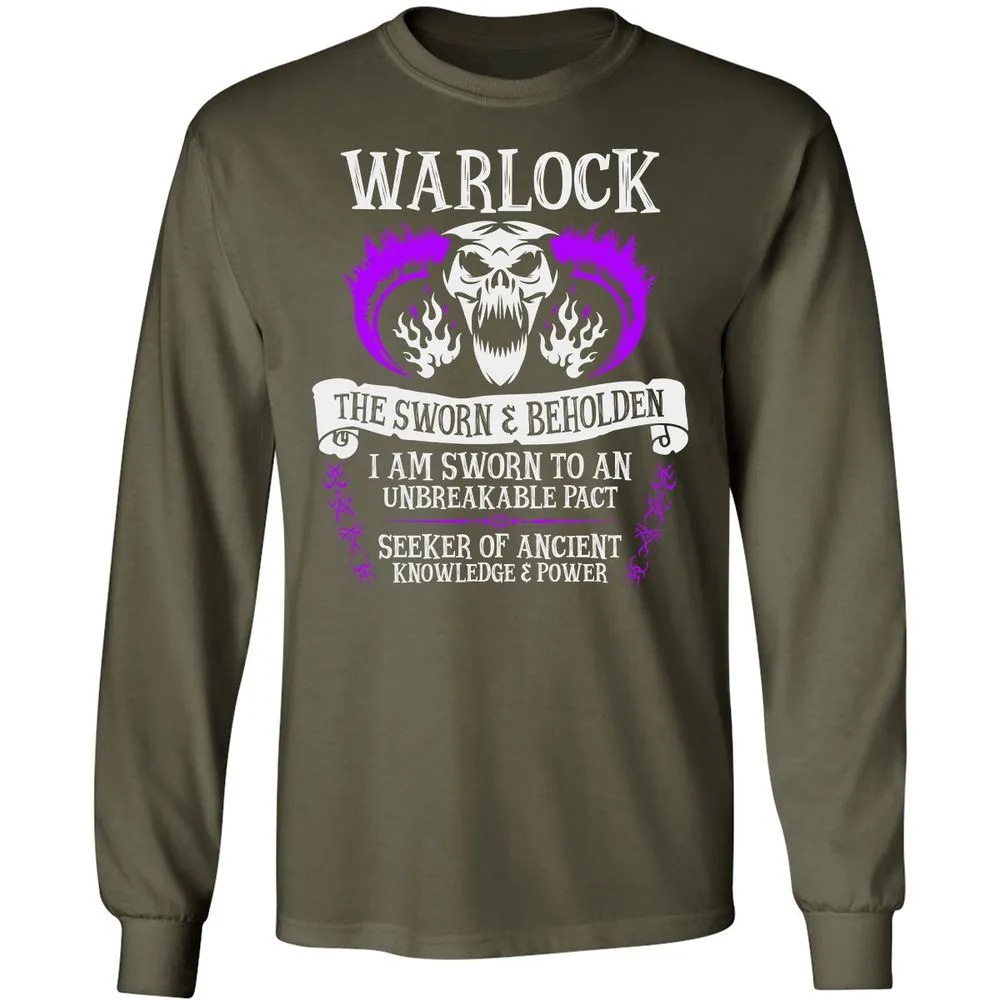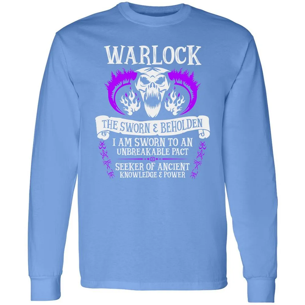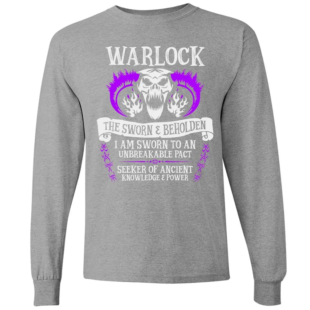 WARLOCK, THE SWORN AND BEHOLDEN (White Text) Long Sleeve T-Shirt
