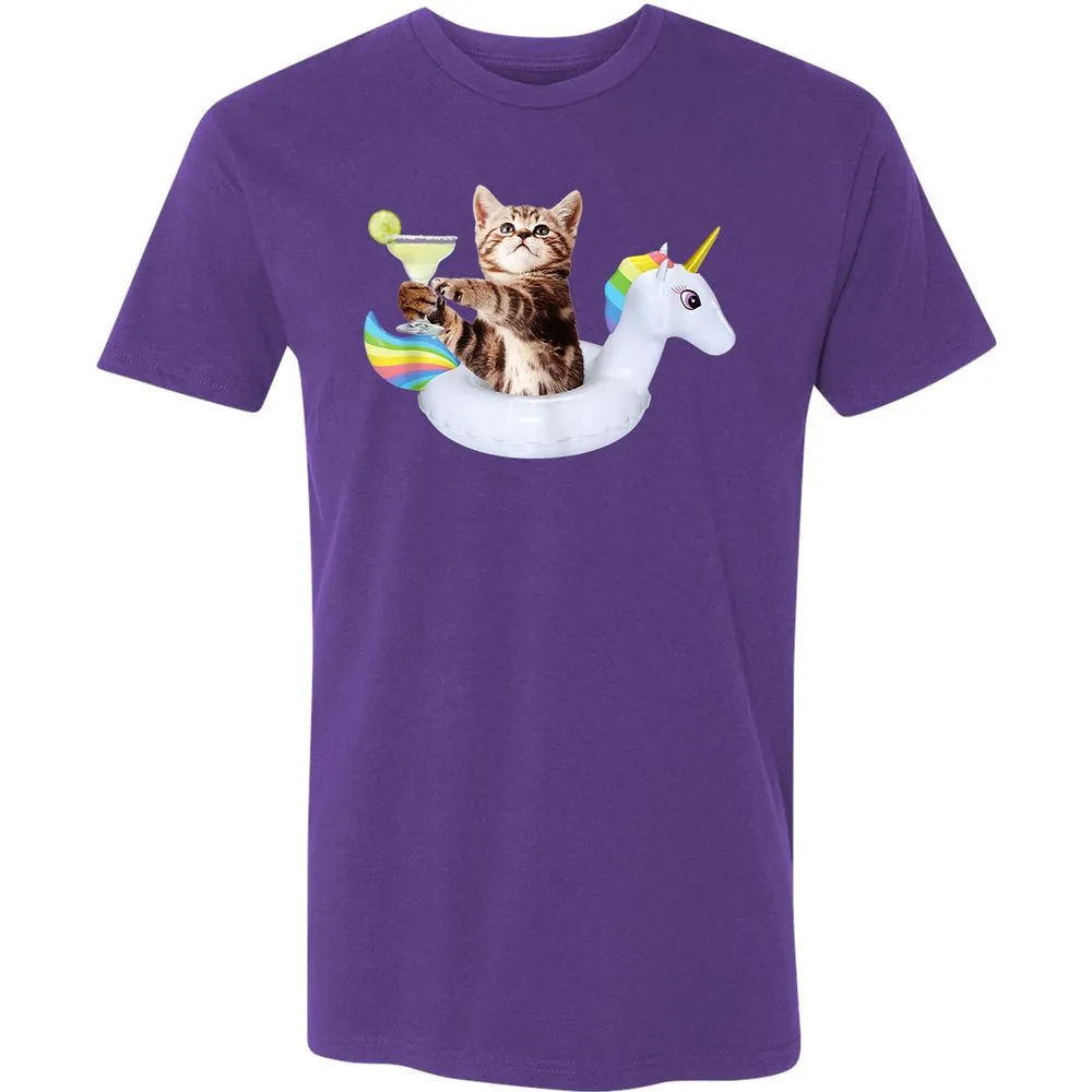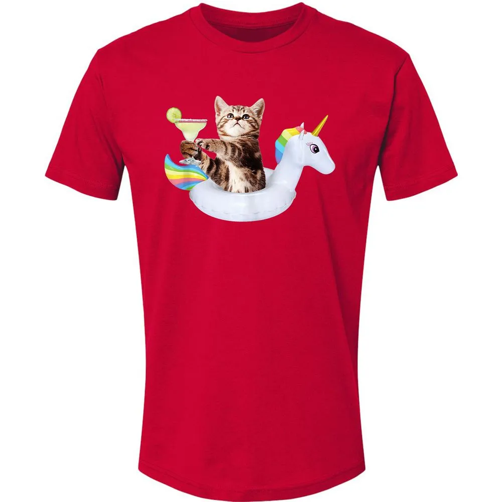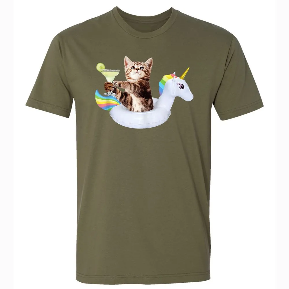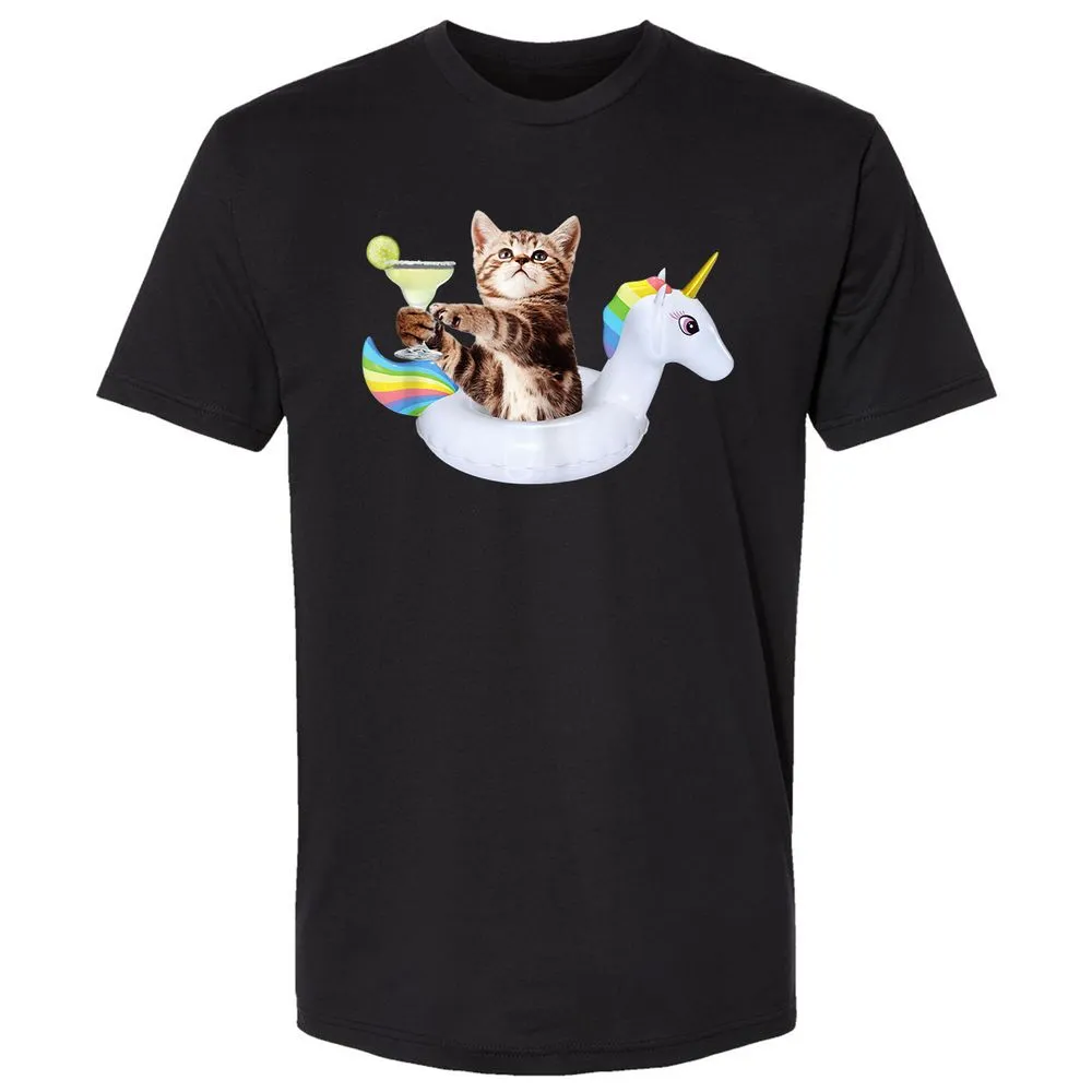 Summer Kitty With Margarita & Unicorn Float Funny Cat Premium Unisex T-Shirt