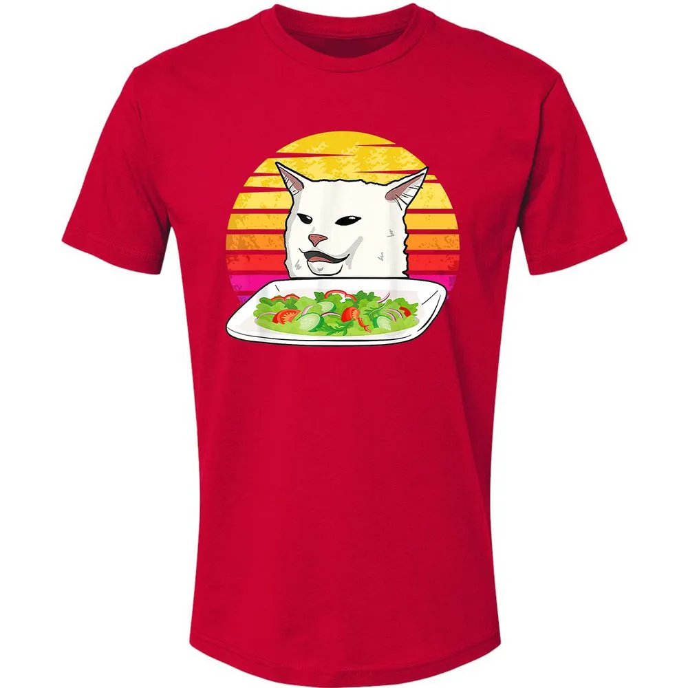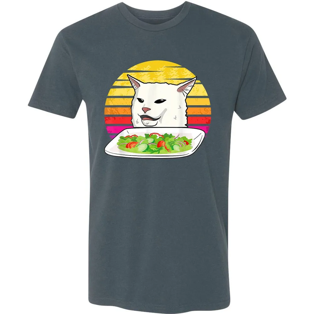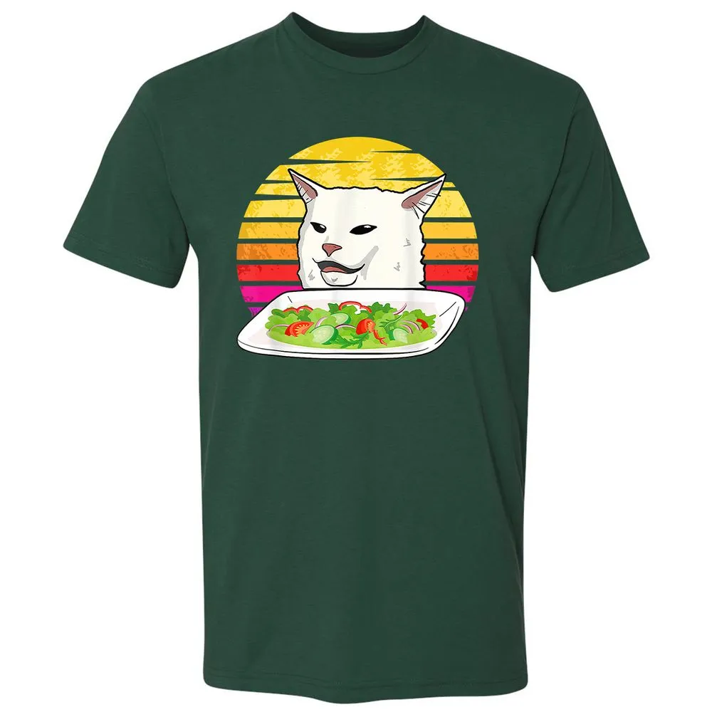Angry women yelling at confused cat at dinner table meme Premium Unisex T-Shirt