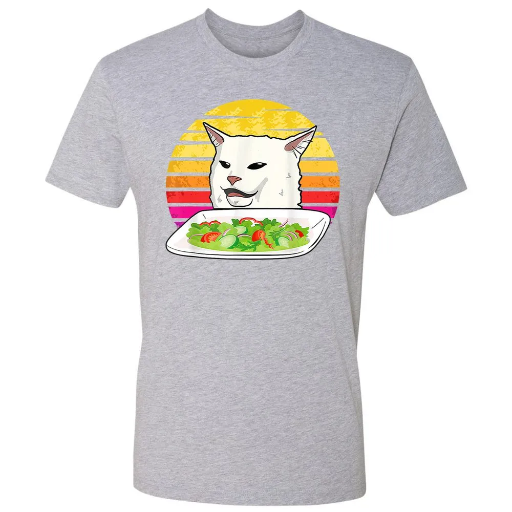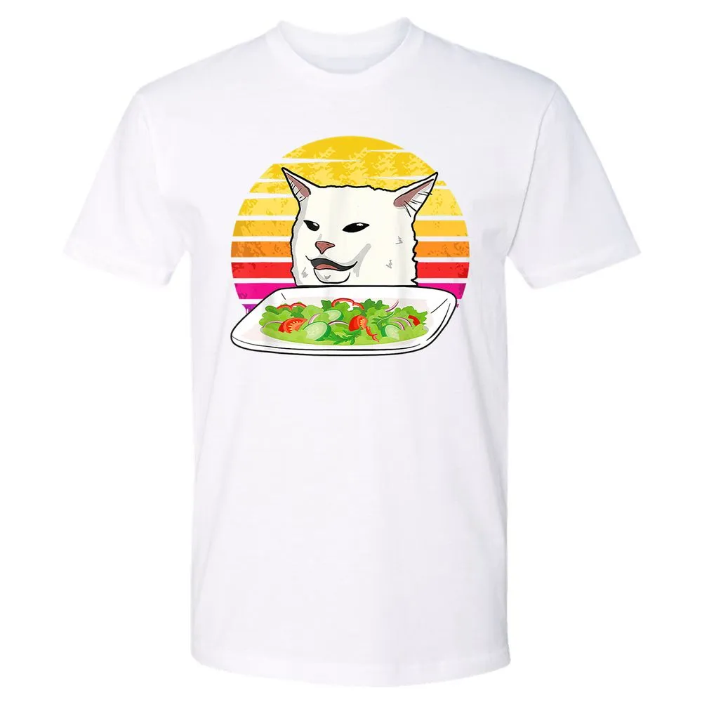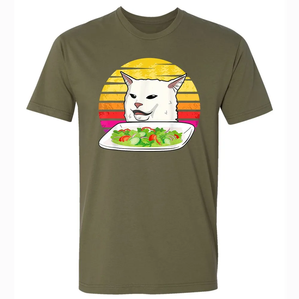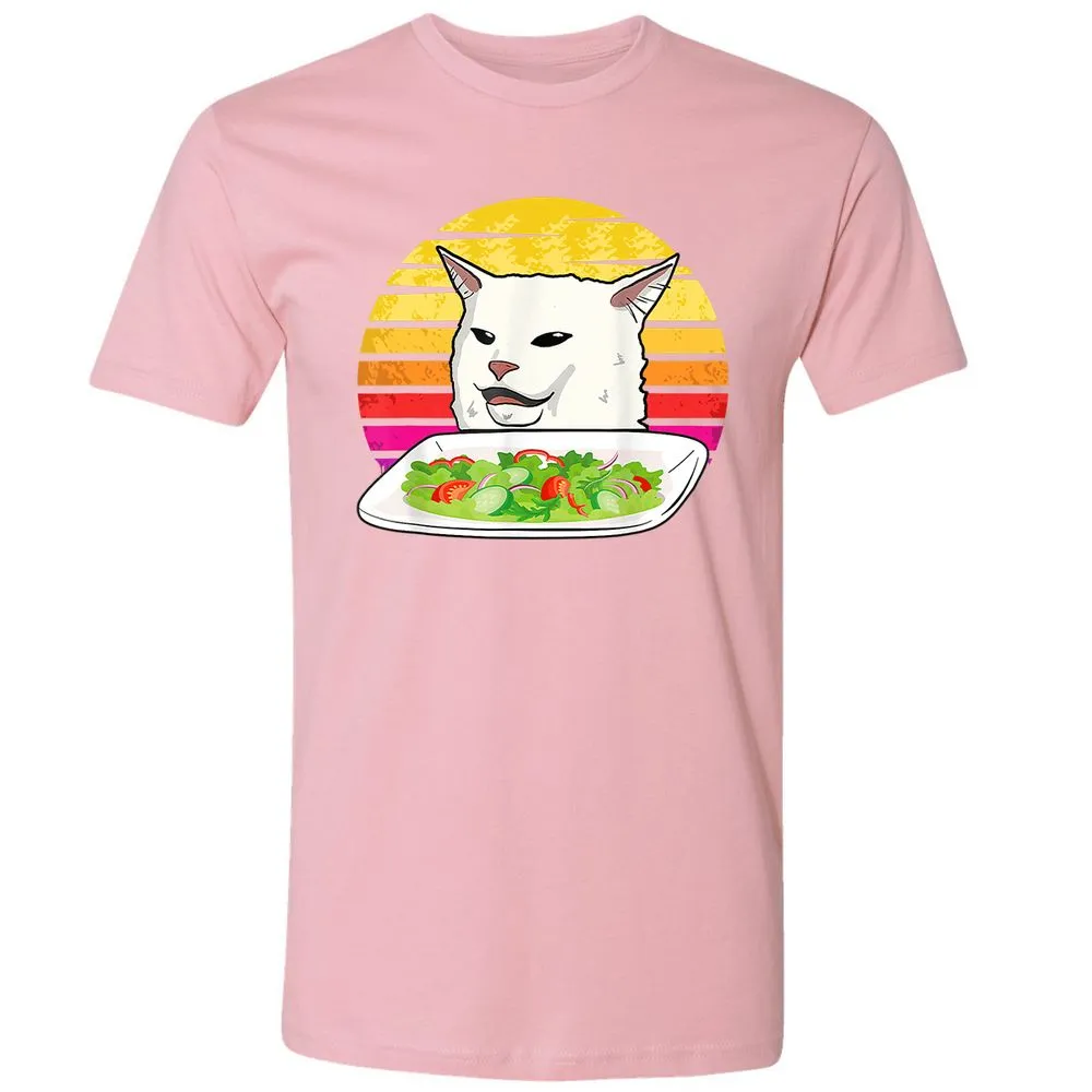 Angry women yelling at confused cat at dinner table meme Premium Unisex T-Shirt