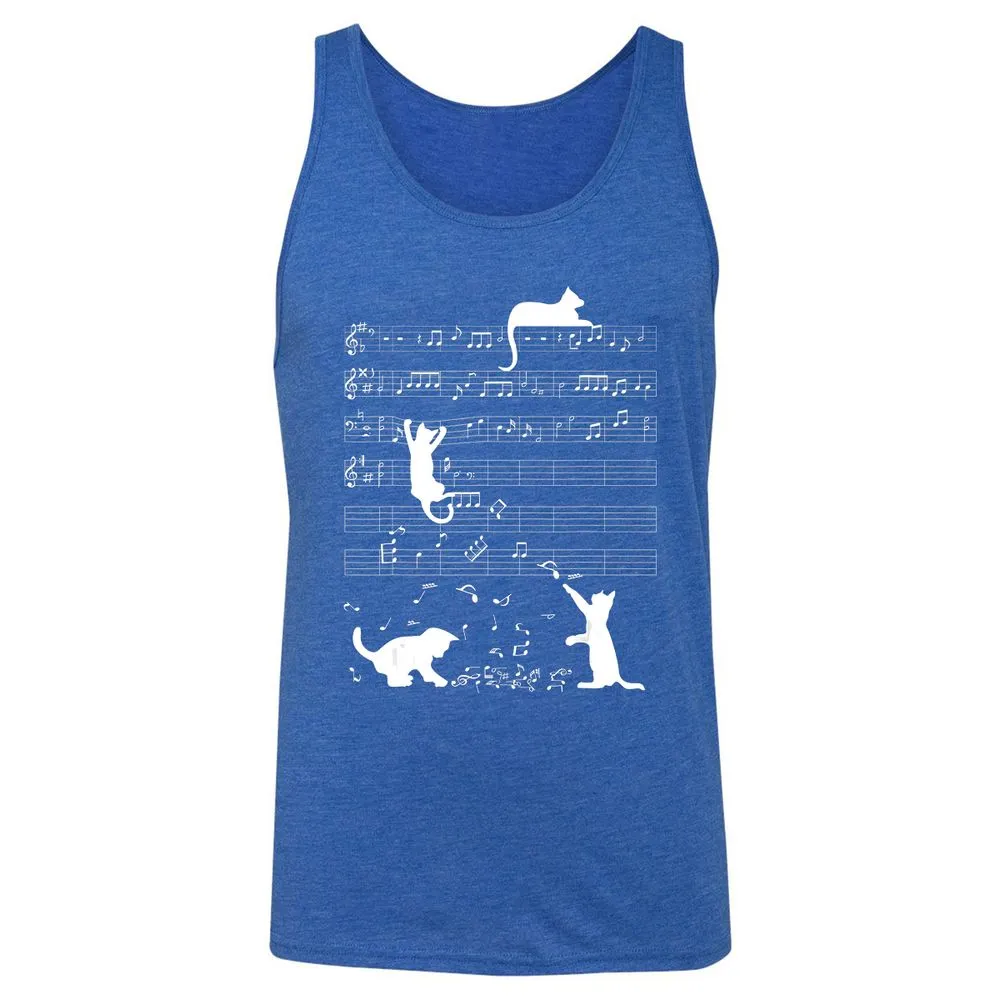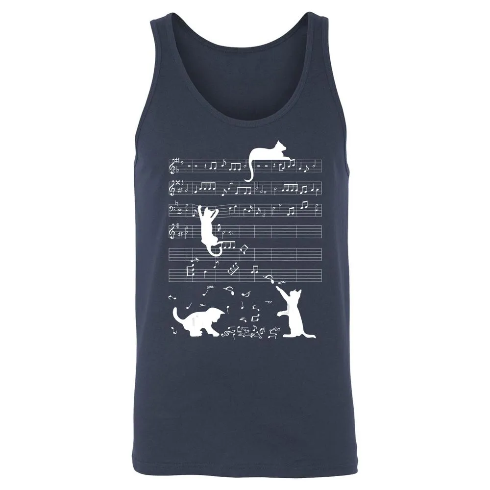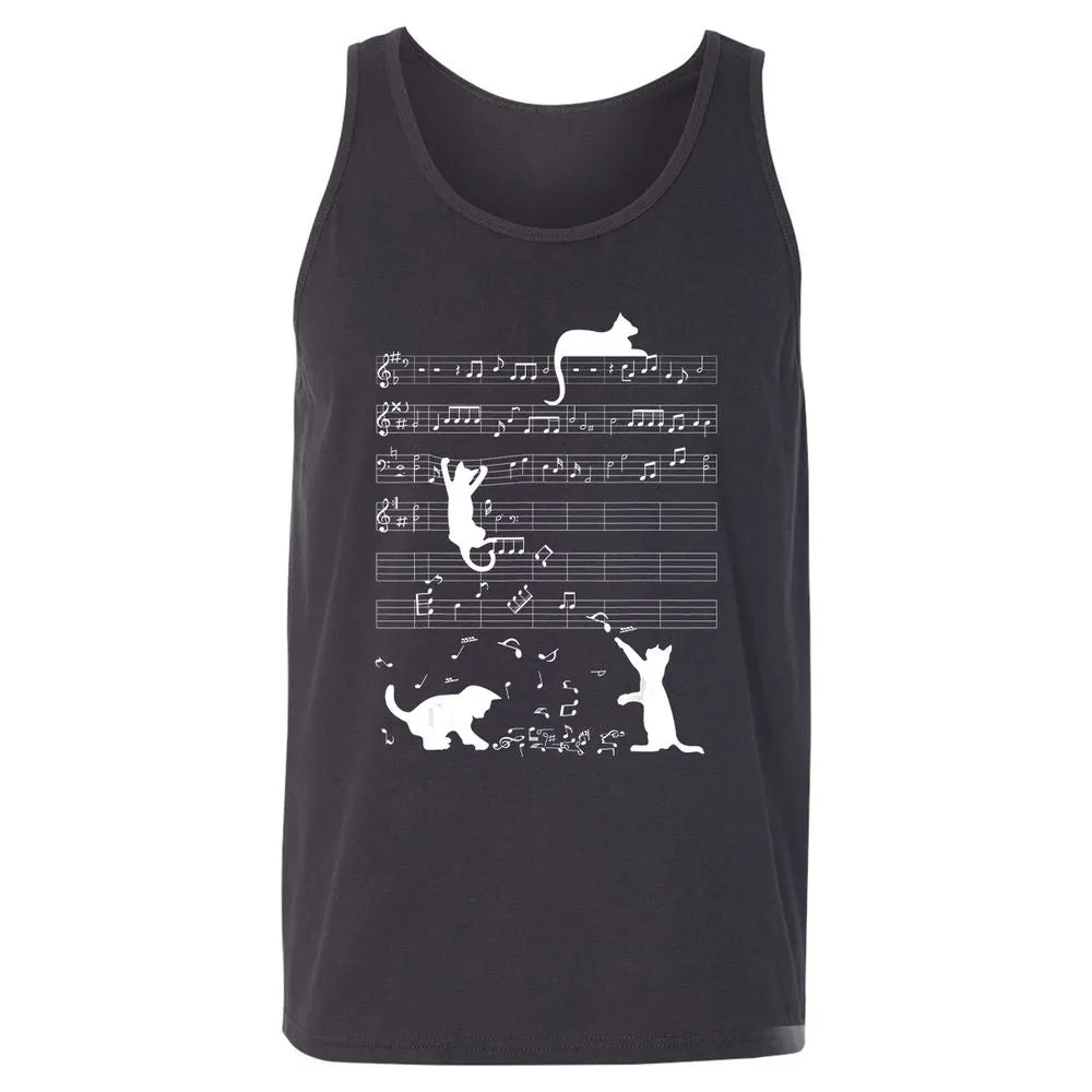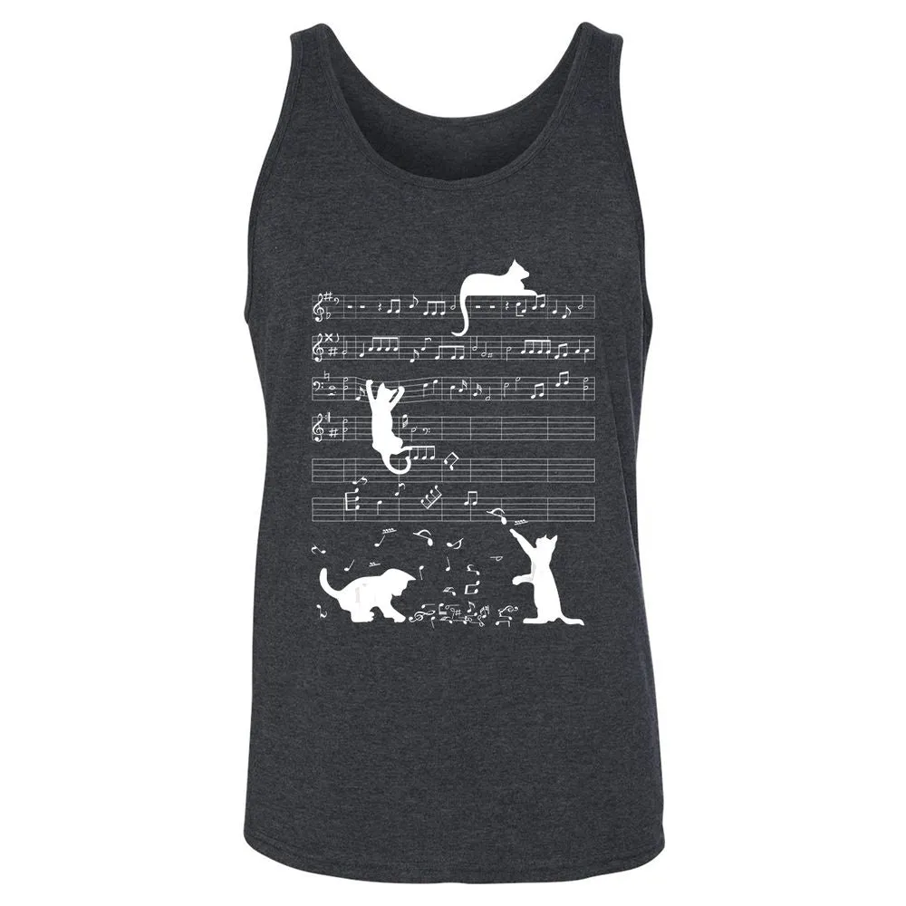 Cute Cat Kitty Playing Music Clef Piano Musician Art Unisex Jersey Tank