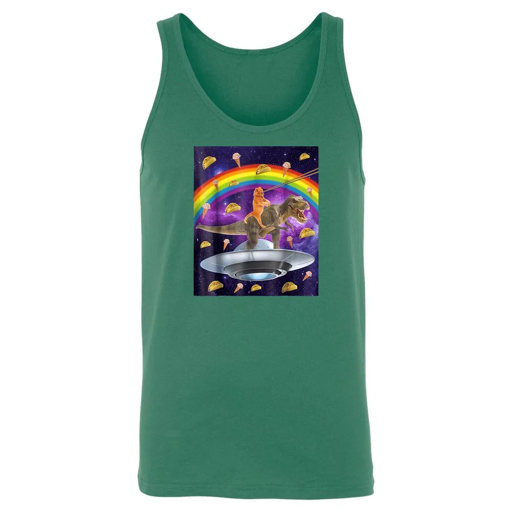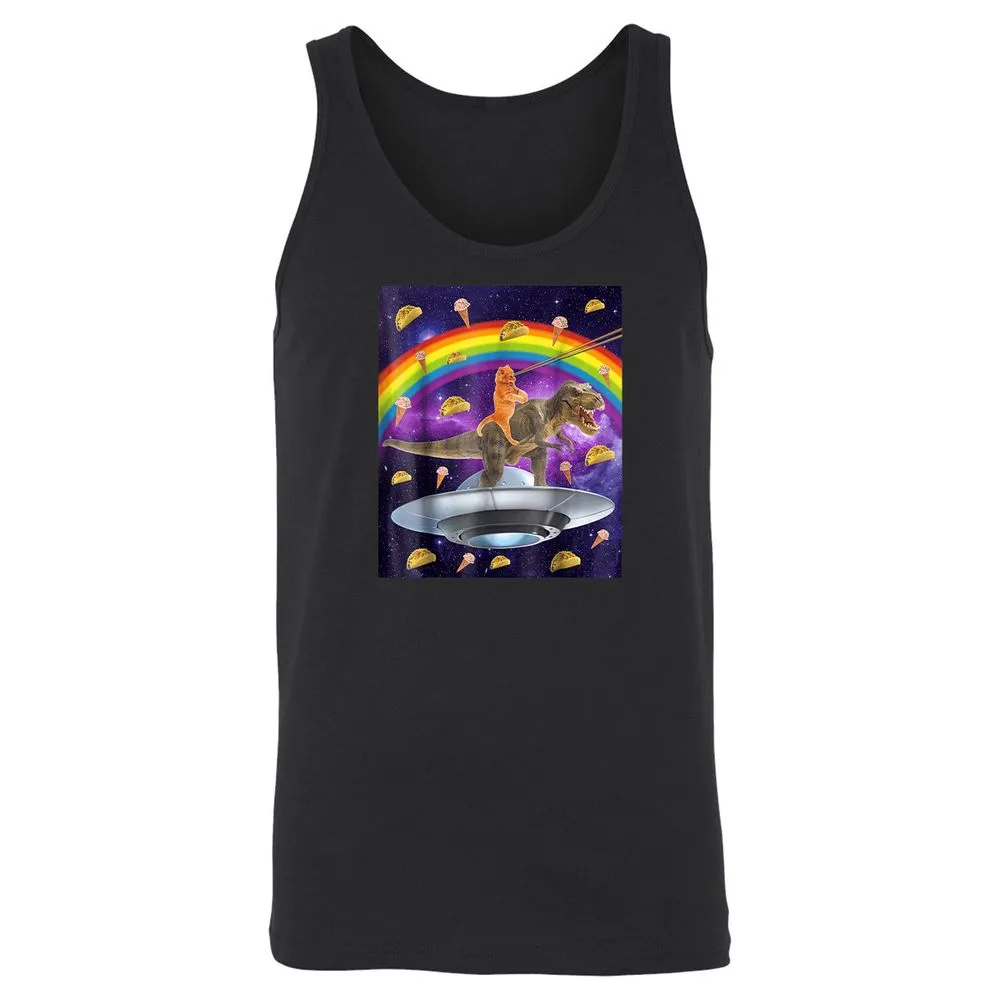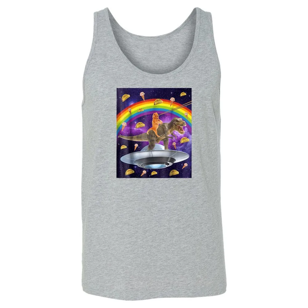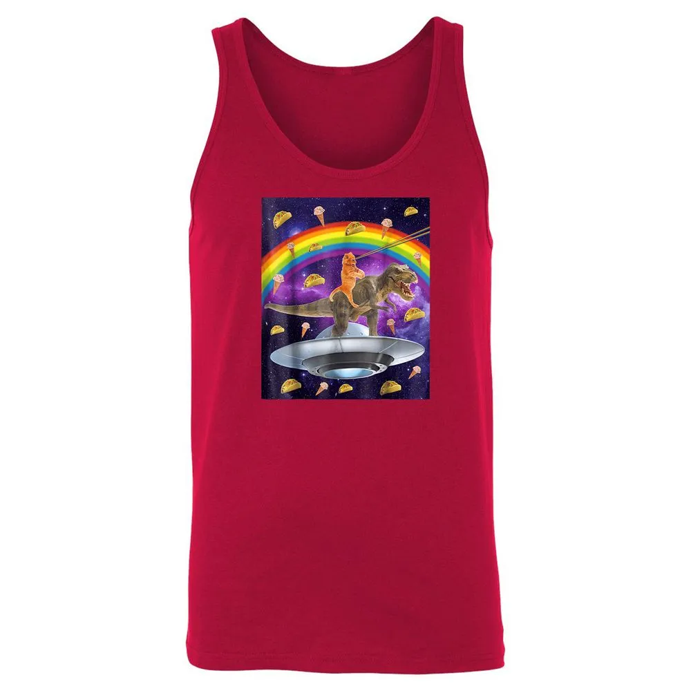 Taco Kitty Rainbow Laser Eye T Rex Riding Space Ca Unisex Jersey Tank