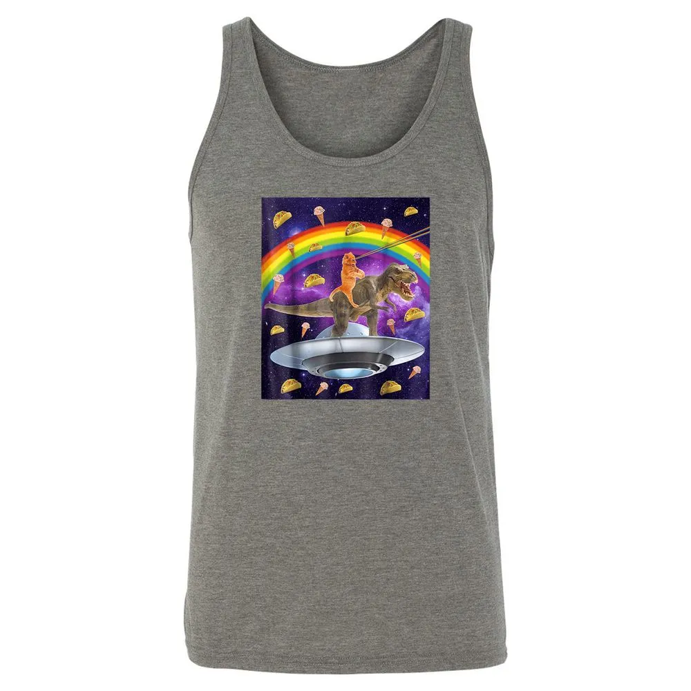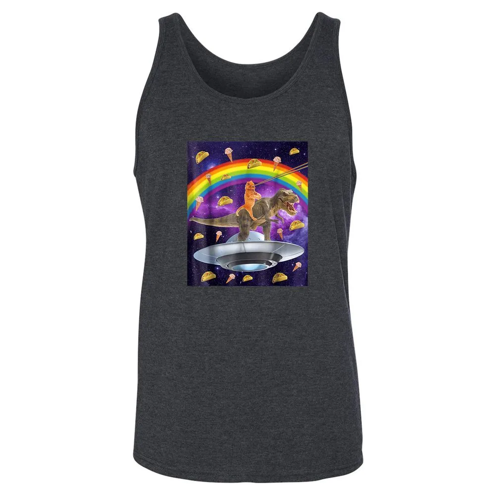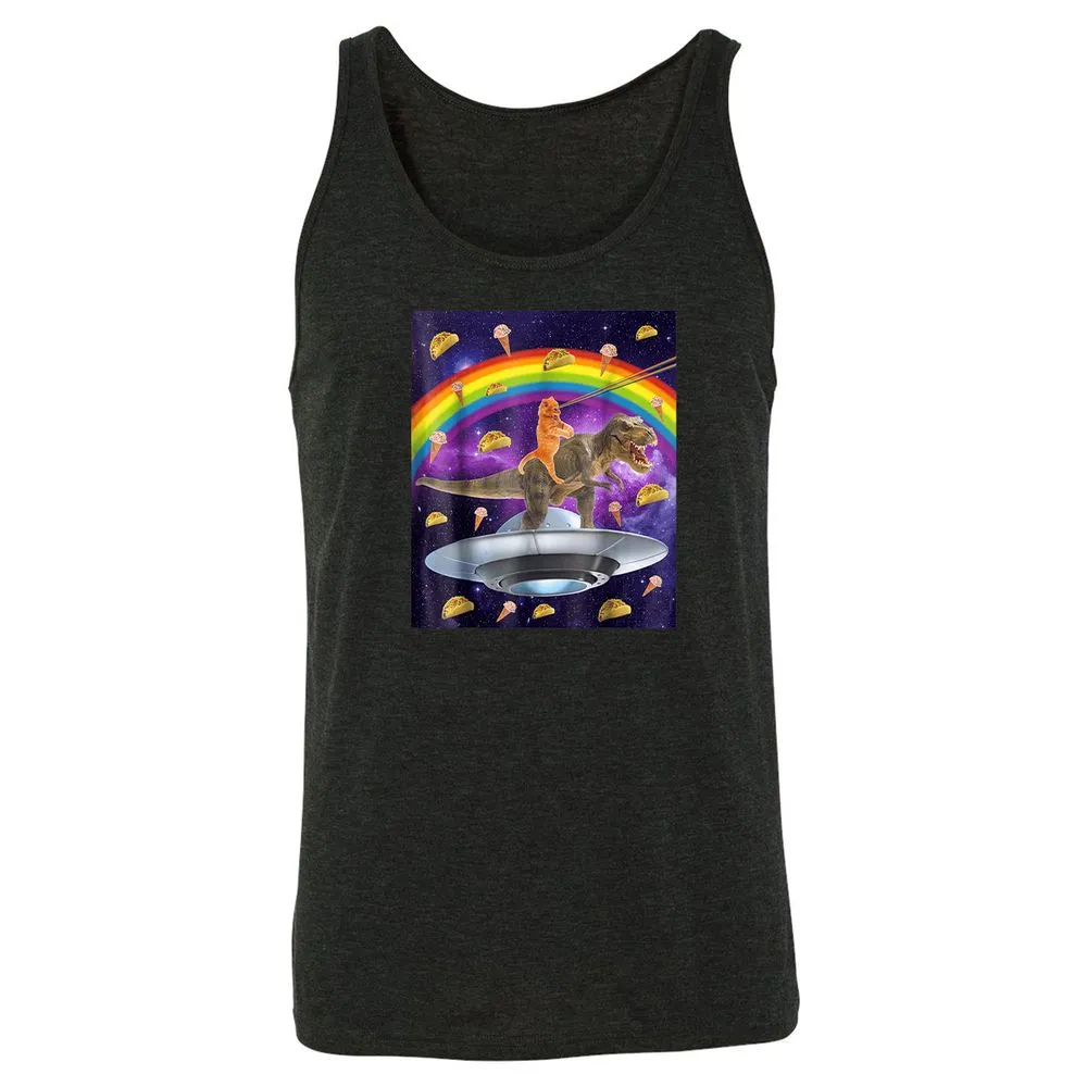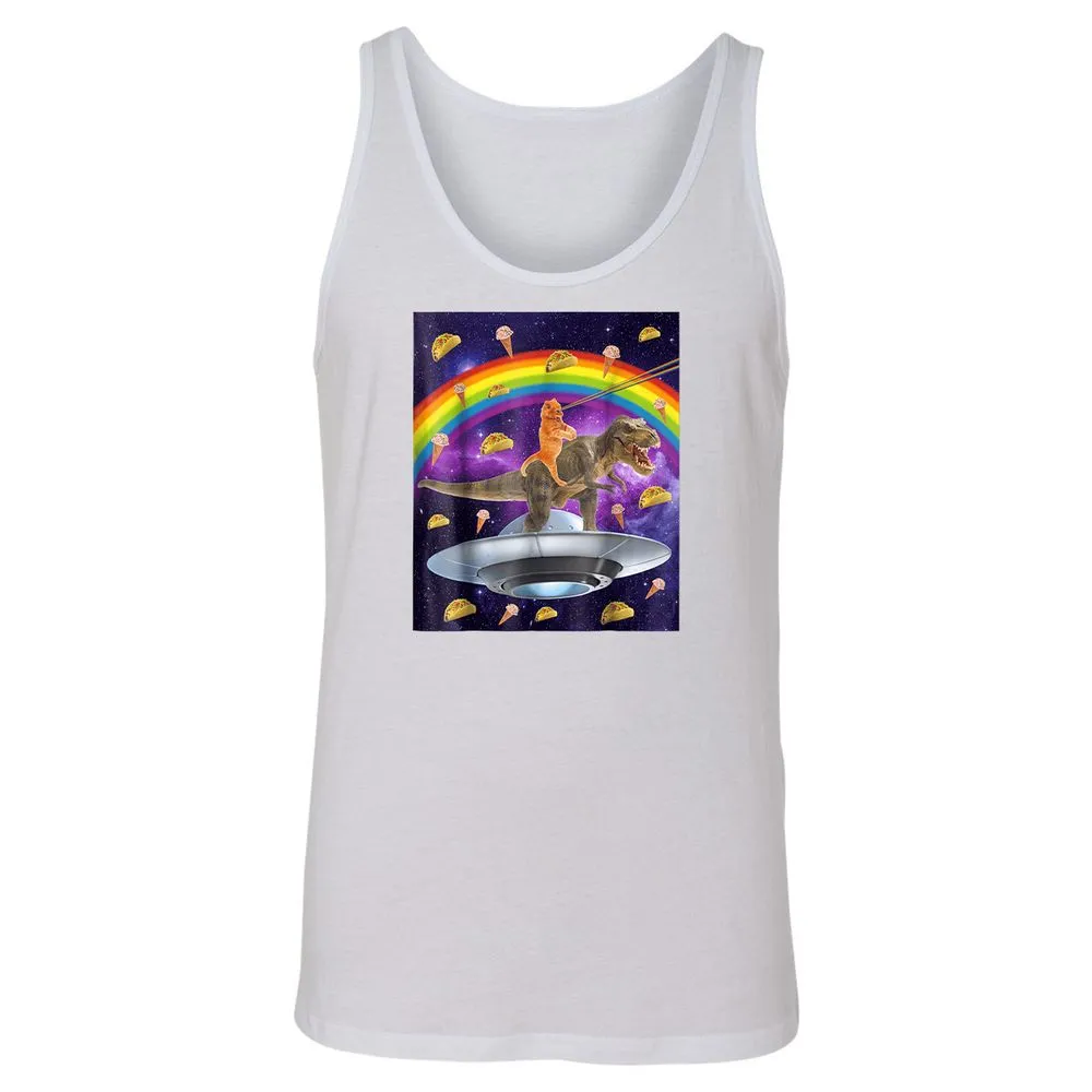 Taco Kitty Rainbow Laser Eye T Rex Riding Space Ca Unisex Jersey Tank