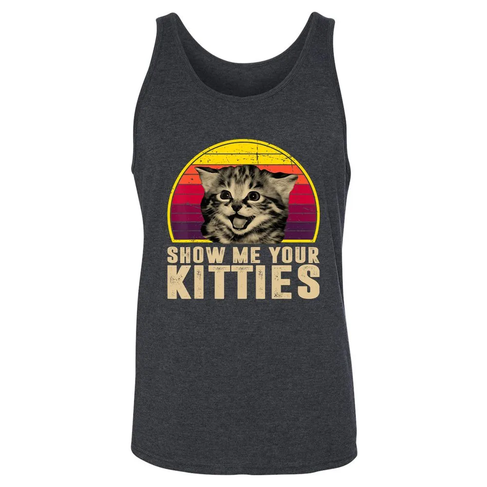 Show Me Your Kitties Funny Kitten Cat Lover Retro Vintage Unisex Jersey Tank