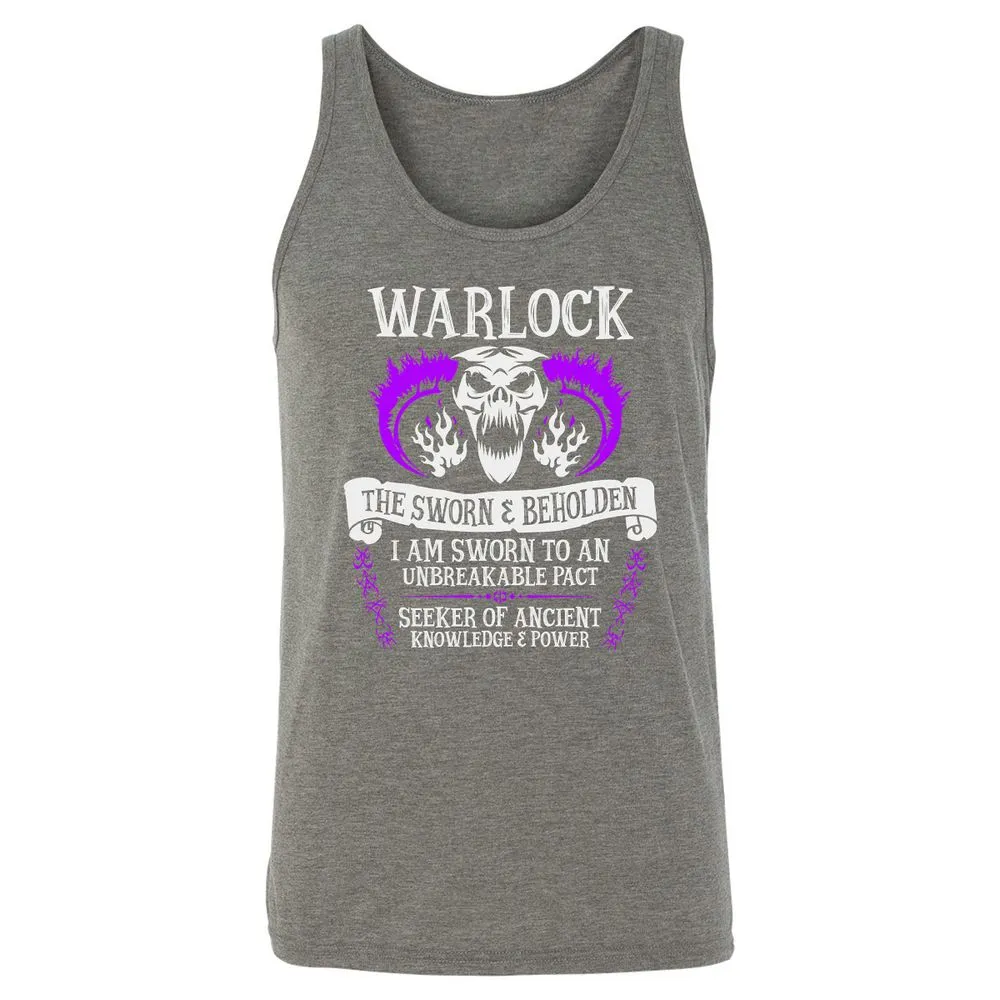 WARLOCK, THE SWORN AND BEHOLDEN (White Text) Unisex Jersey Tank
