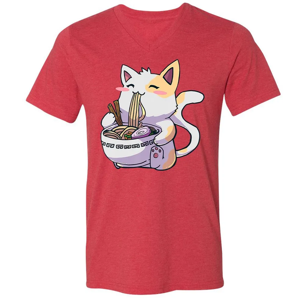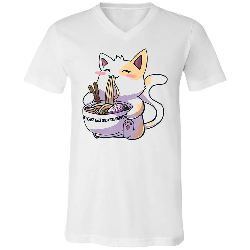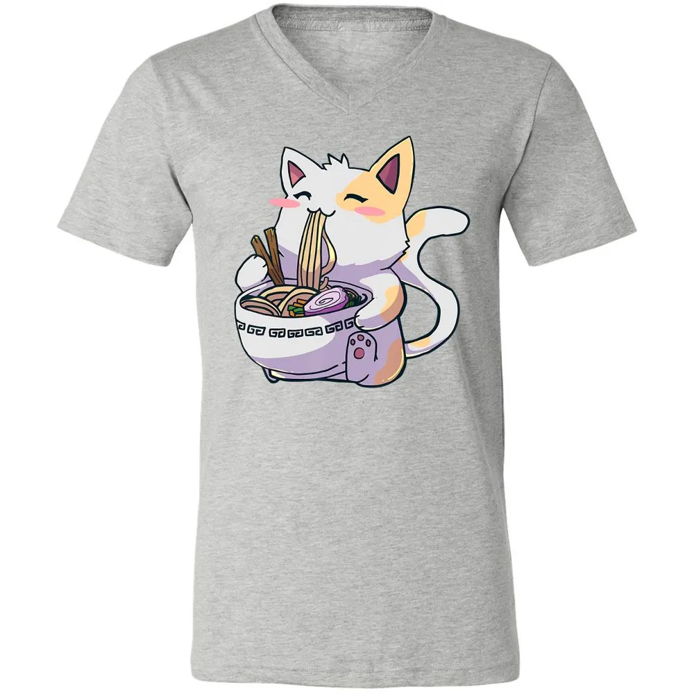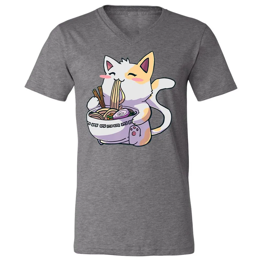 Ramen Cat T Kawaii Anime Japanese Gift Unisex V-Neck T-Shirt