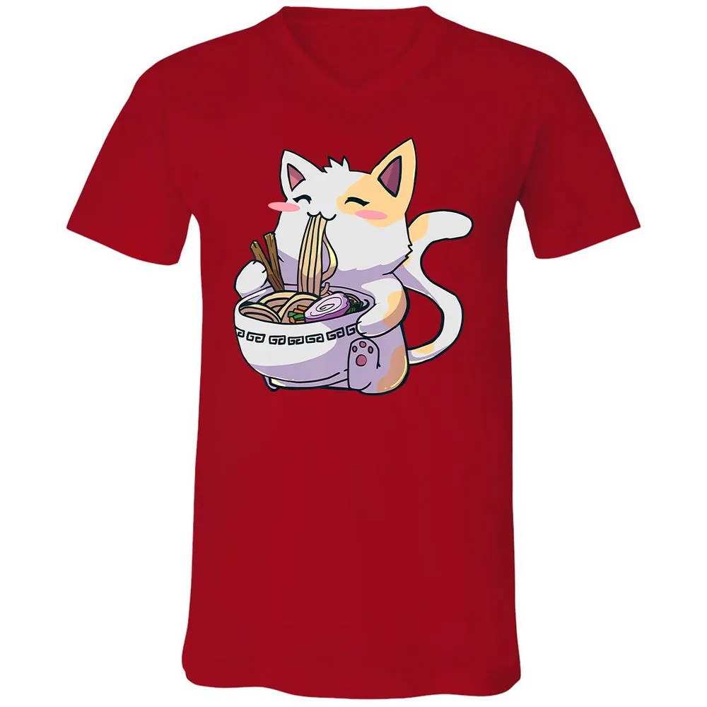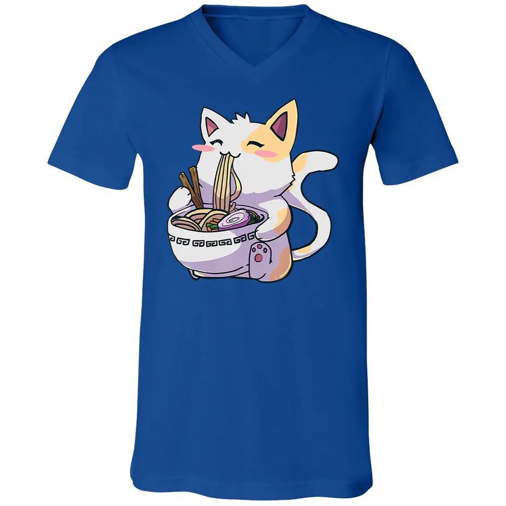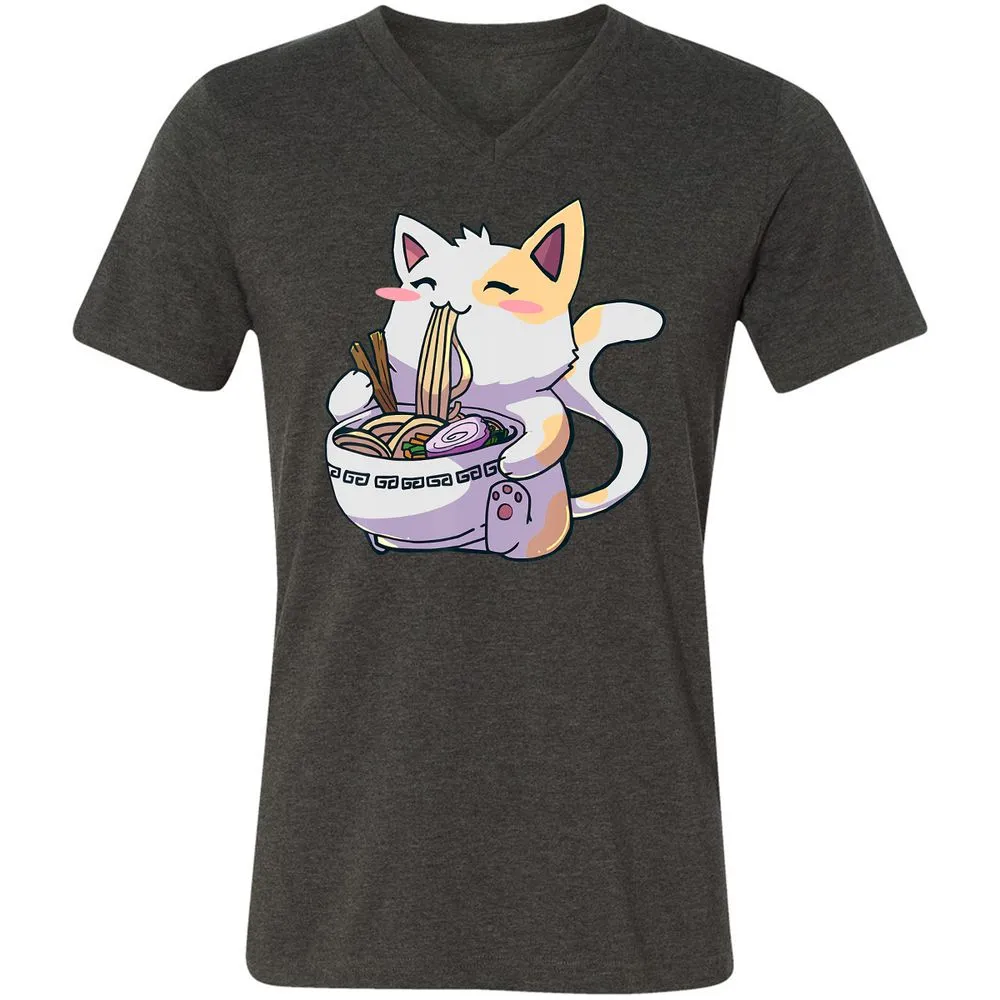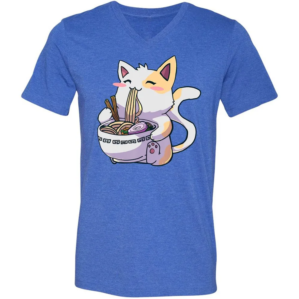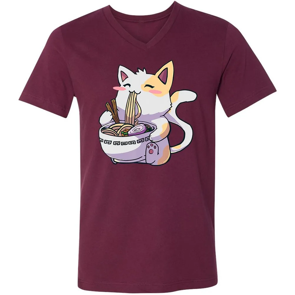 Ramen Cat T Kawaii Anime Japanese Gift Unisex V-Neck T-Shirt