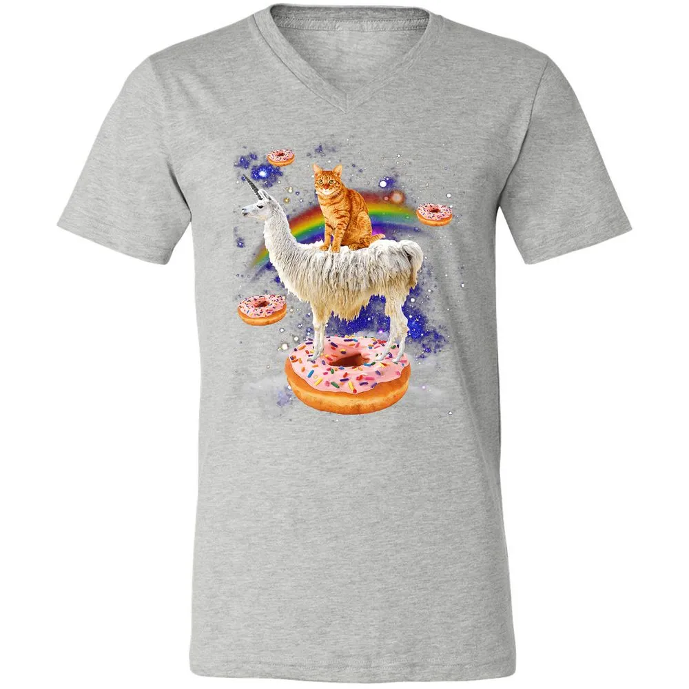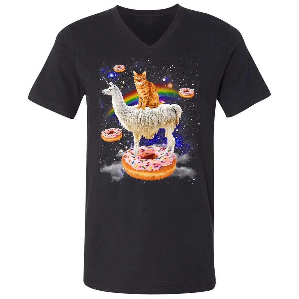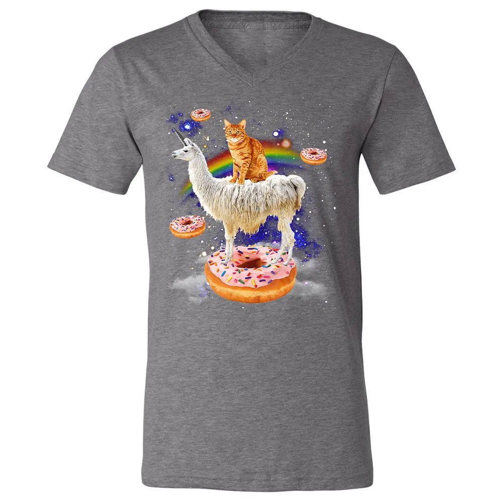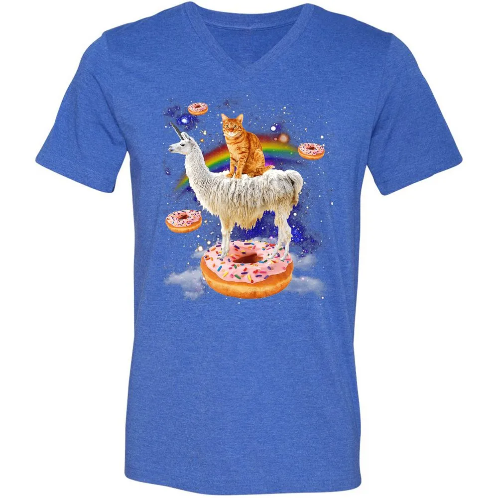 Space Cat Riding Llama and Donuts Galaxy Funny Cat Unisex V-Neck T-Shirt