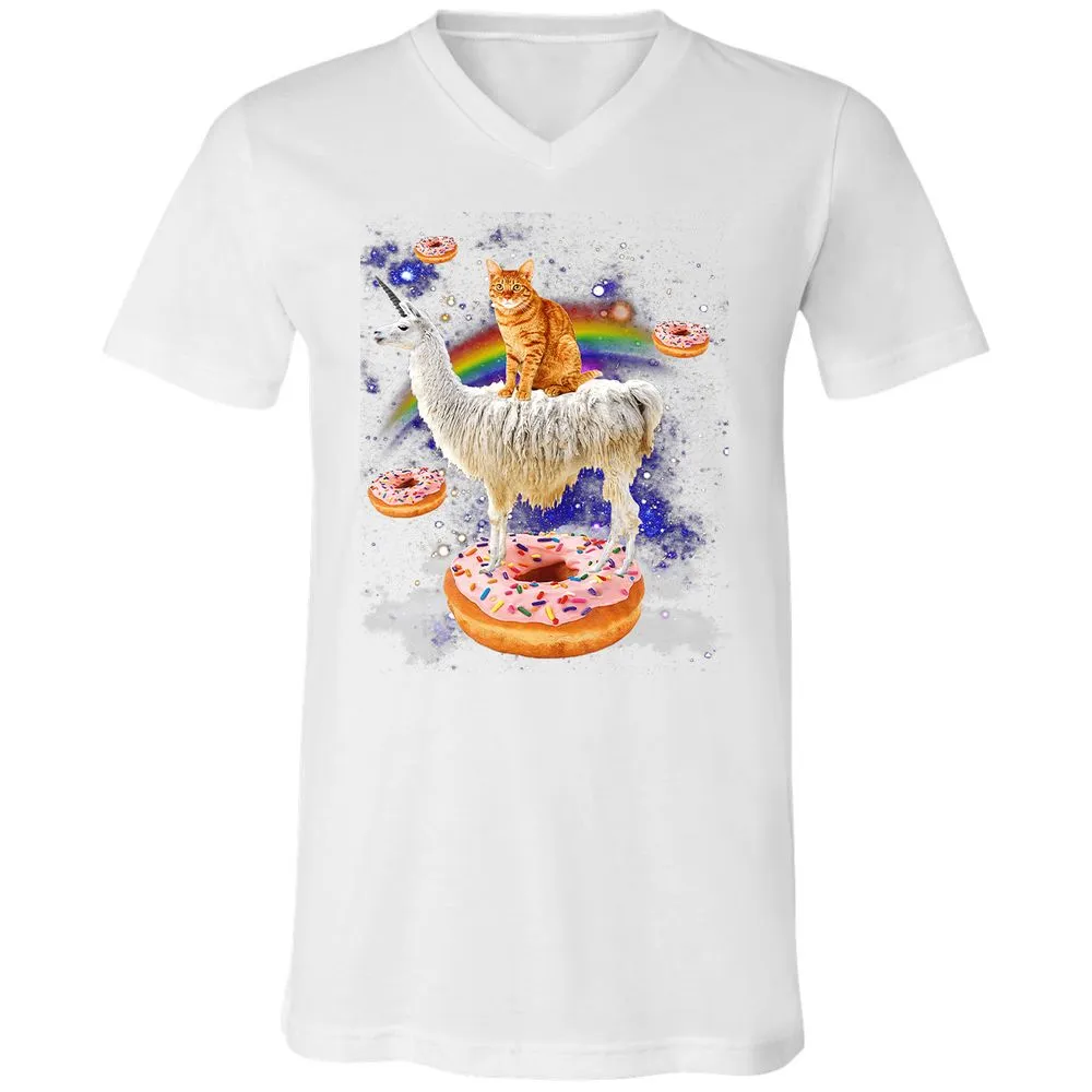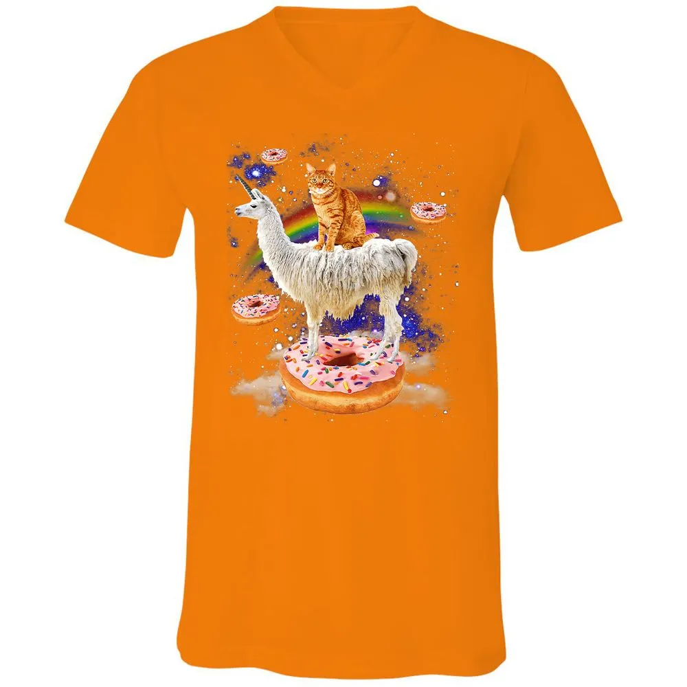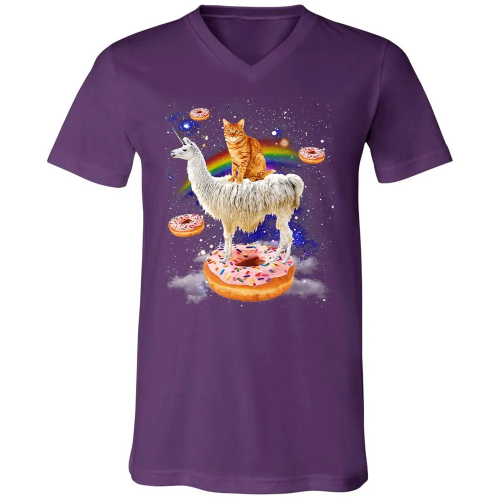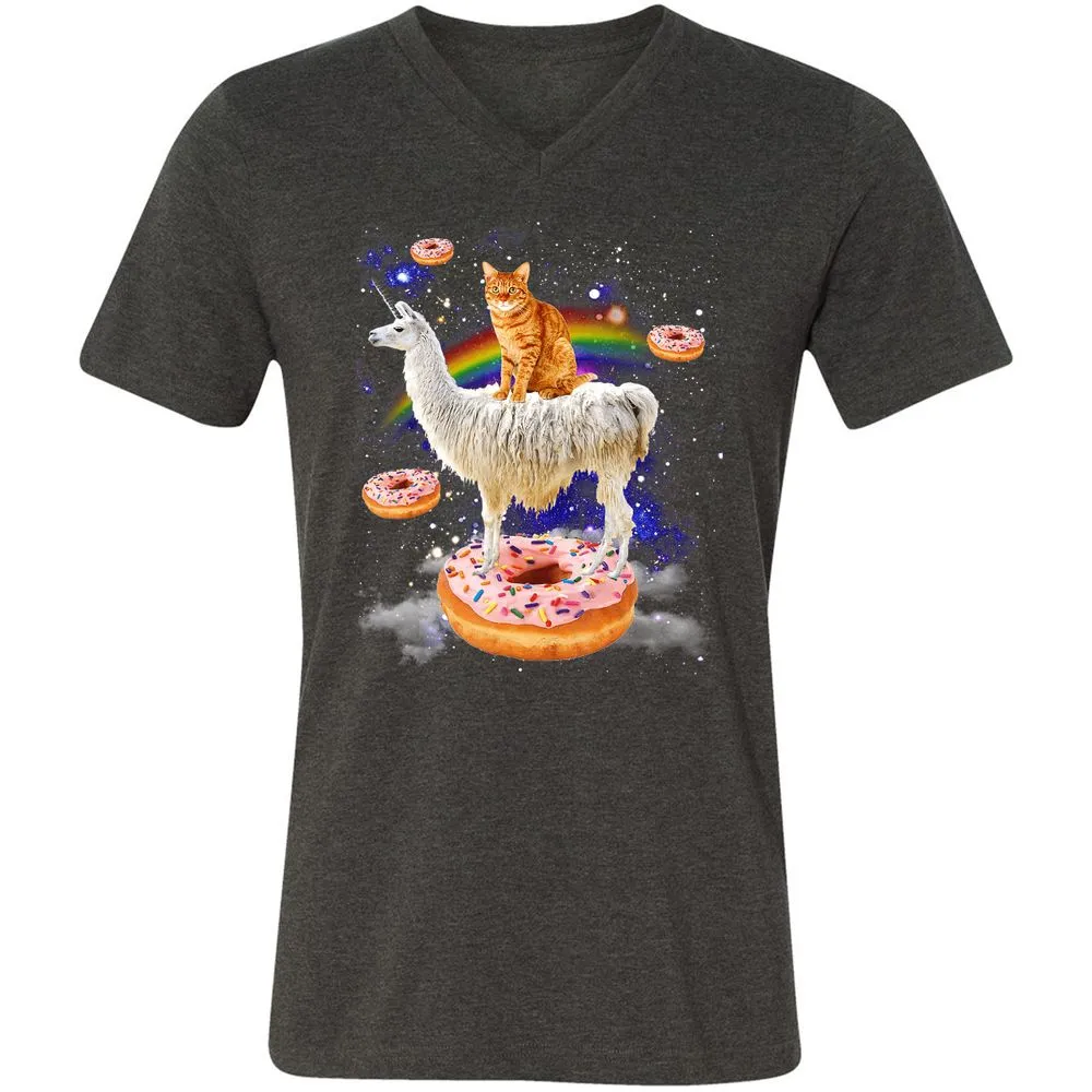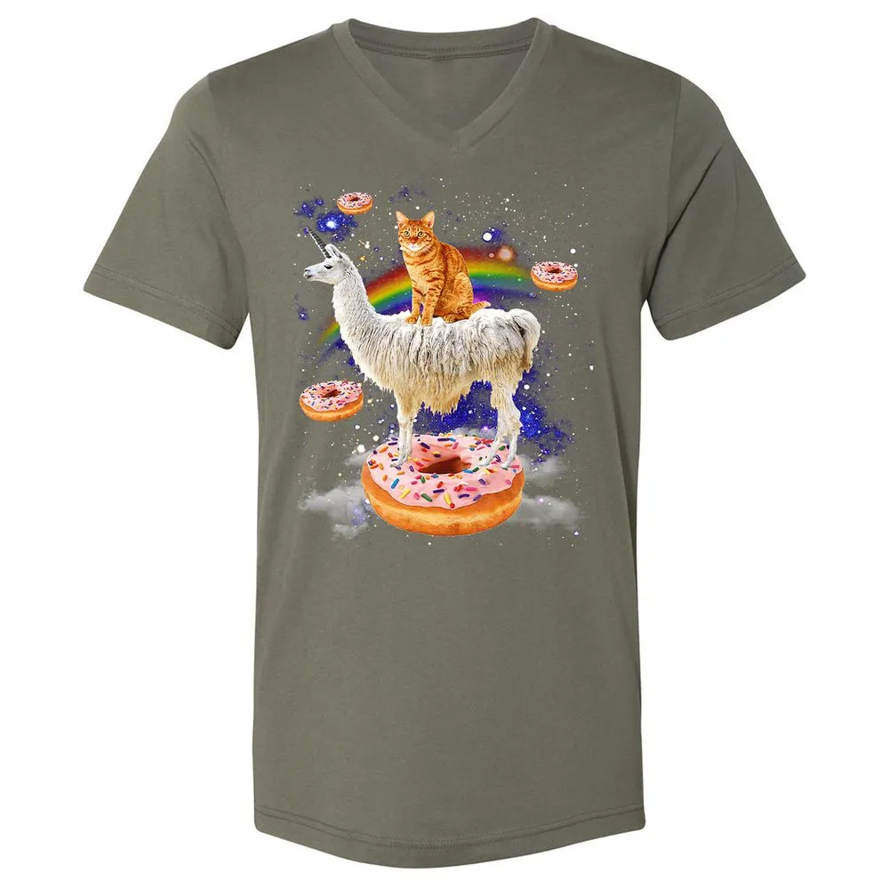 Space Cat Riding Llama and Donuts Galaxy Funny Cat Unisex V-Neck T-Shirt