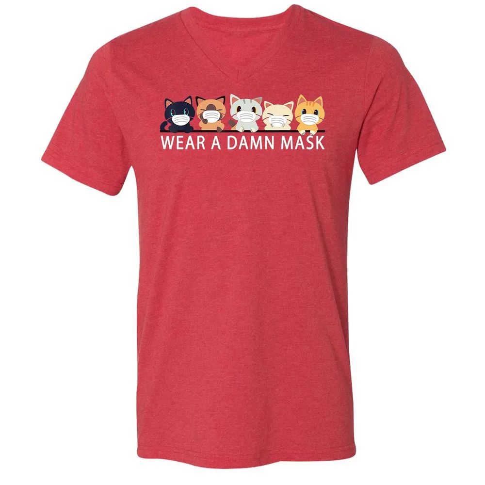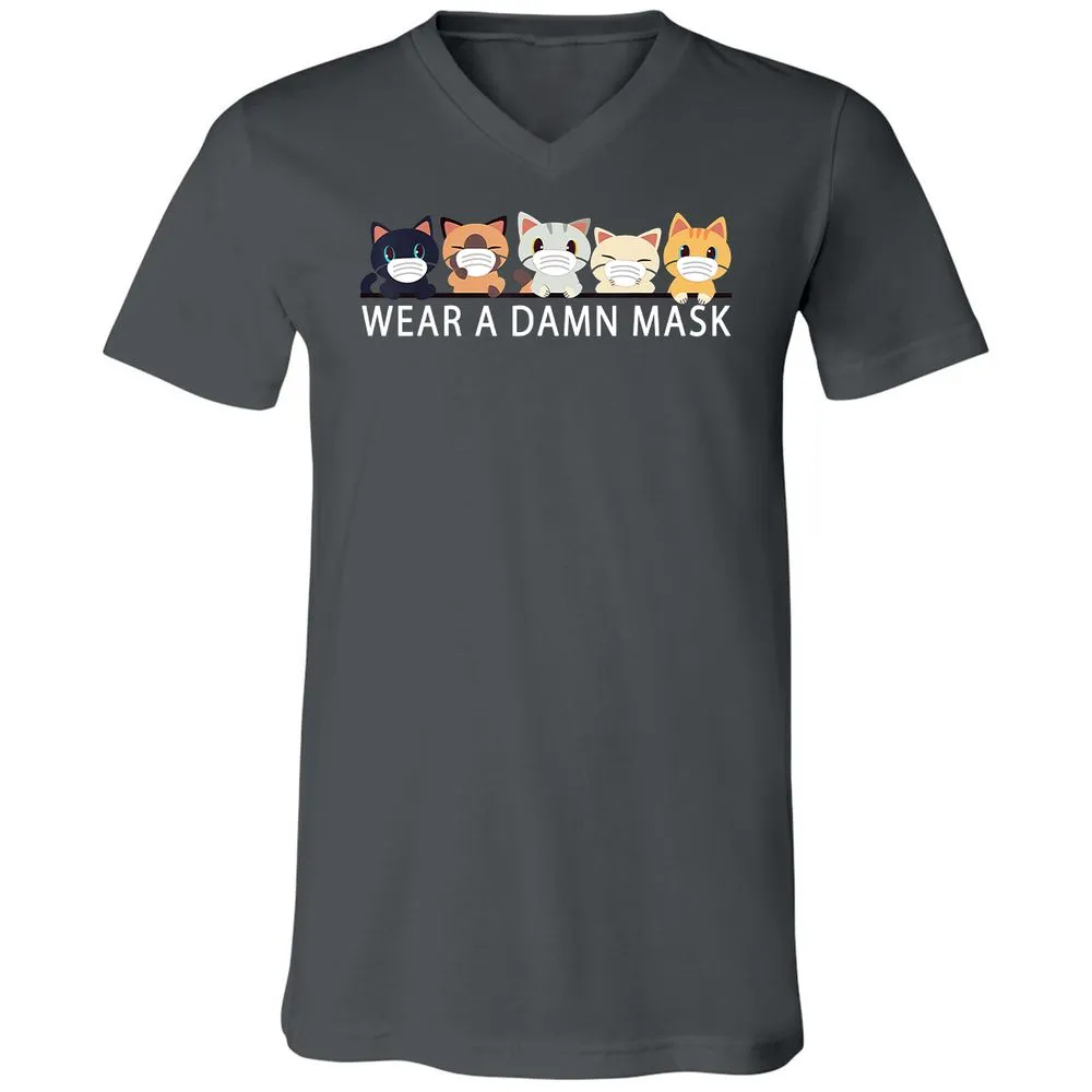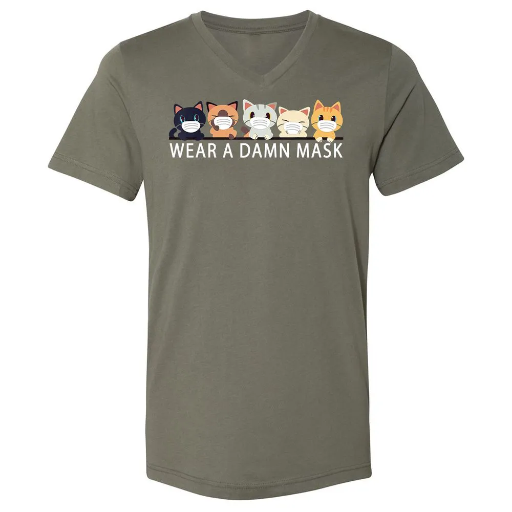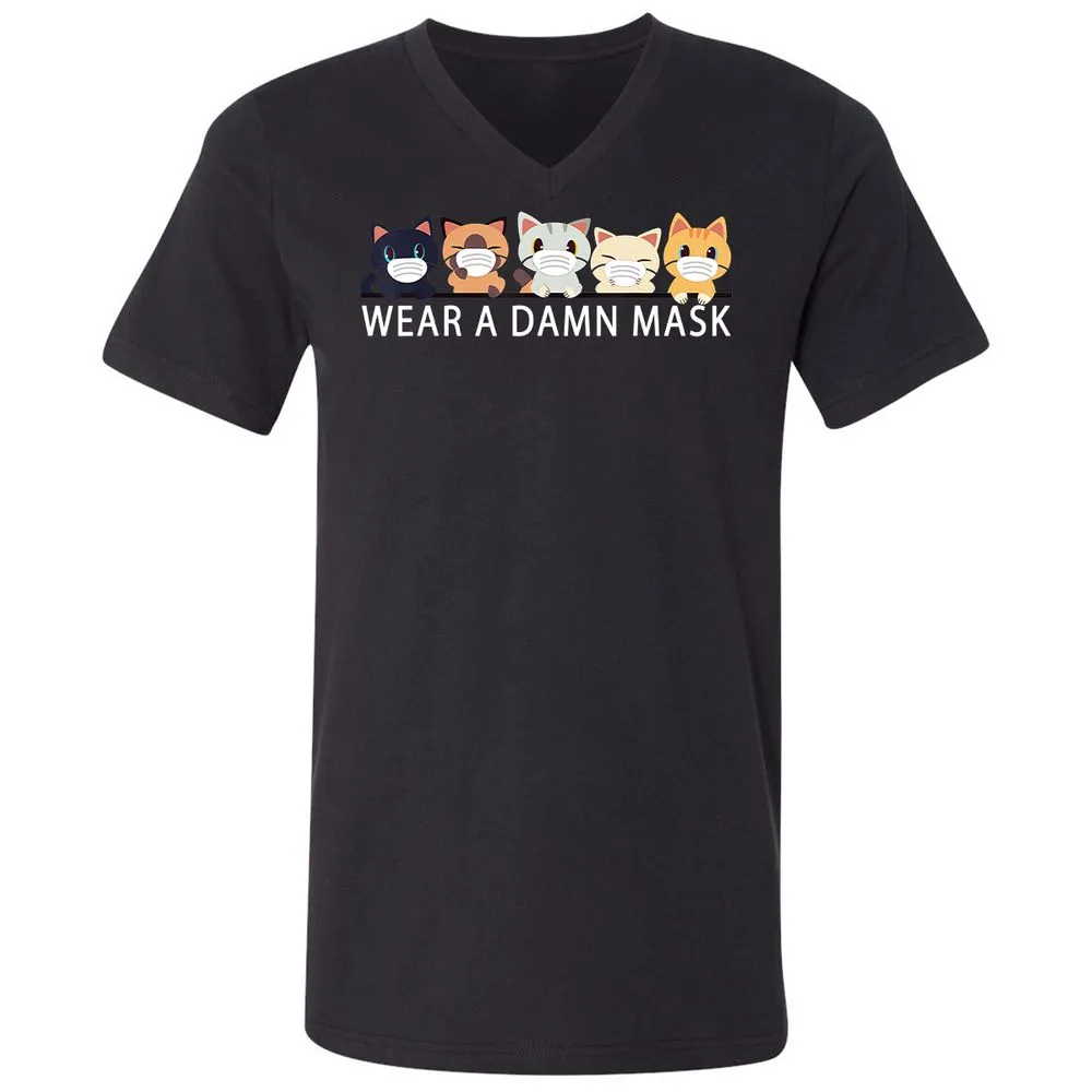 Cats Lovers Wear a Damn Mask Quarantine Gift Cat Face Mask Unisex V-Neck T-Shirt