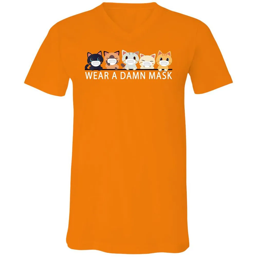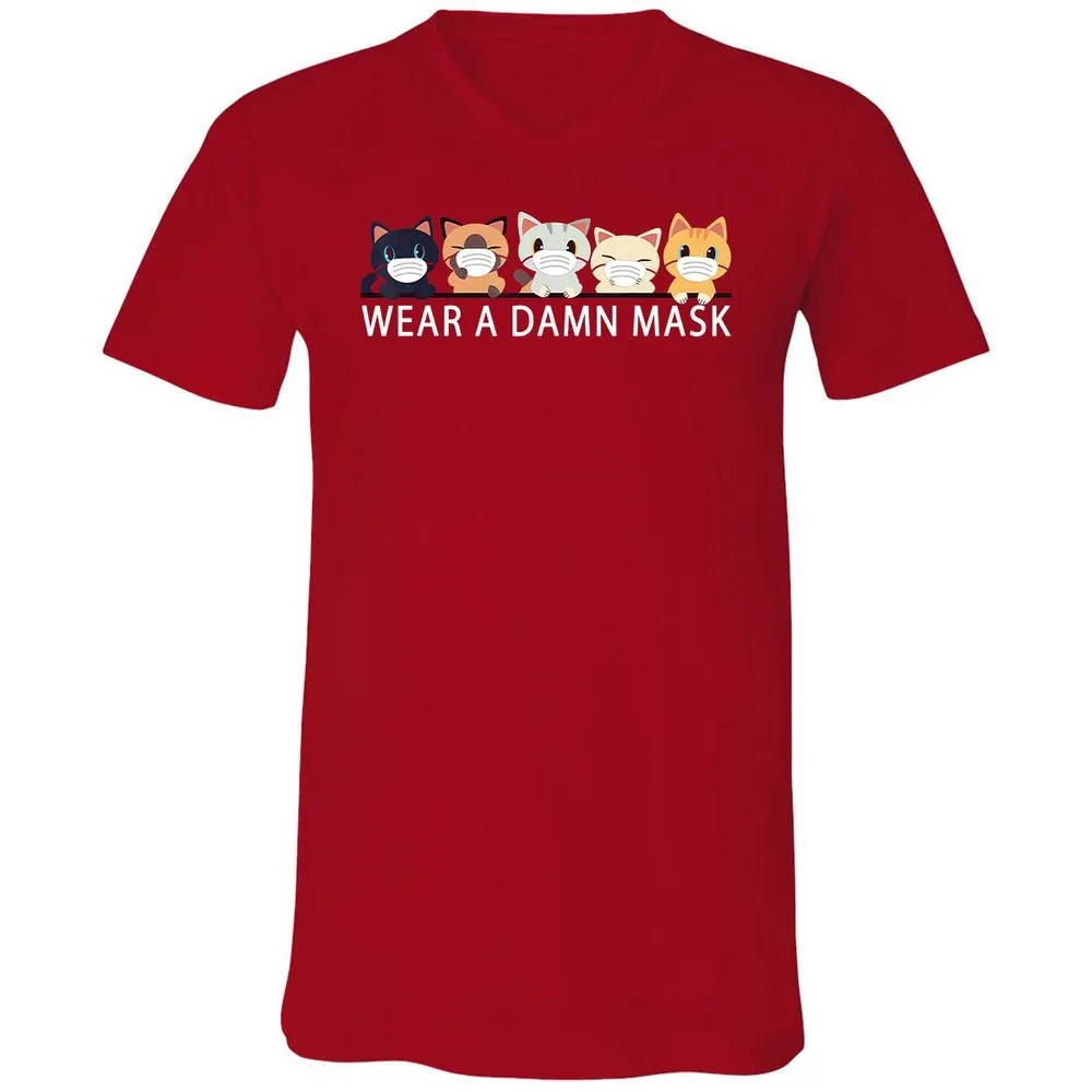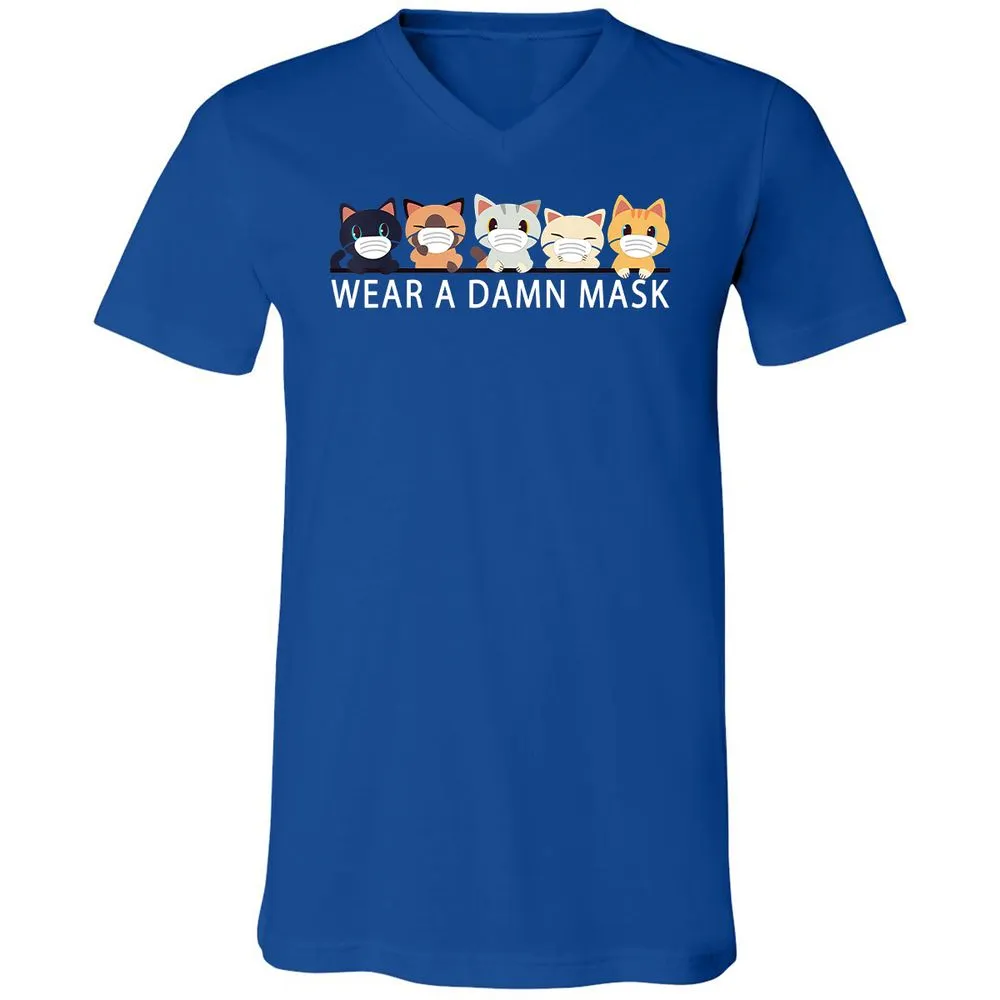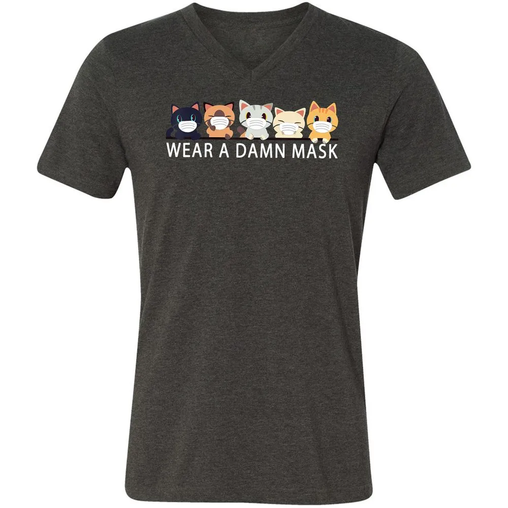 Cats Lovers Wear a Damn Mask Quarantine Gift Cat Face Mask Unisex V-Neck T-Shirt