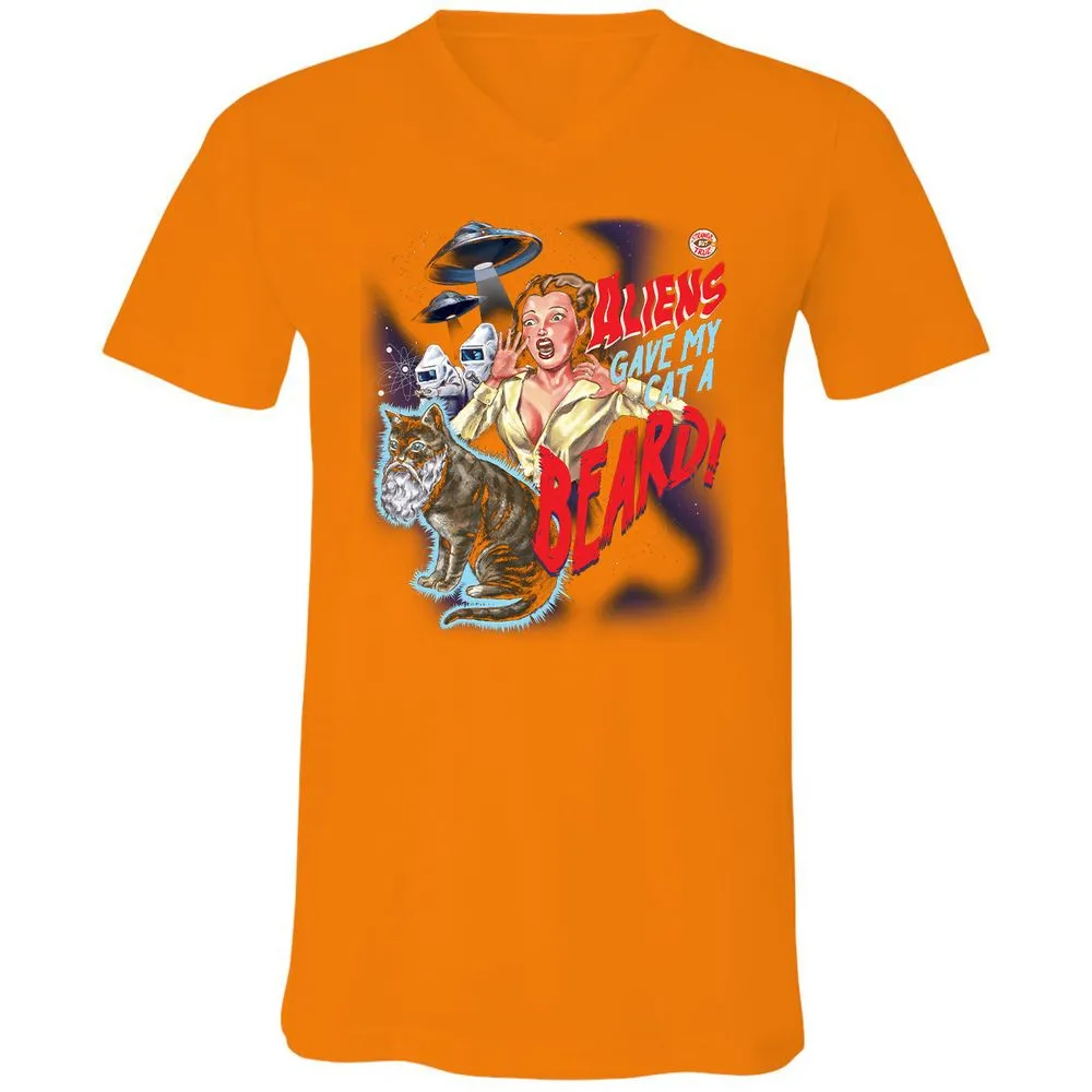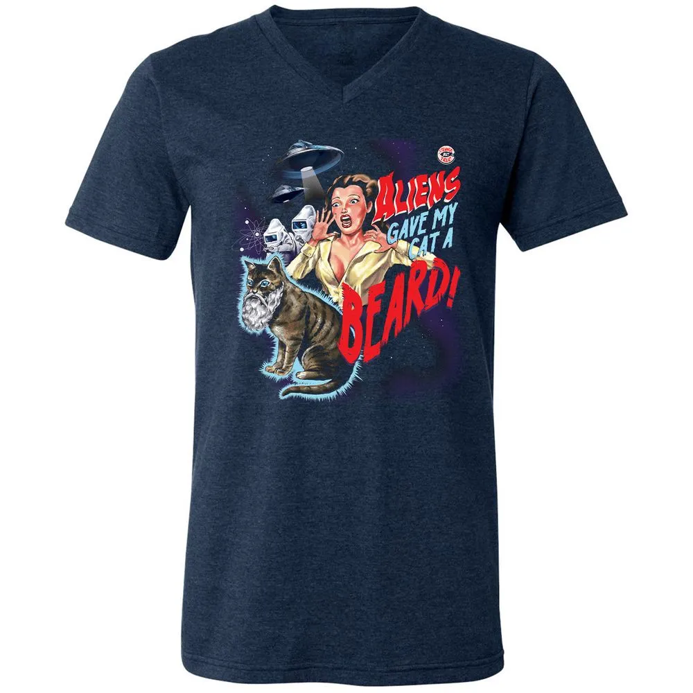 Aliens gave my cat a beard! Unisex V-Neck T-Shirt