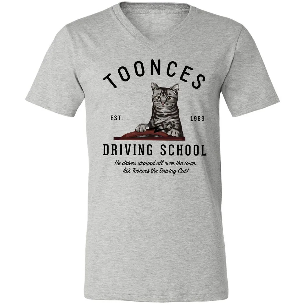Funny Cat Driving School Unisex V-Neck T-Shirt