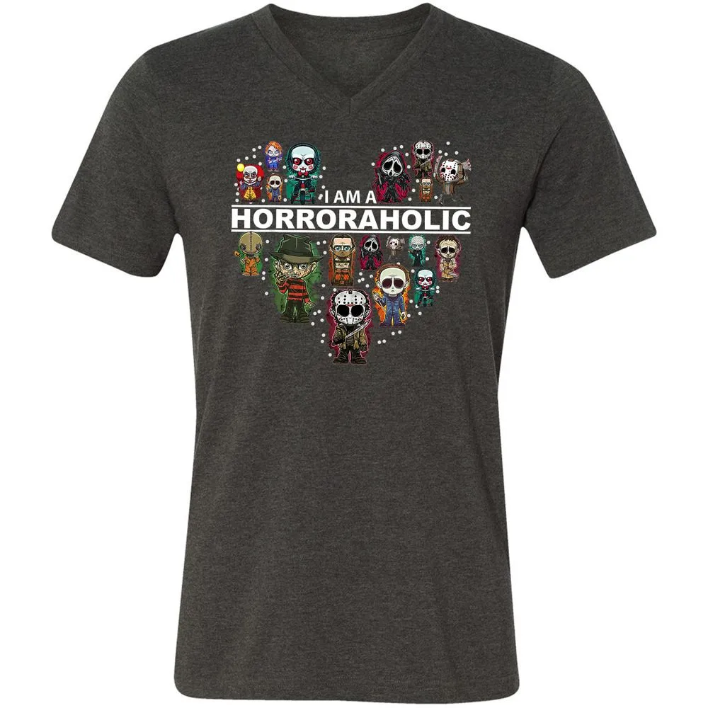 I Am A Horroraholic Halloween Day Horror Aholic Unisex V-Neck T-Shirt